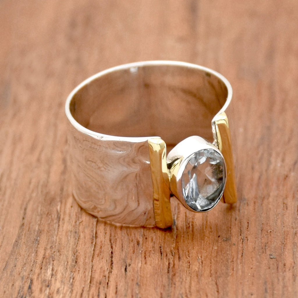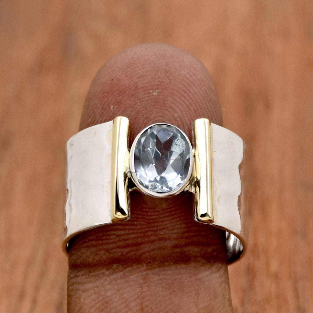 Retro Blue Synthetic Cubic Zirconia Wide Face Ring Men's and Women's