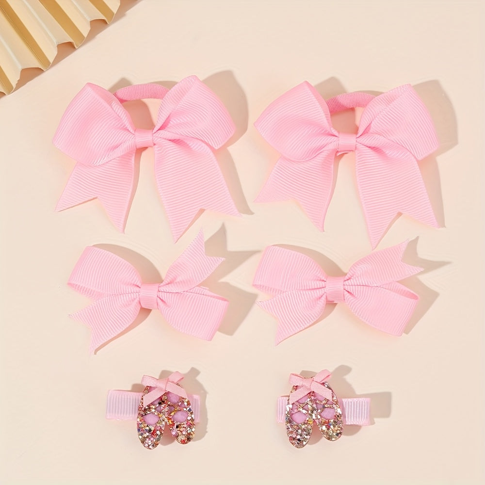 6pcs Pink Ballet Girl Hair Accessories Set Glitter Ballet Shoes Hair Clips Grosgrain Ribbon Bow Hair Clips Sweet Hair Ties Perfect for Party Dance