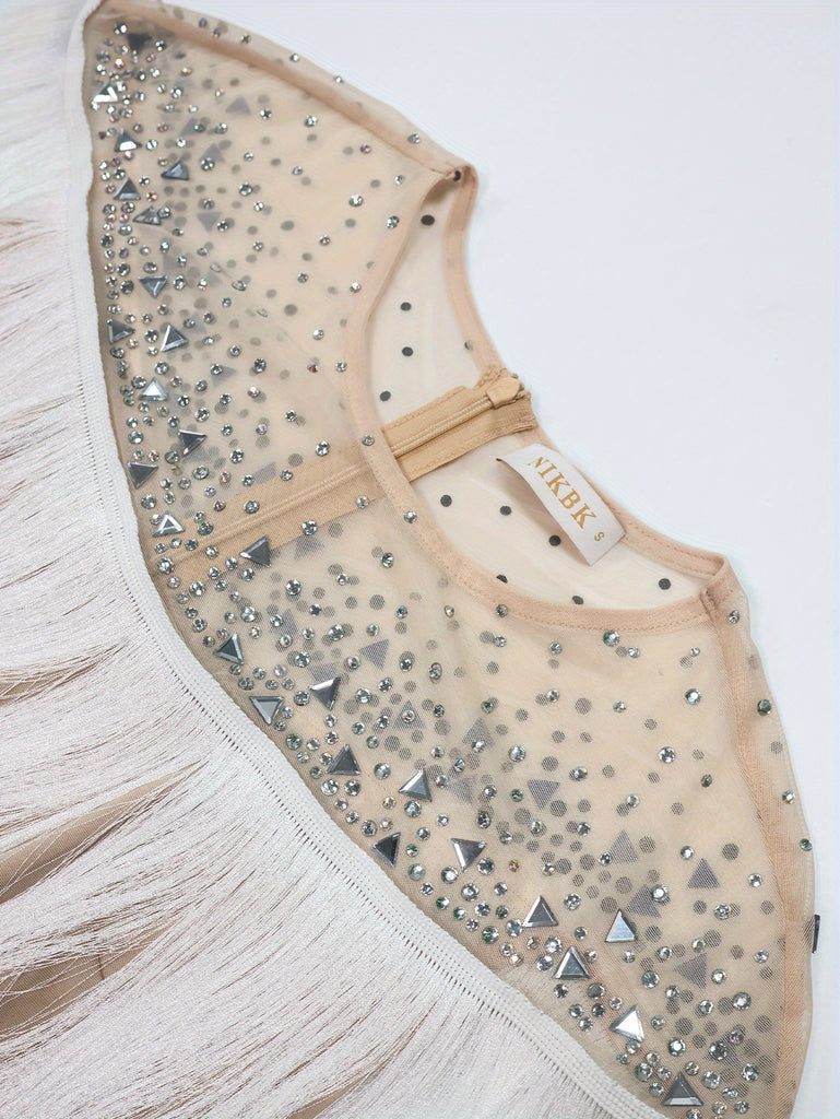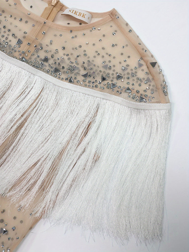 Women's Elegant Party Dress - Sparkling Rhinestone Formal gown with Tiered Fringe, Short Evening dress for Birthday, Festival, Prom - Women's Formal Attire