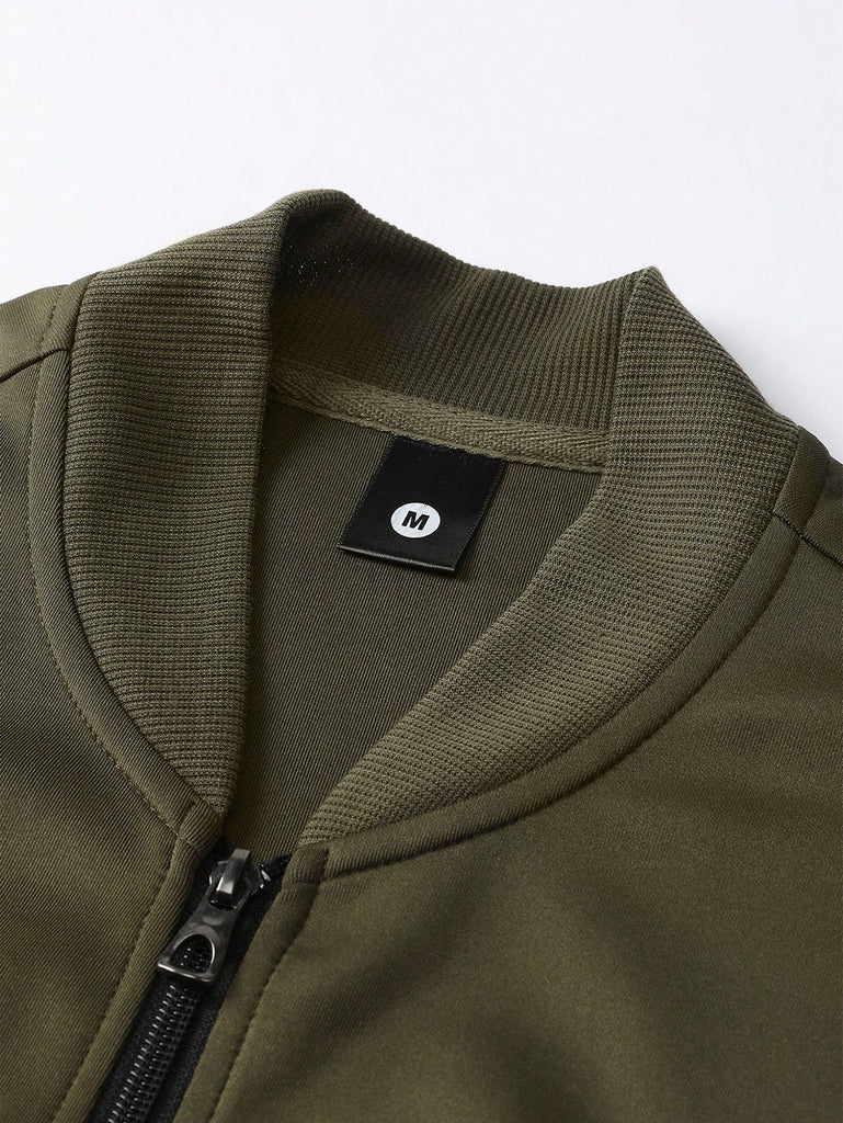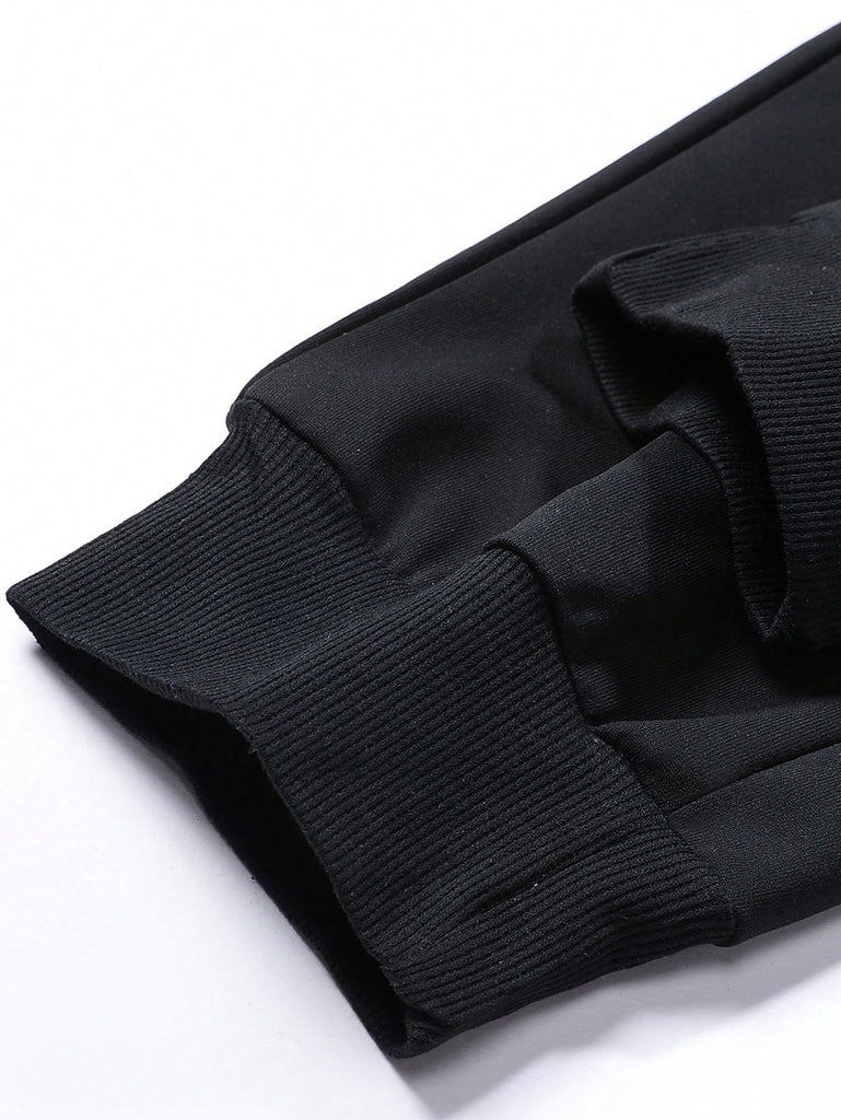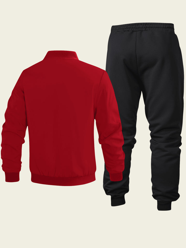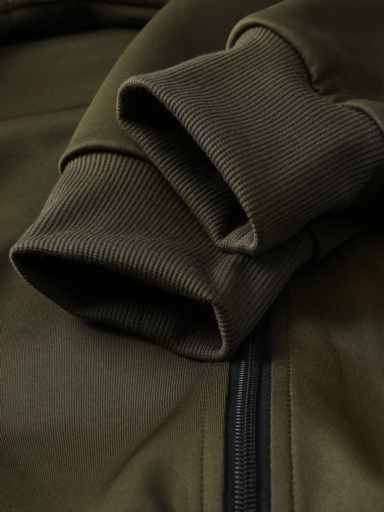 2pcs Men's Casual Set Featuring Zip-Up Jacket With Baseball Collar And Drawstring Pants, Simple Design With Running Horse Print, Suitable For Sports And Everyday Wear