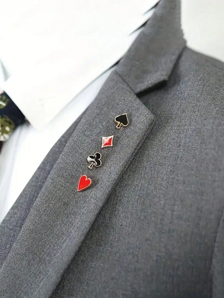 4pcs/Set Men Poker Card Shaped Brooch
