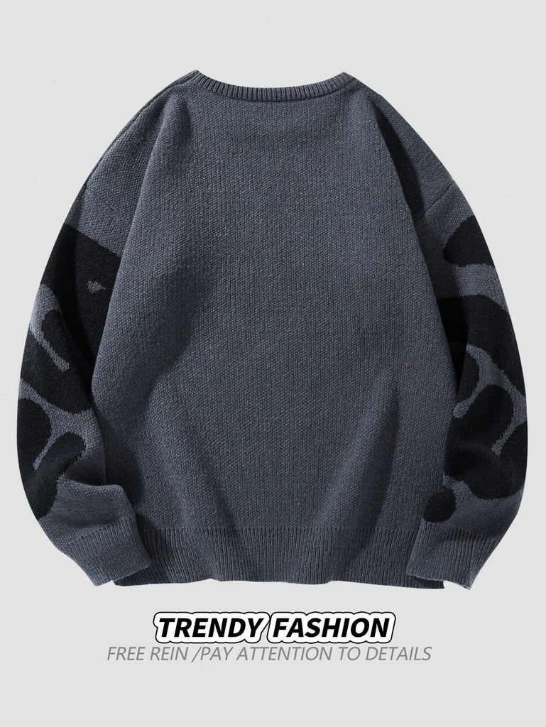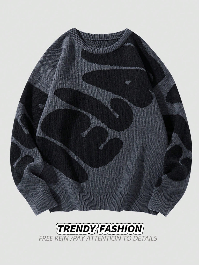 Manfinity CasualKnits Men's Casual Letter Print Crew Neck Pullover Long Sleeve Sweater, Autumn/Winter Pullover Sweater, For Going Out, Friends, Male Sweater Graphic, Men S Sweater, Sweater Graphic, Men Knit Tops, Black Graphic Sweater