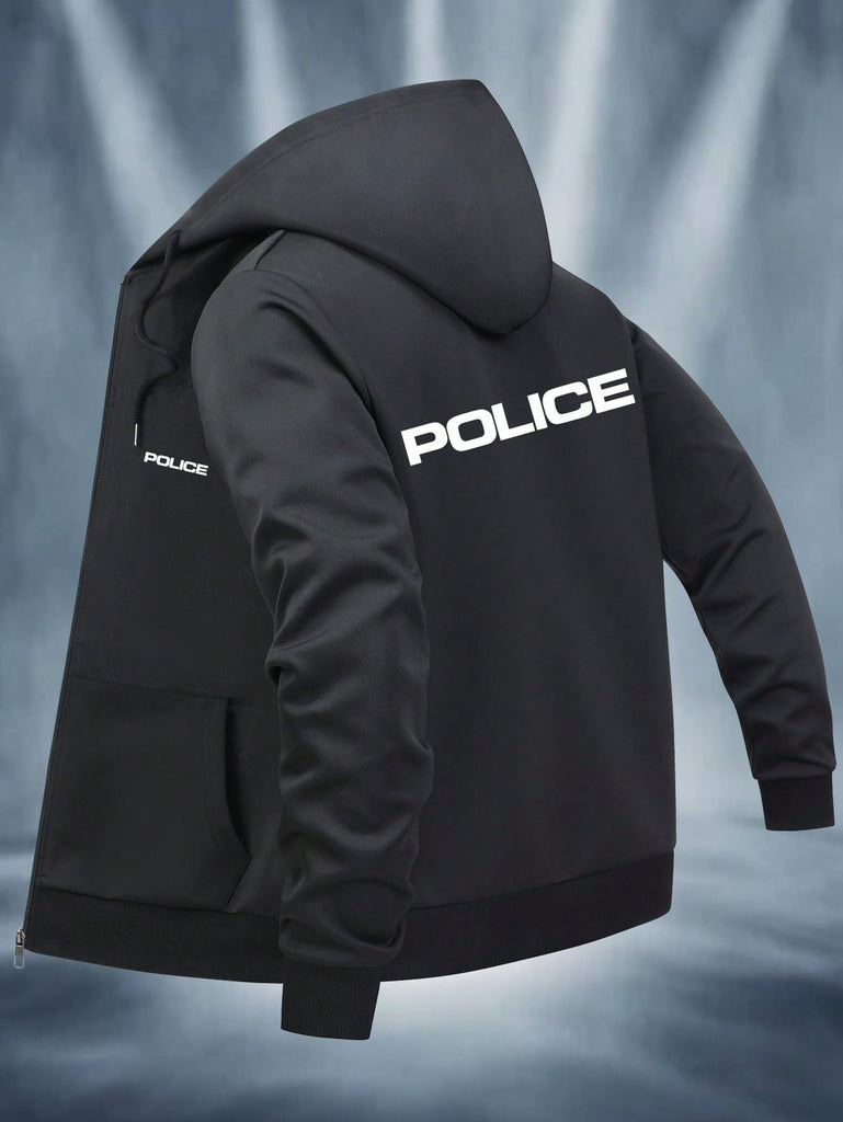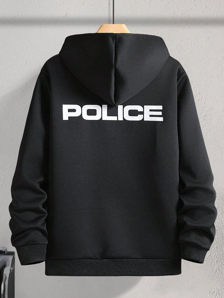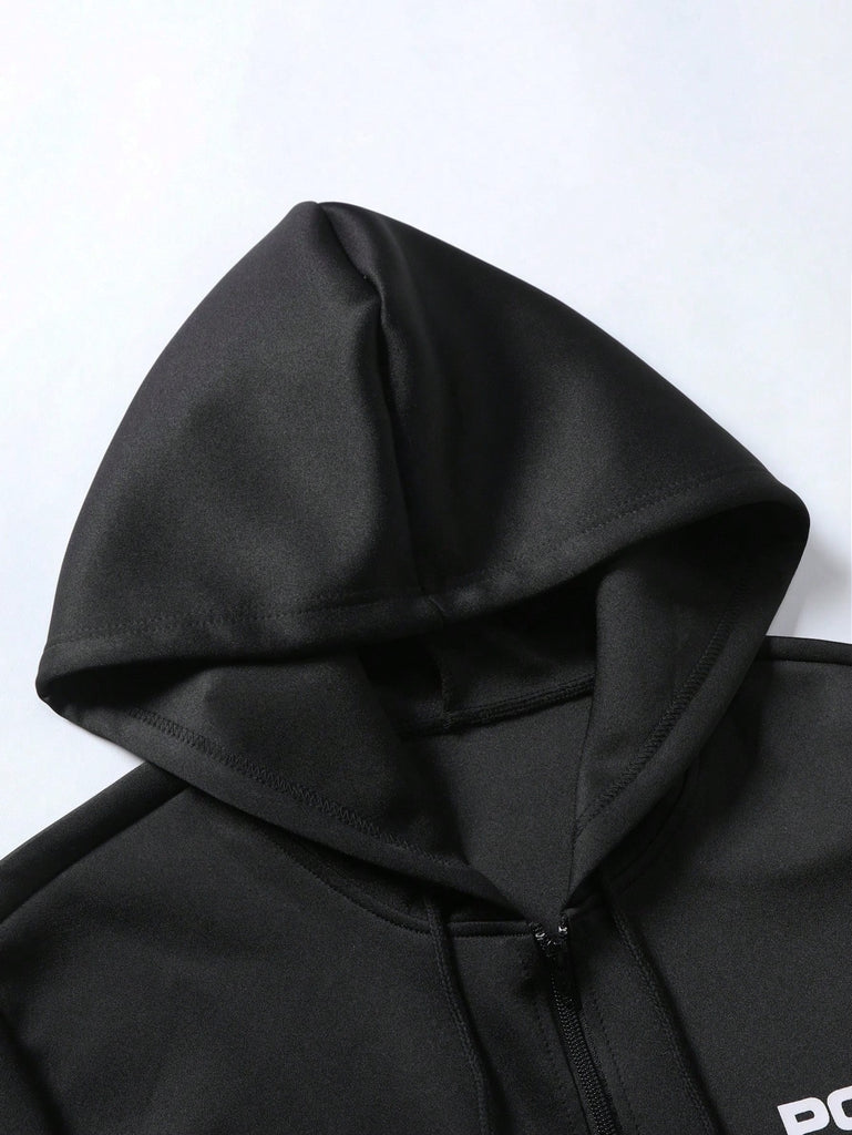 Manfinity Homme Men's Letter Print Drawstring Hooded Jacket Zip Ups For Men Zip Up Hoodie Men Graphic Full Hoodie Mens