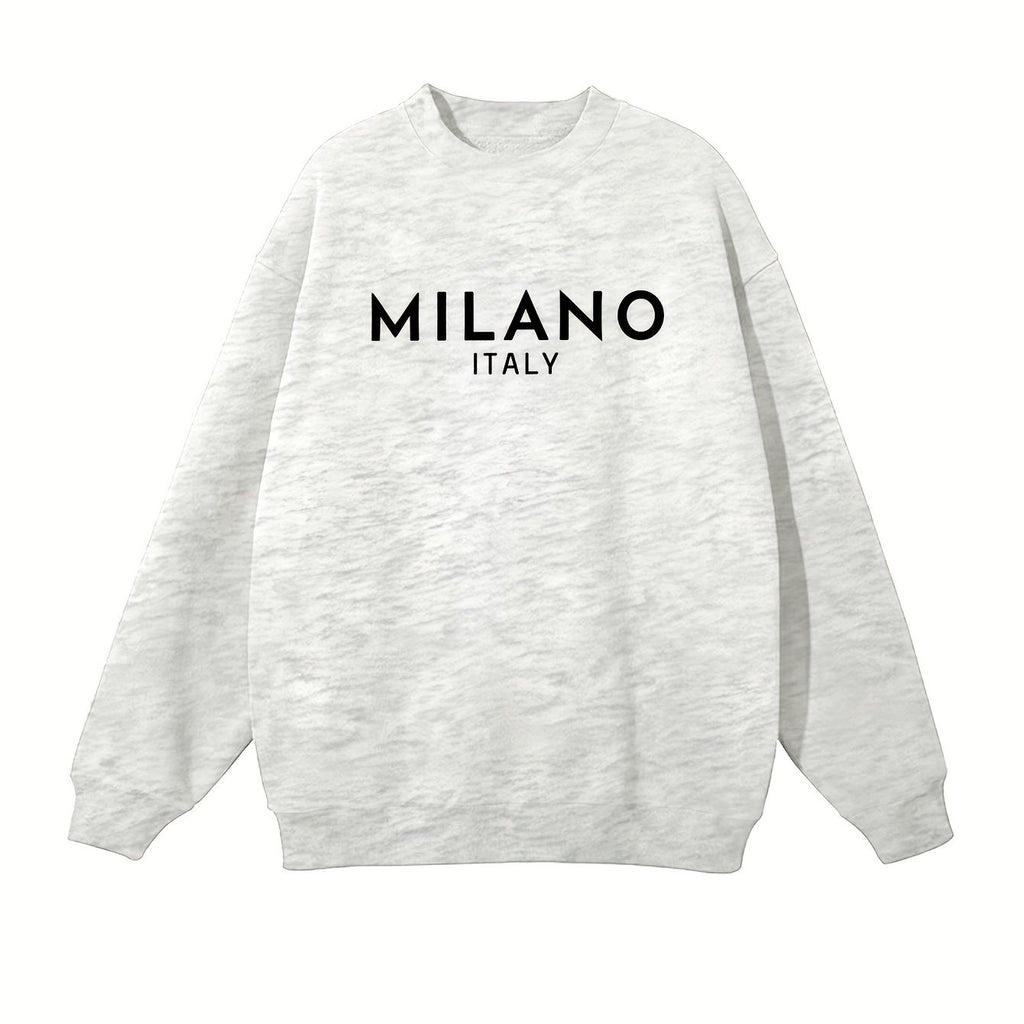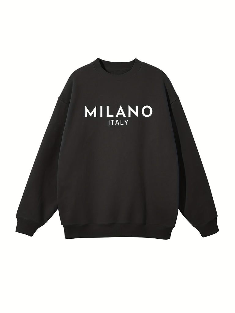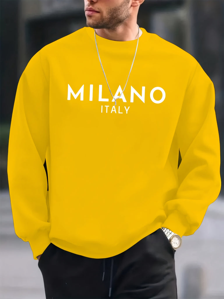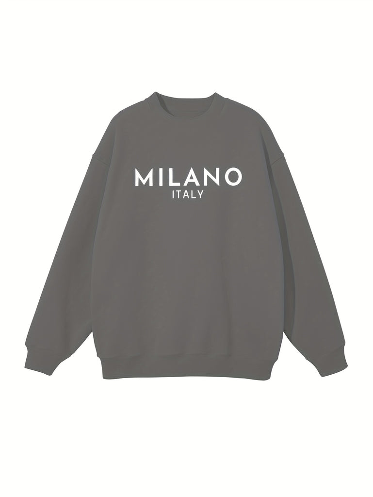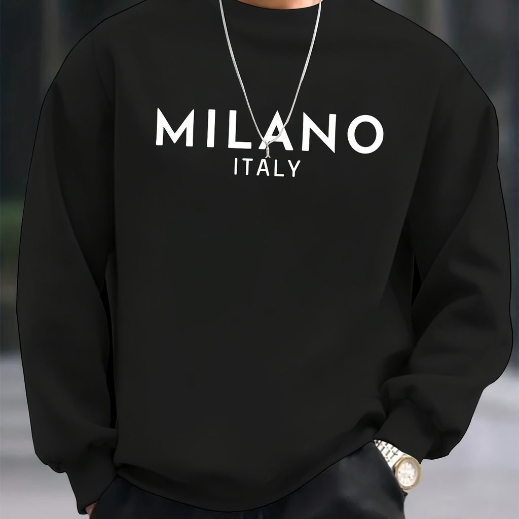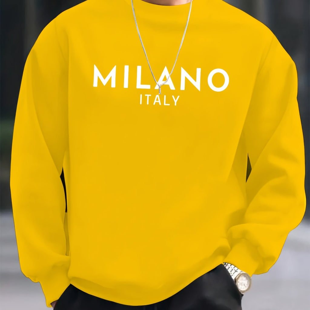 MBDMBD Milano Italy Creative Print Sweatshirt, Casual Round Neck Pullover in Black, Gray, Yellow - 100% Polyester, Machine Washable - Trendy Drawstring Hoodie for Men & Women