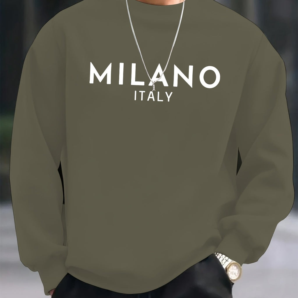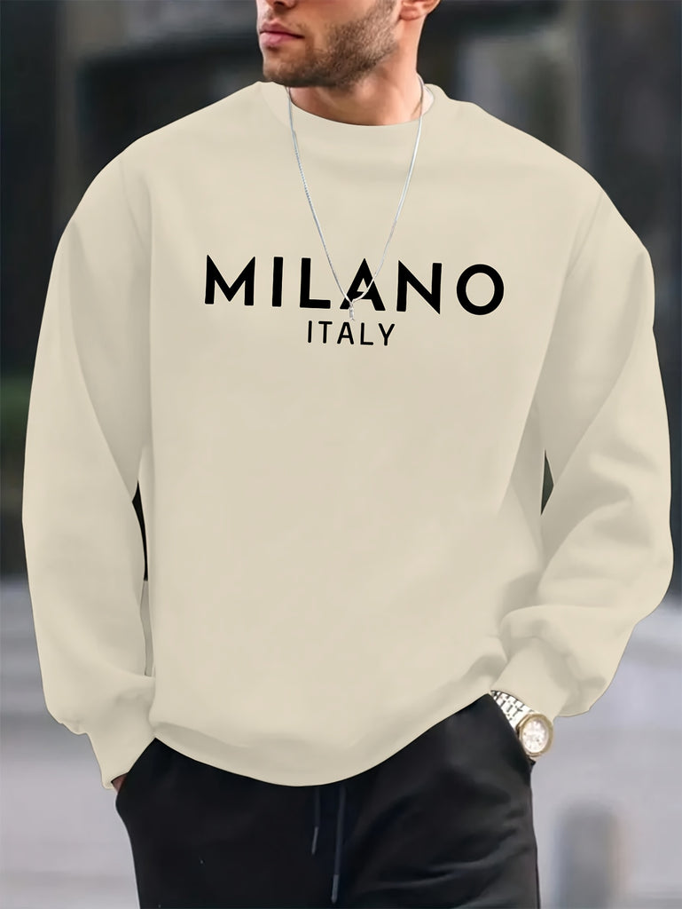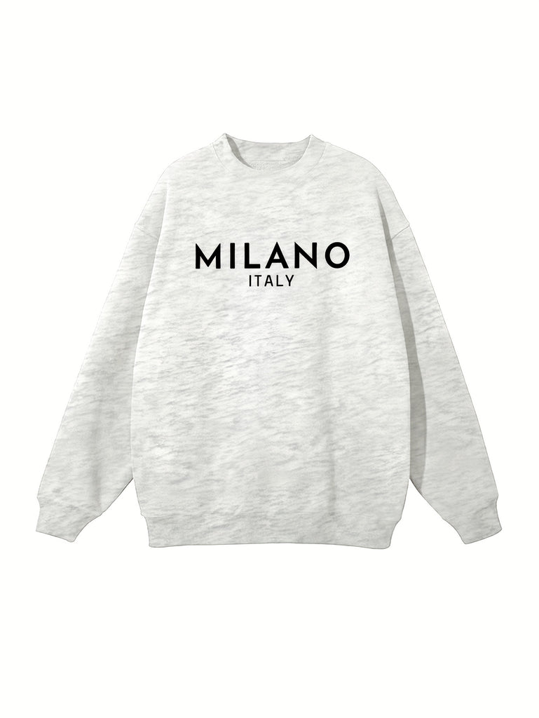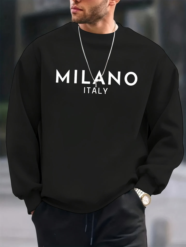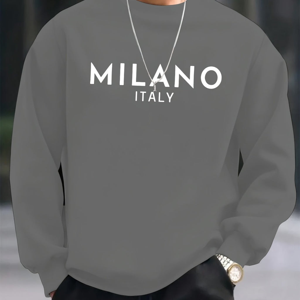 MBDMBD Milano Italy Creative Print Sweatshirt, Casual Round Neck Pullover in Black, Gray, Yellow - 100% Polyester, Machine Washable - Trendy Drawstring Hoodie for Men & Women