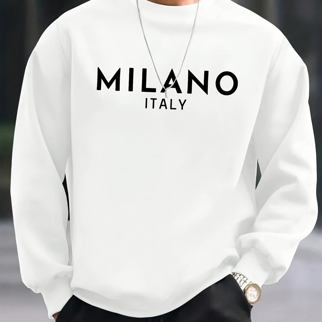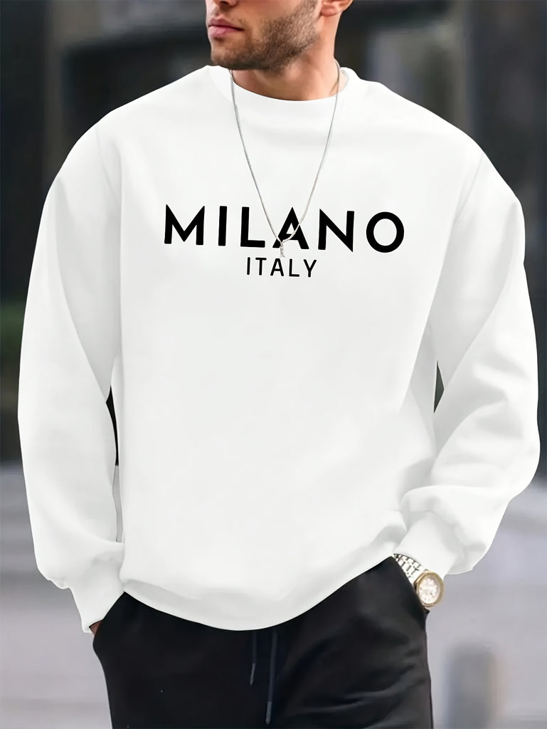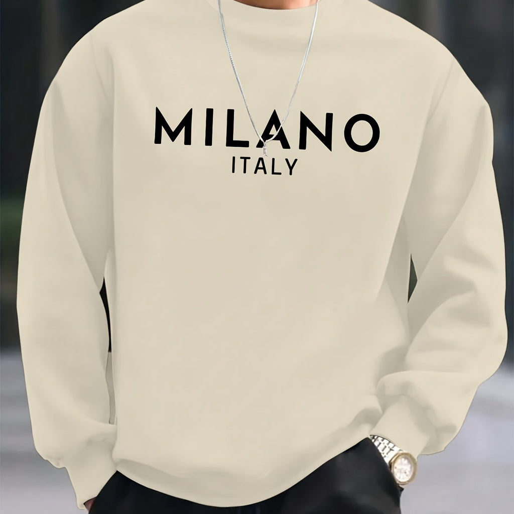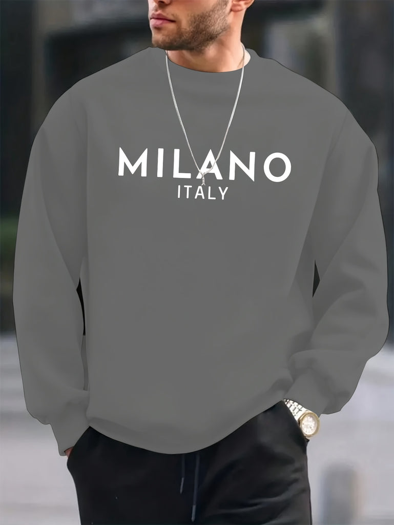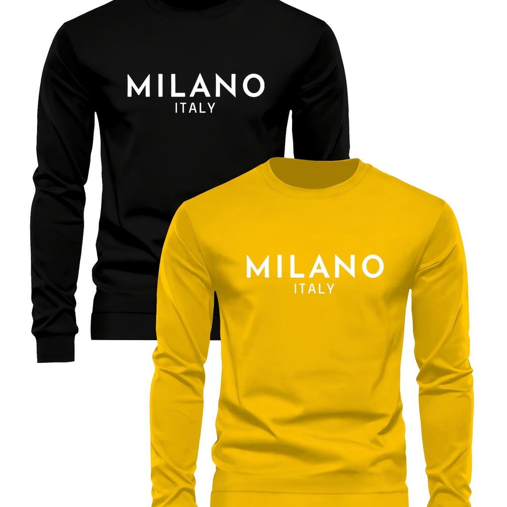 MBDMBD Milano Italy Creative Print Sweatshirt, Casual Round Neck Pullover in Black, Gray, Yellow - 100% Polyester, Machine Washable - Trendy Drawstring Hoodie for Men & Women
