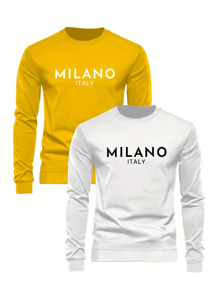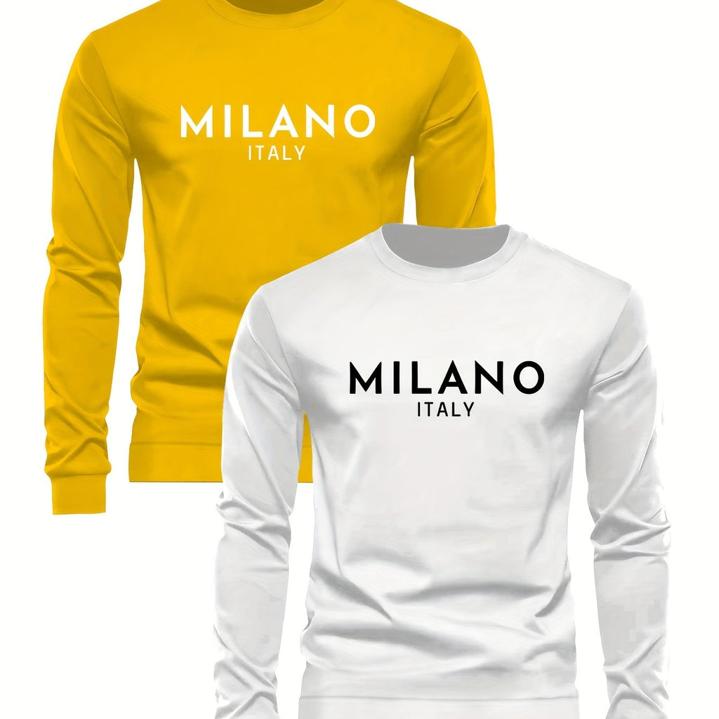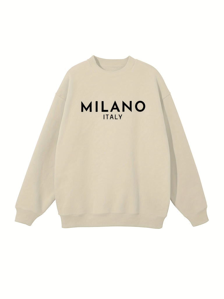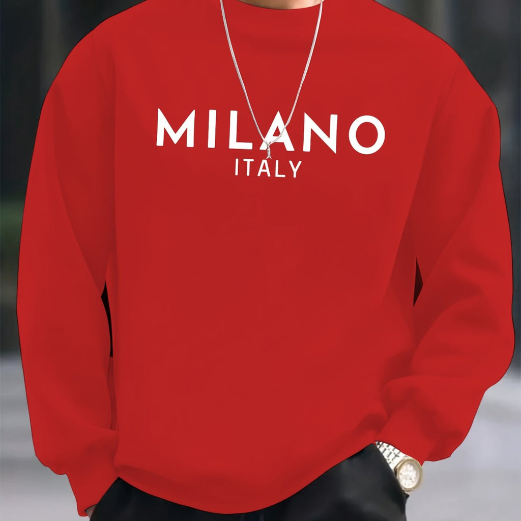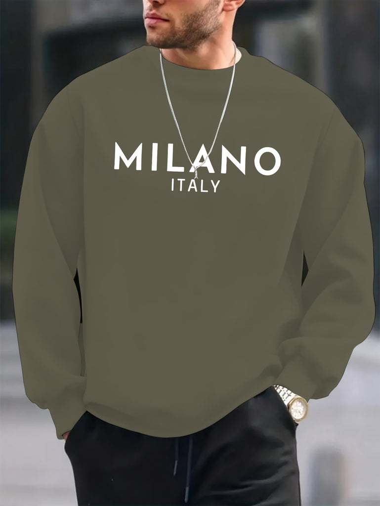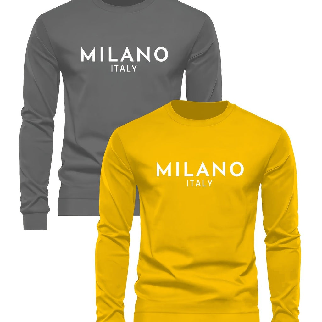 MBDMBD Milano Italy Creative Print Sweatshirt, Casual Round Neck Pullover in Black, Gray, Yellow - 100% Polyester, Machine Washable - Trendy Drawstring Hoodie for Men & Women