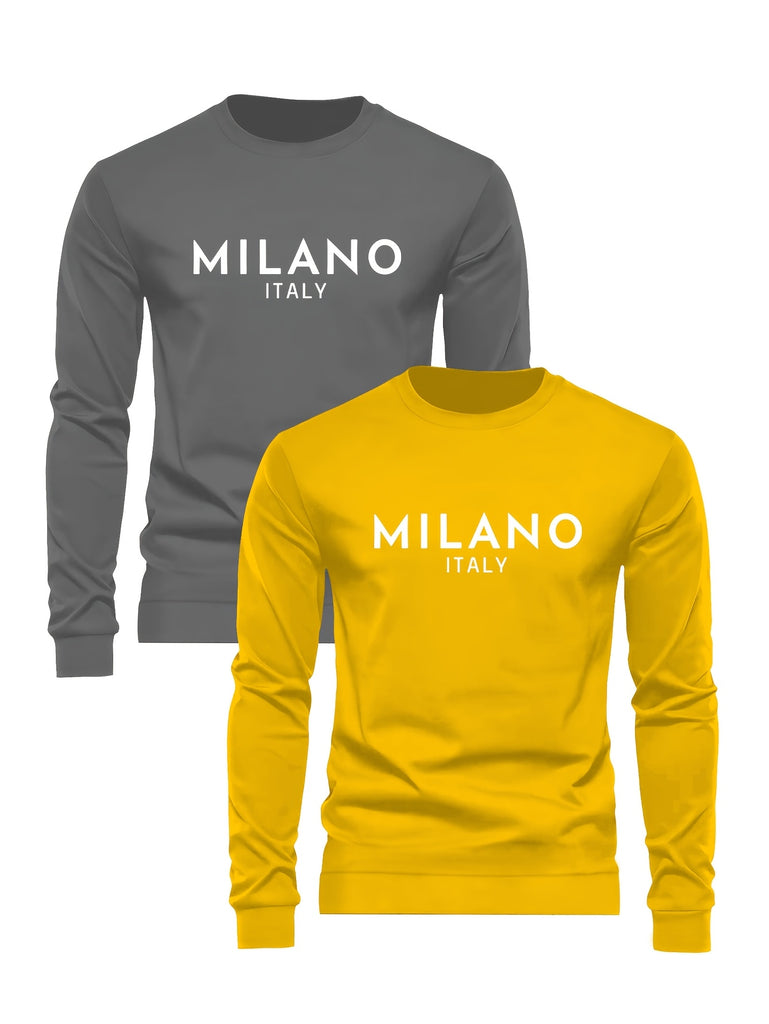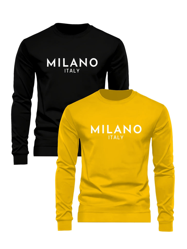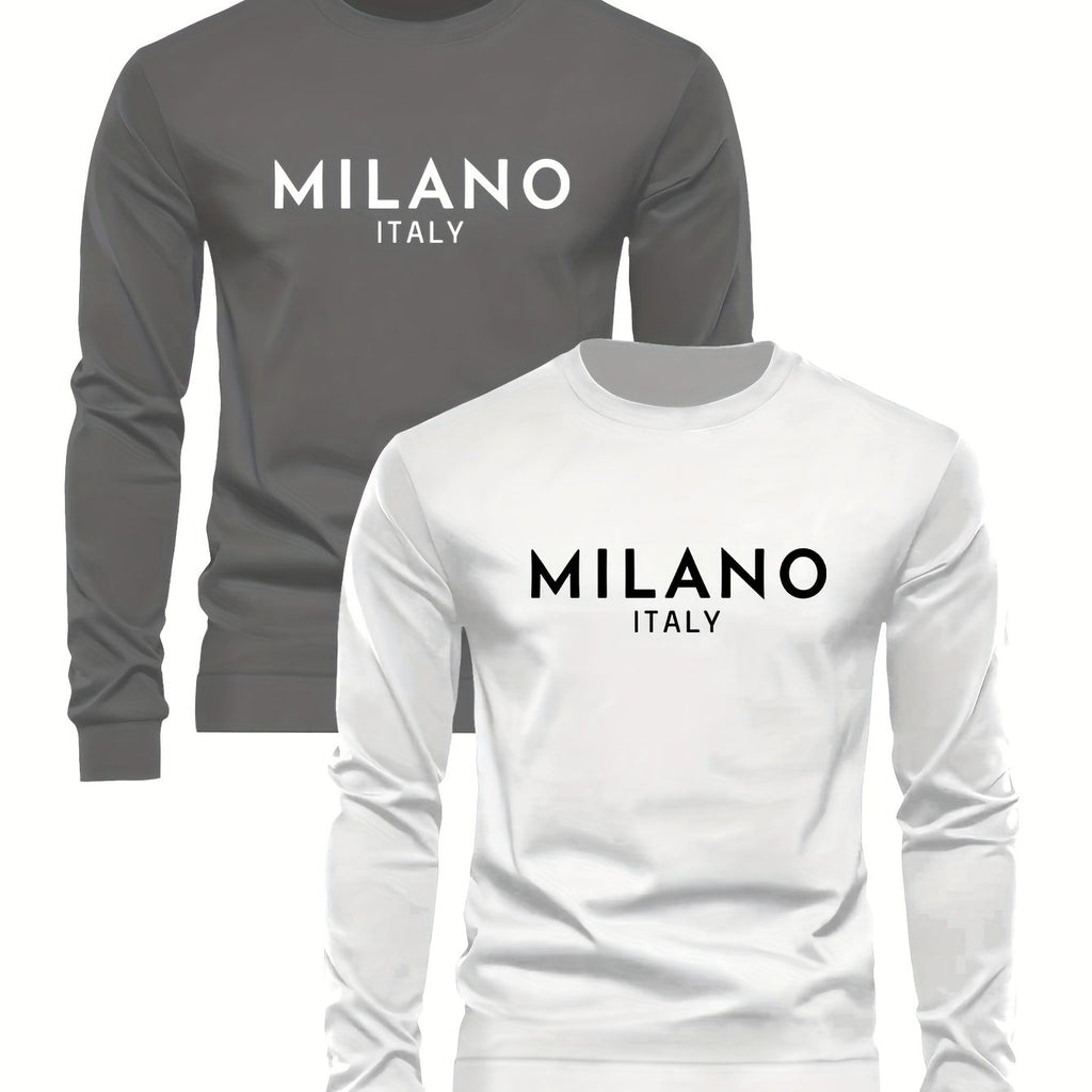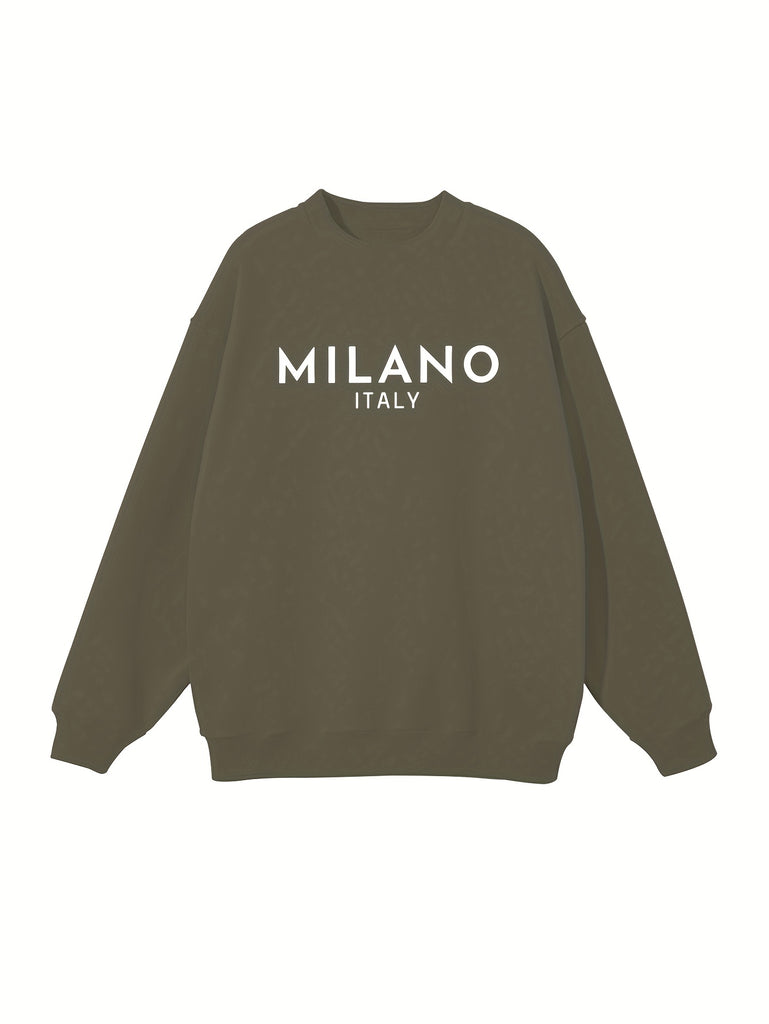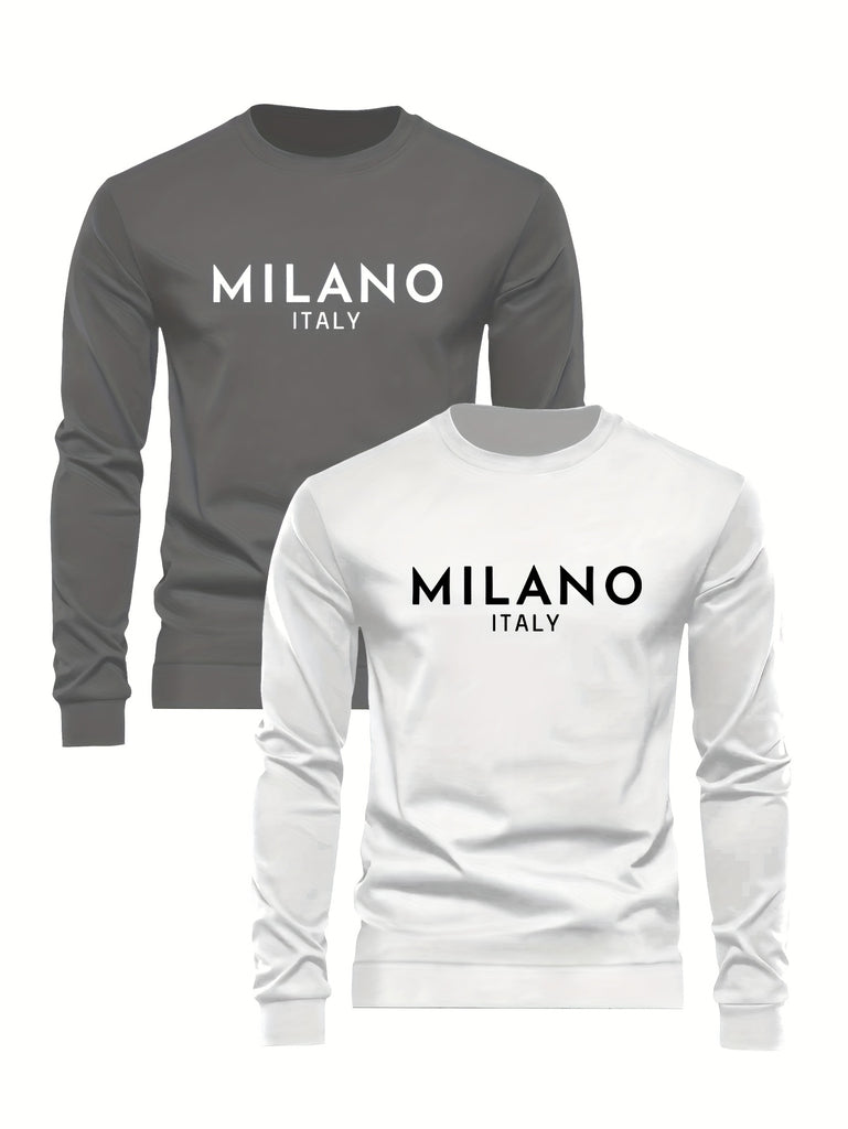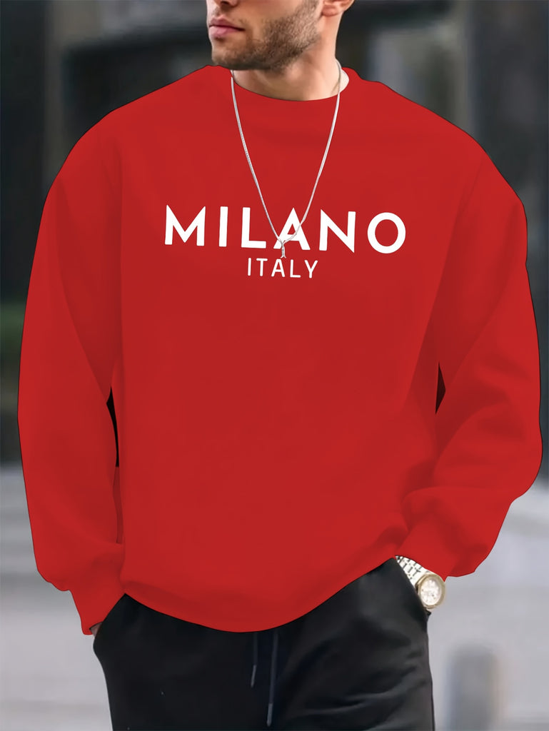 MBDMBD Milano Italy Creative Print Sweatshirt, Casual Round Neck Pullover in Black, Gray, Yellow - 100% Polyester, Machine Washable - Trendy Drawstring Hoodie for Men & Women
