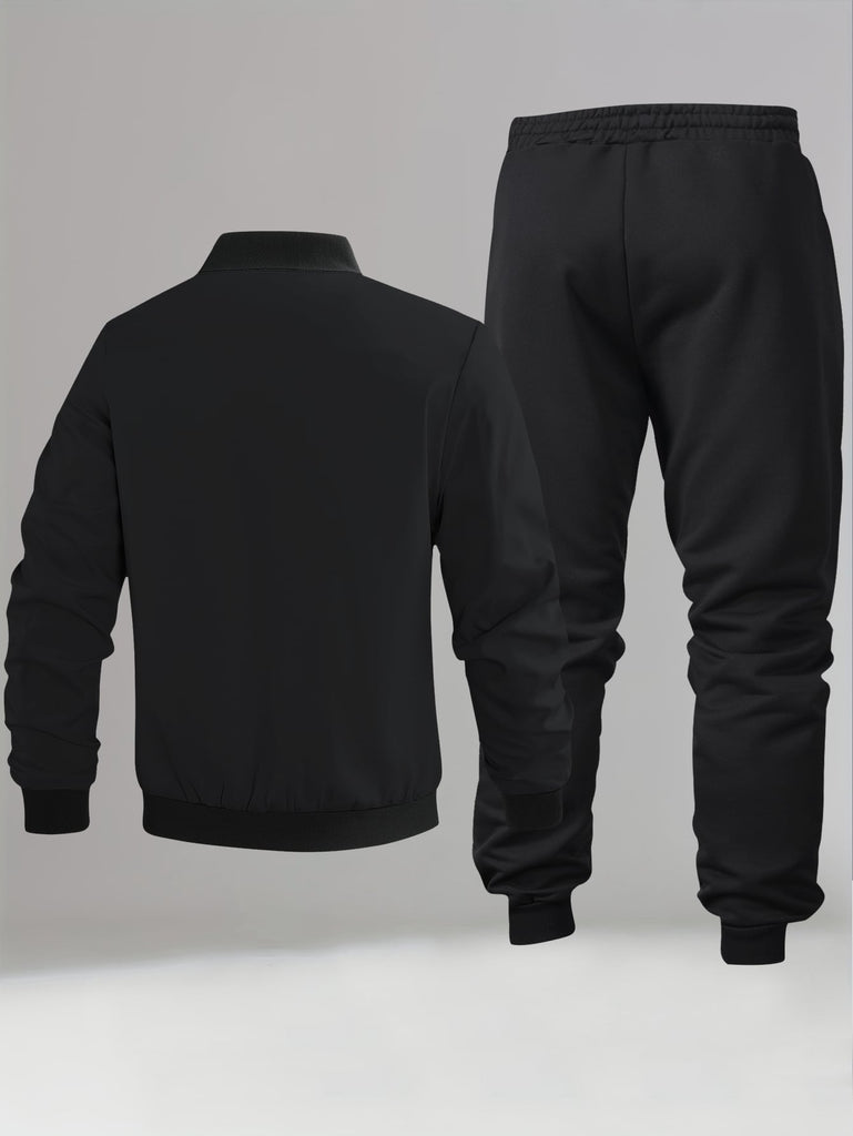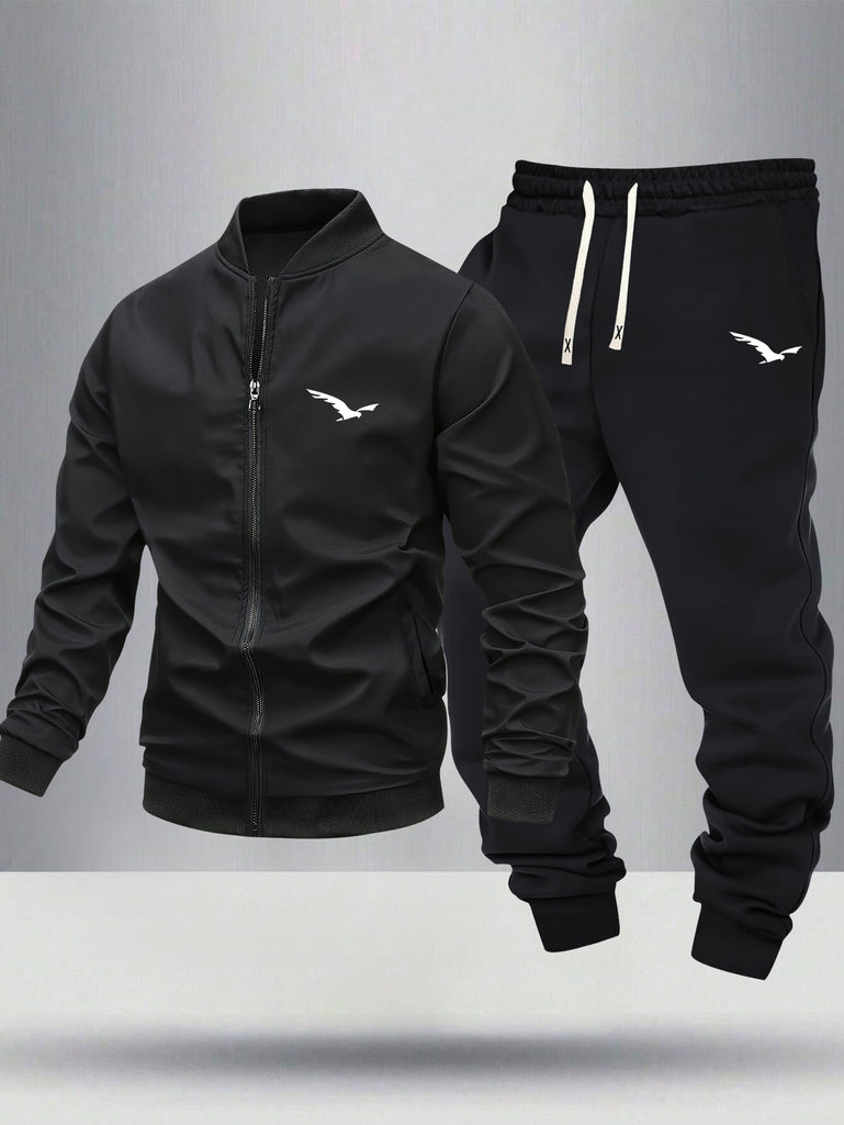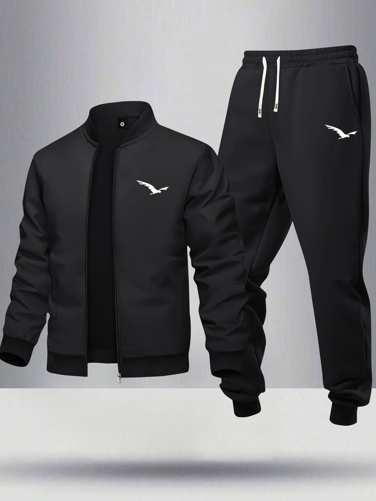 Men's 2 Pieces Bird Graphic Print Bomber Jacket And Jogger Pants Set For Spring Autumn Casual Outdoor Wear