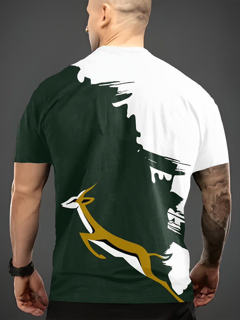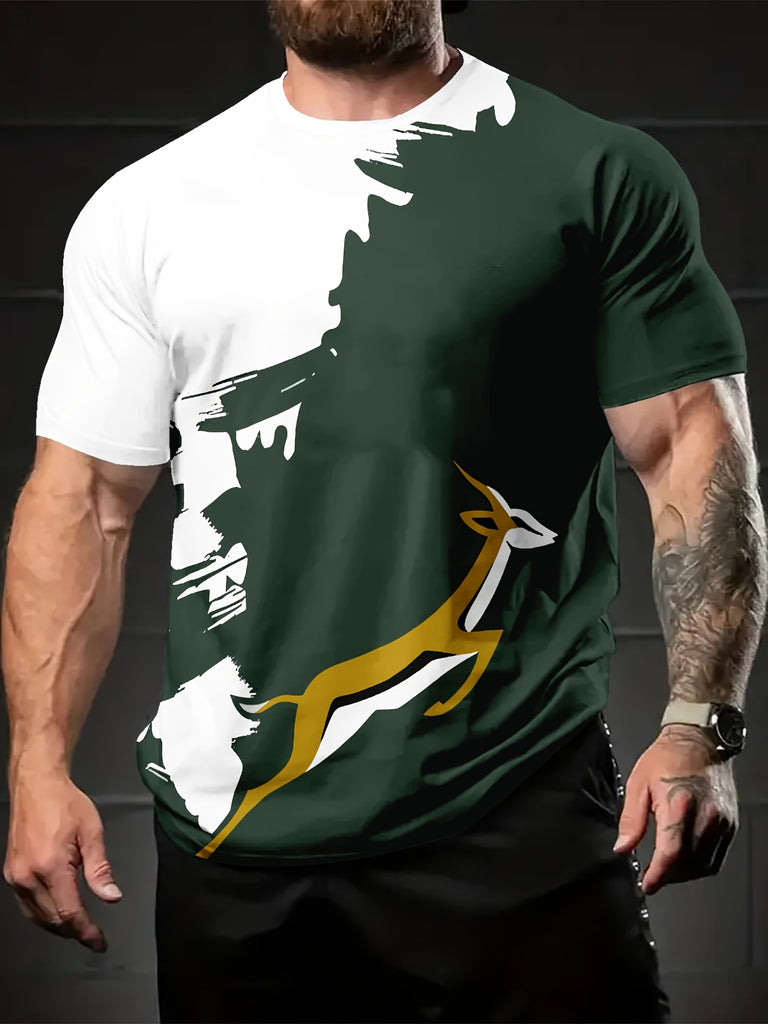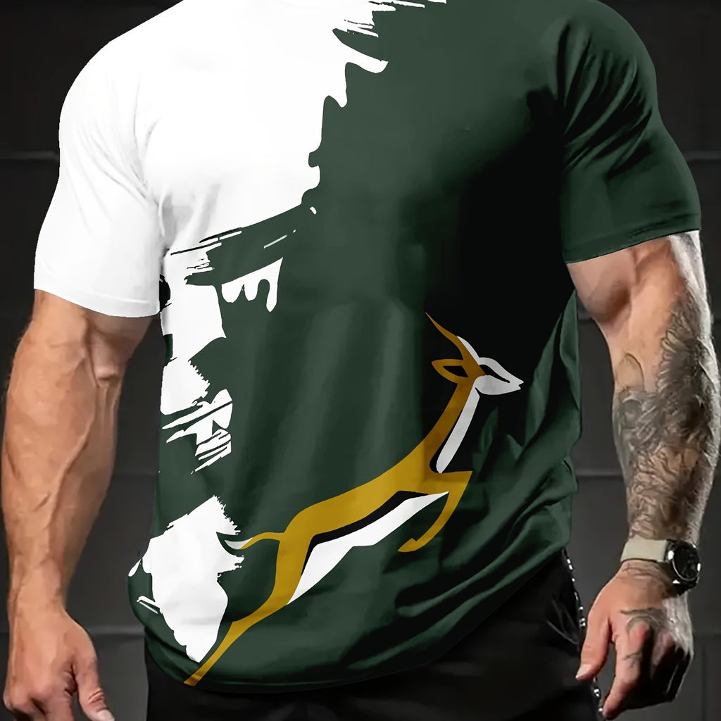 Men's 3D Deer Silhouette Graphic T-Shirt - Split Design Casual Short Sleeve Tee, Machine Washable Round Neck Top for Casual Attire, Everyday Tshirt | Bold Graphic Tee