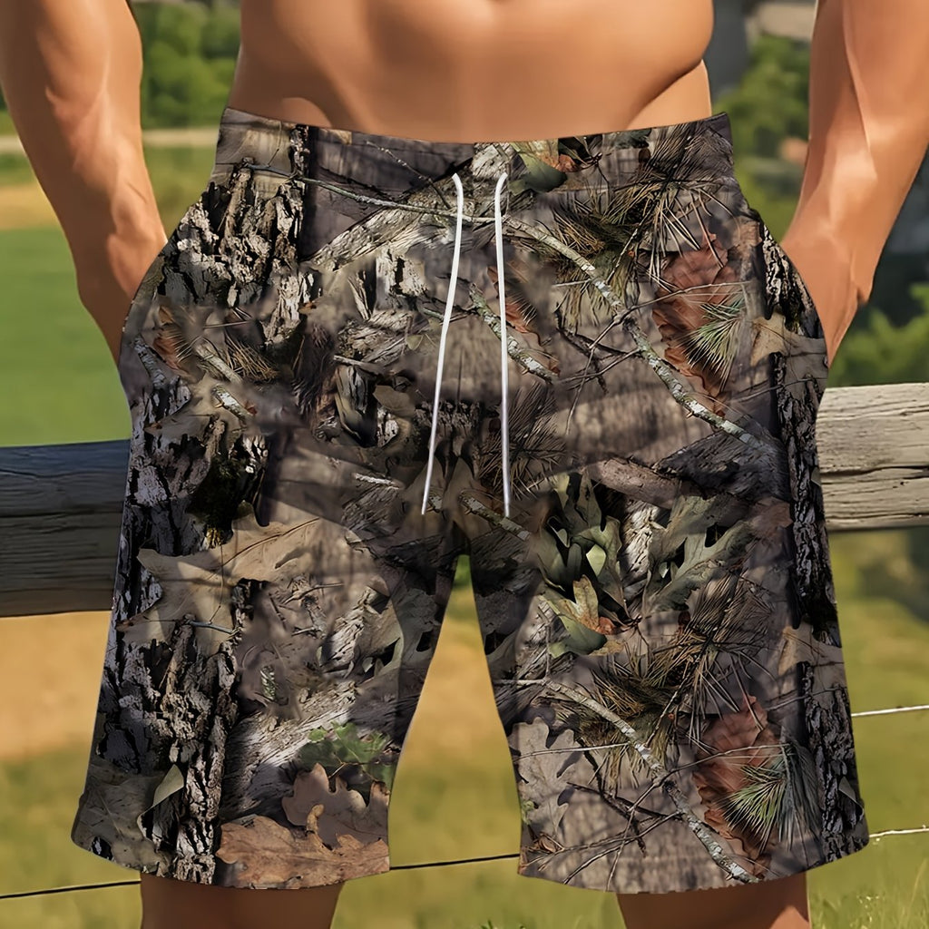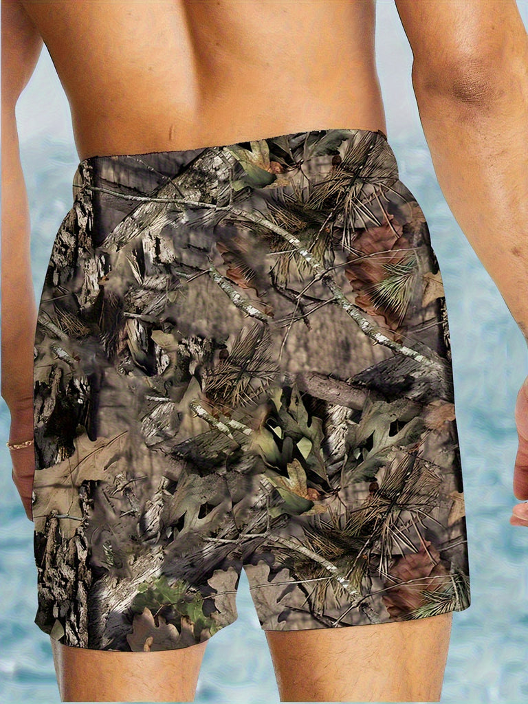 Men's Camo Beach Shorts - Lightweight Quick-Dry Polyester Boardwalk & Swimming Trunks, Adjustable Drawstring Waist, Machine Washable Outdoor Casual Shorts for Summer Vacation Outfits, Warm Weather Clothing, Geometric Pattern, Durable Construction