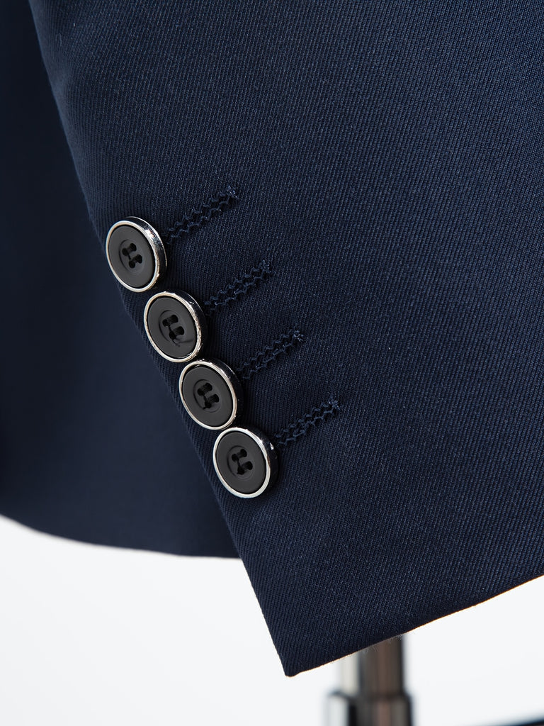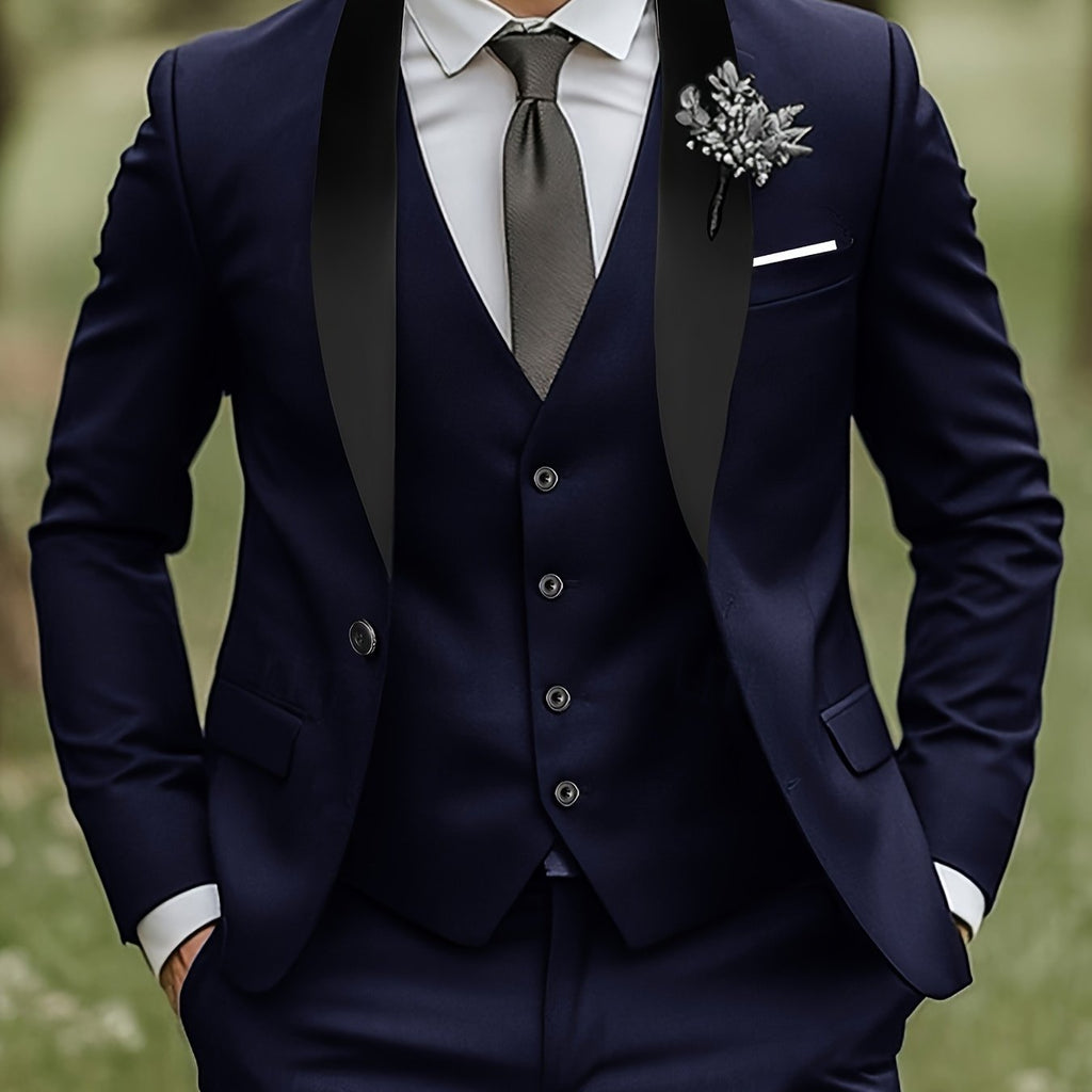 Men'S Navy Blue Three-Piece Suit with White Shirt and Tie - Perfect for Weddings and Formal Events, Slim Fit, Non-Stretch Fabric, Wedding Attire|Slim Fit Suit|Woven Fabric