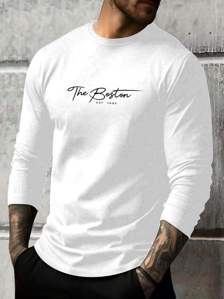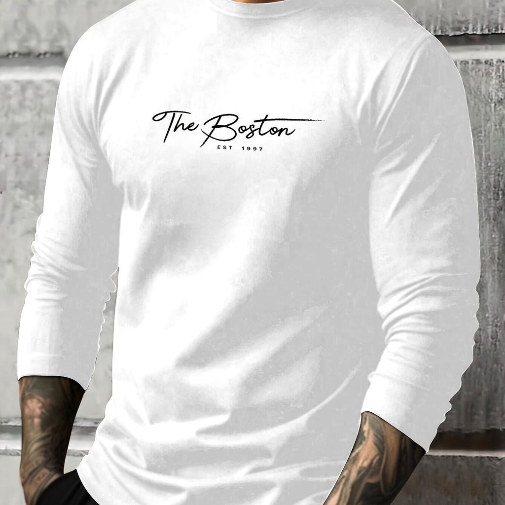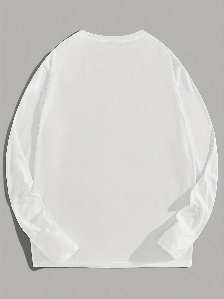 Men'S Plus-Size Round Neck Long Sleeve T-Shirt, Casual And Comfortable for Spring And Autumn with Trendy Print Designs, Plus Size