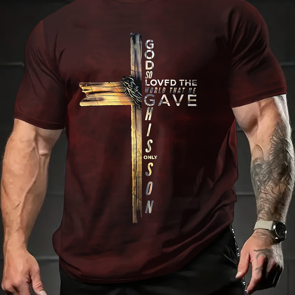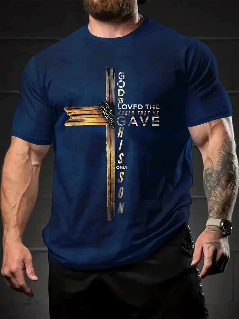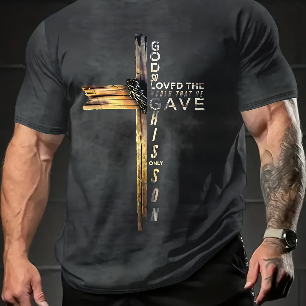 Men's Summer Casual Cross Graphic Tee - Comfortable, Stylish Round Neck Short Sleeve T-Shirt for Casual Attire