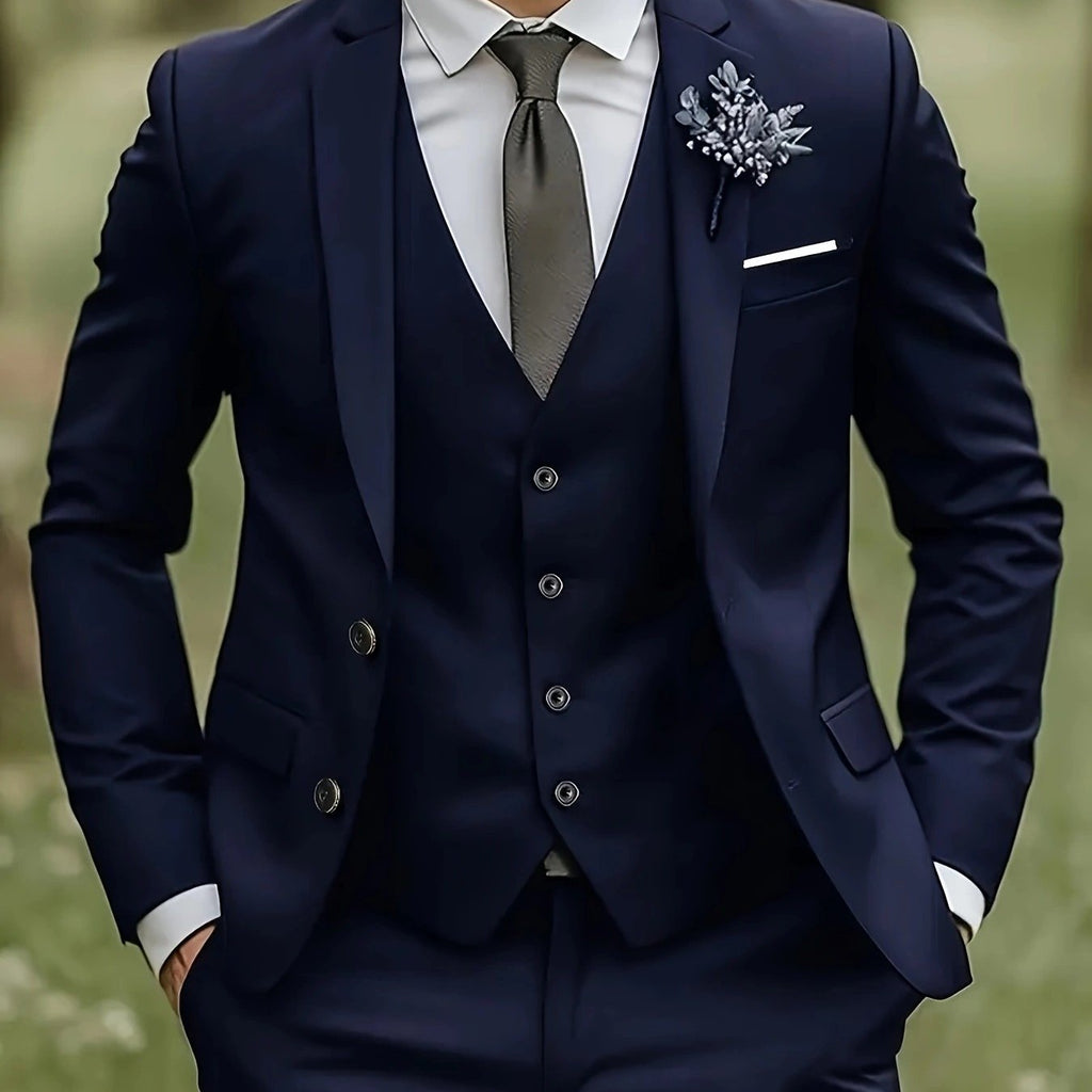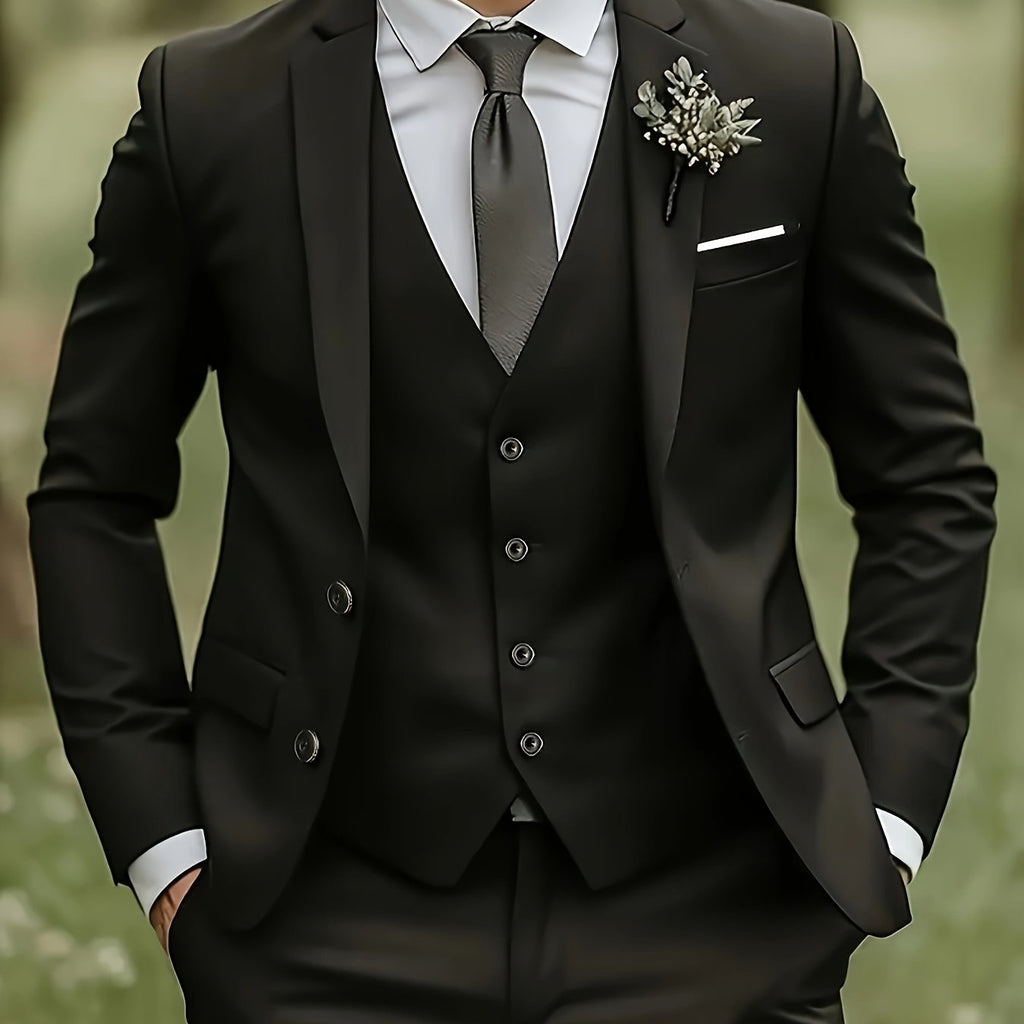 Men's Three-Piece Suit with Flat Lapel Tuxedo, Vest and Pants for Weddings, Formal Events, Parties, and Evening Wear - Includes Jacket Only Vest Trousers