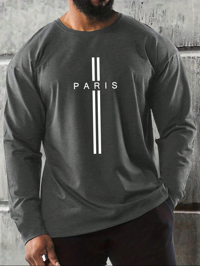 Plus Size Men's Letter & Graphic Print Round Neck Long Sleeve T-Shirt