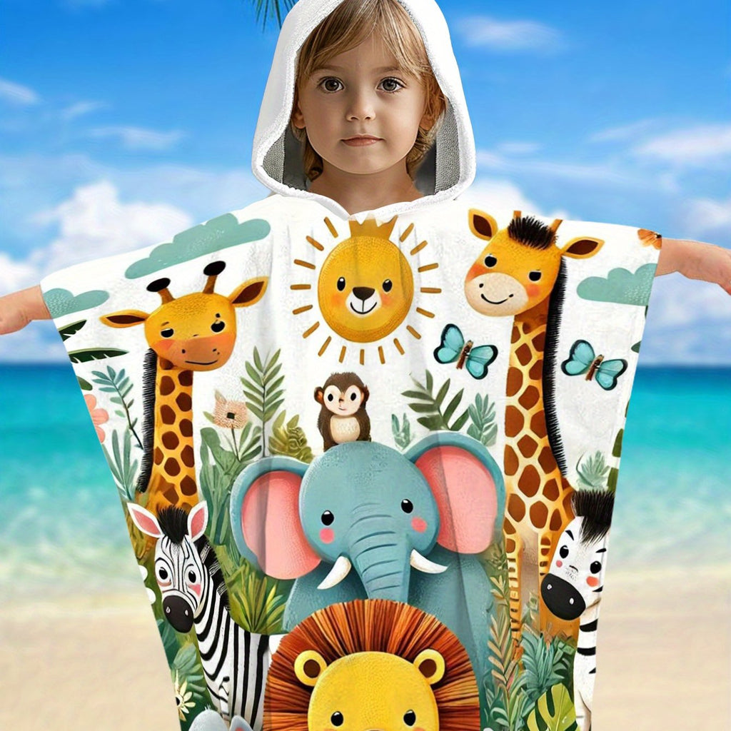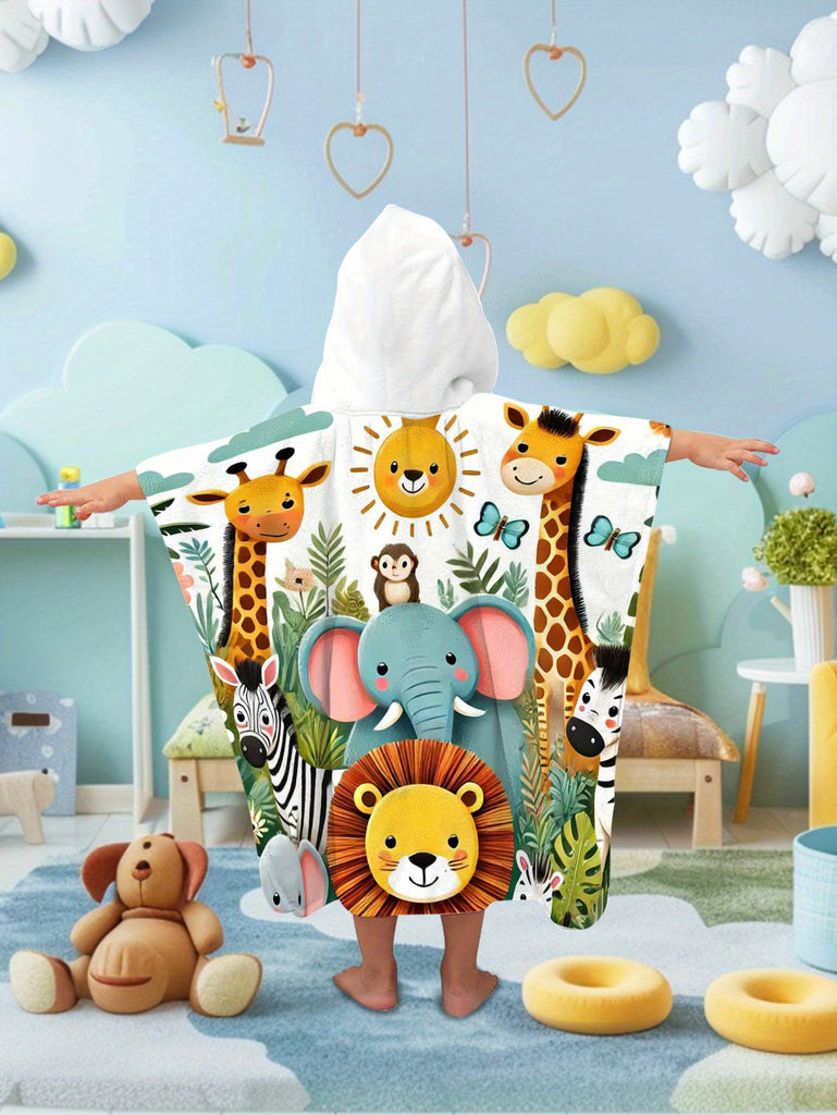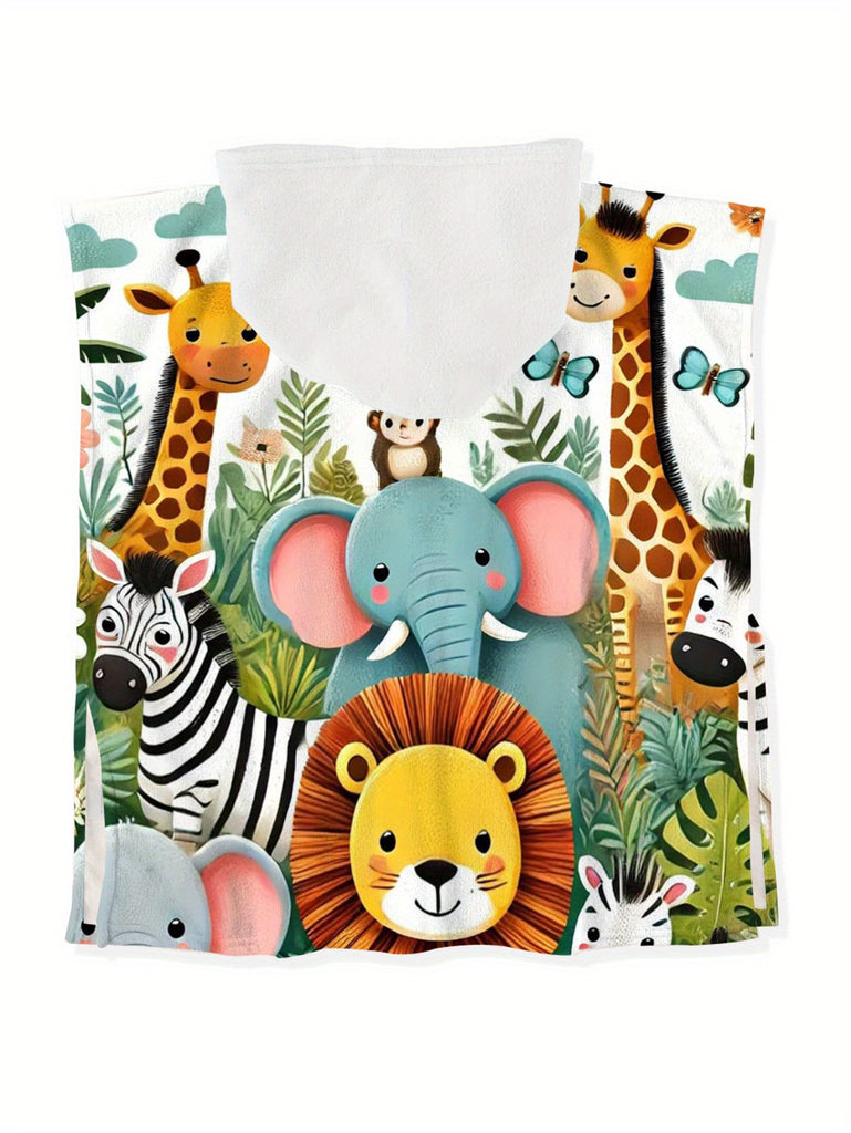 1pc Flame-Resistant Hooded Bath & Swim Towel for Youngsters 3-12 Years - Vibrant Cartoon Animal Kingdom Jungle Print, Super Absorbent Quick-Dry Loose Fit Towel for Beach, Pool, Bath Time, Youngsters Beach Towel | Cartoon Animal Print | Hooded Towel, Bath