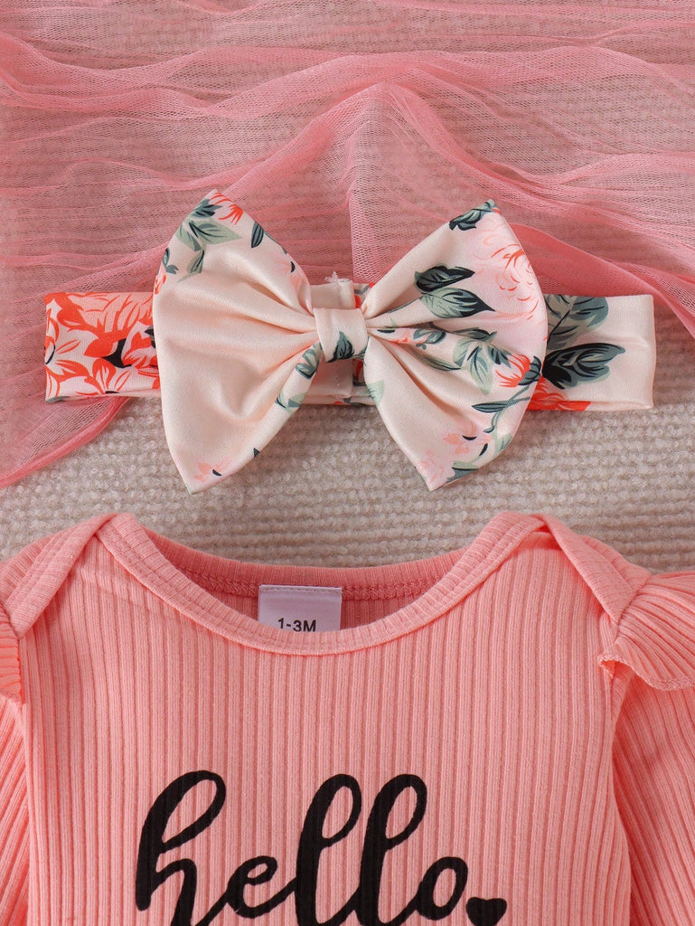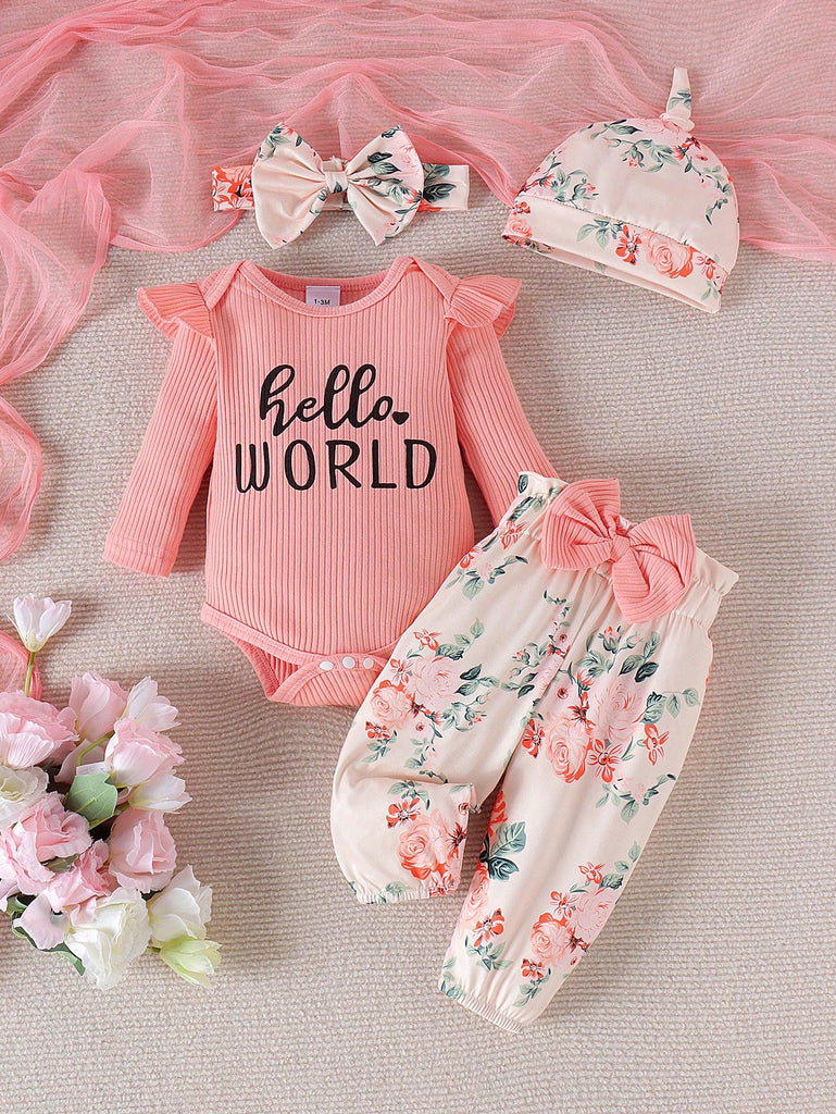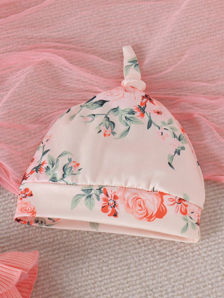 2pcs Baby Girls' Lovely Printed Long Sleeve Top Pants Hat Headband Lightweight Spring/Autumn Outfits