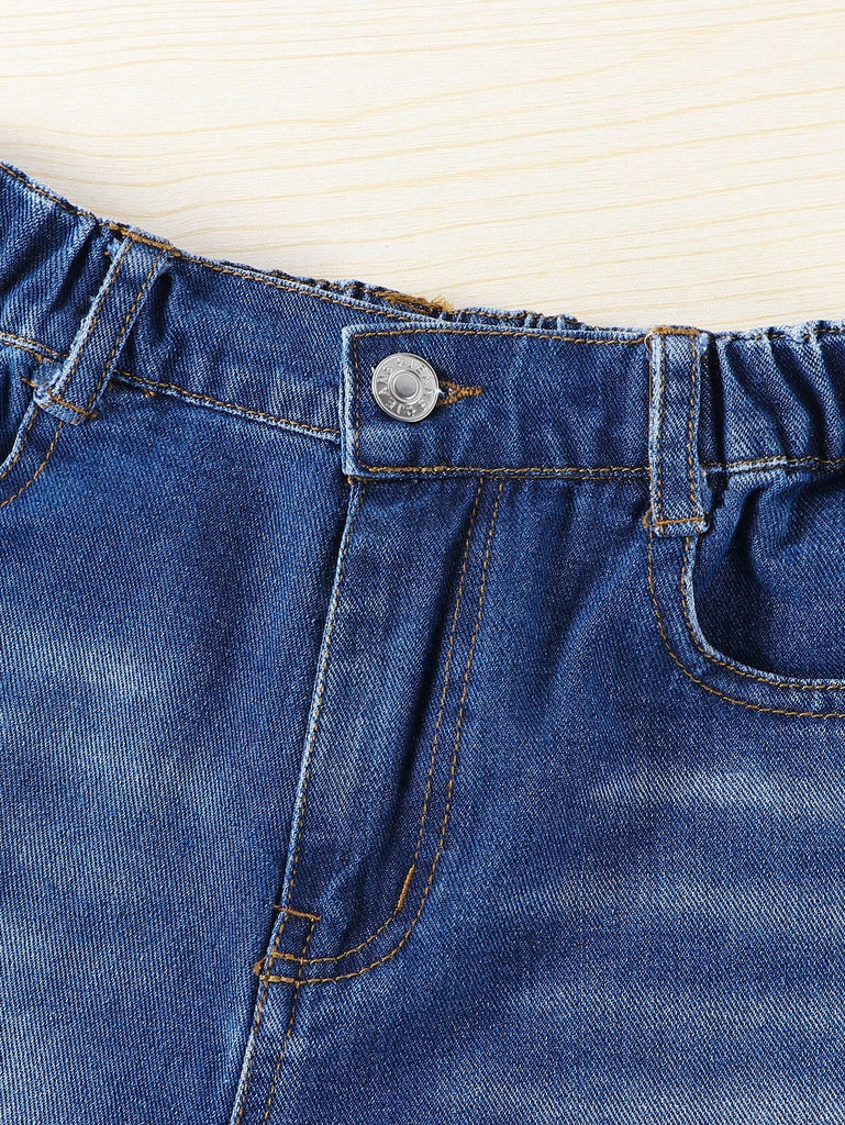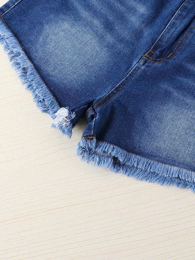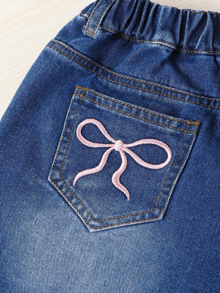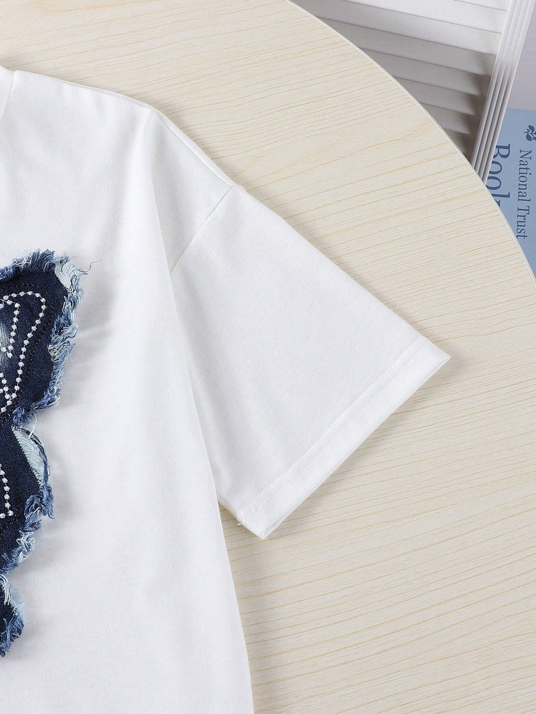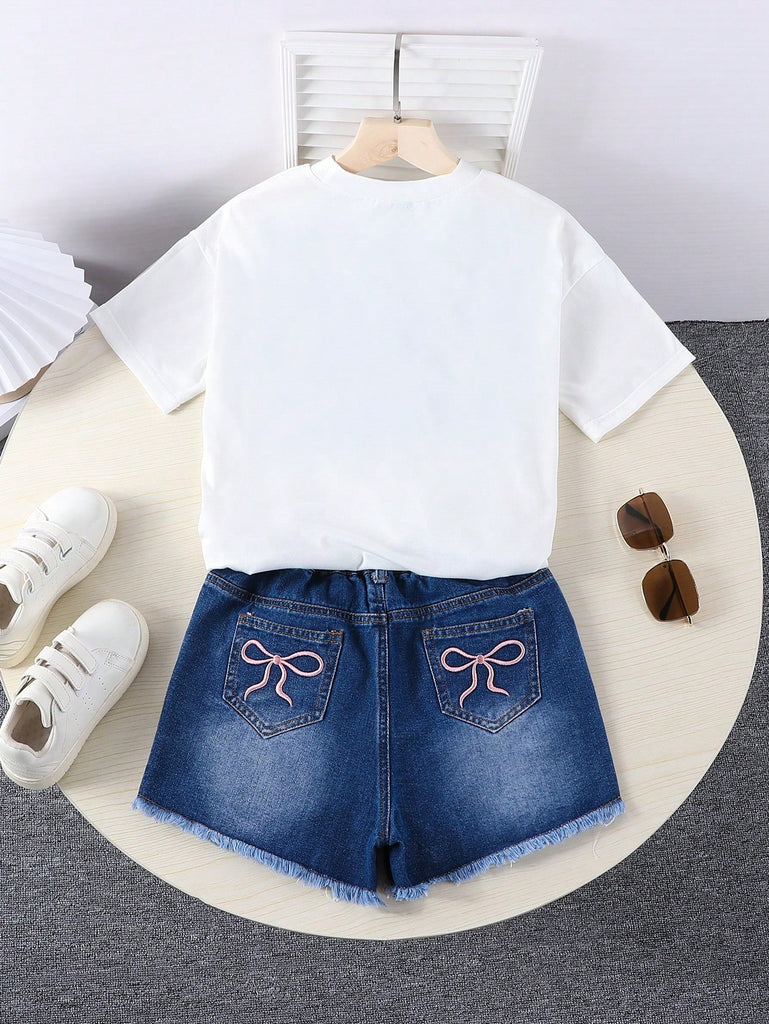 2pcs Girls Butterfly & Denim Patch Short Sleeve T-Shirt And Embroidered Denim Shorts Set, Summer Young Girls Sets Summer Young Girls Sets Young Girls Sets Winter Sets For Girls Clothes Outfit For Girls Teen Girls Sets