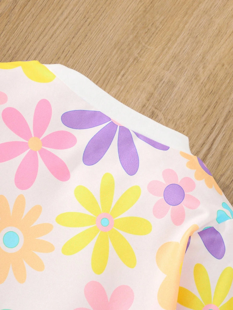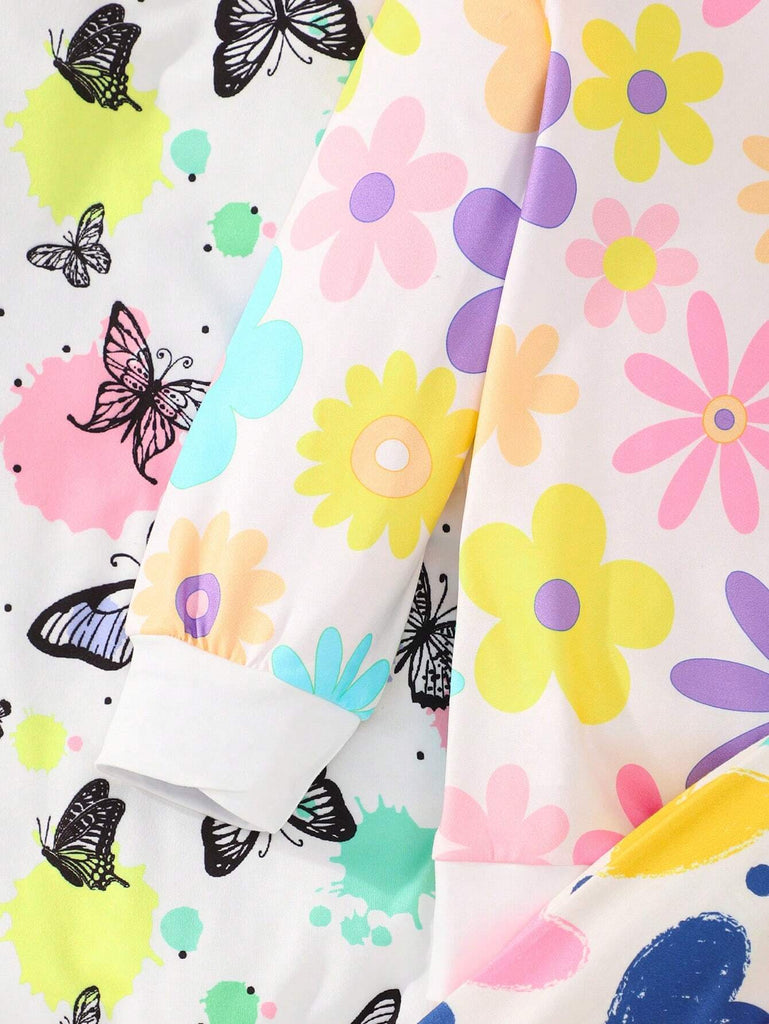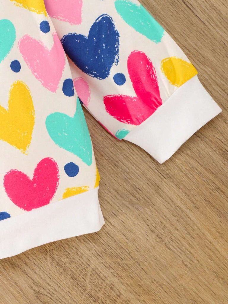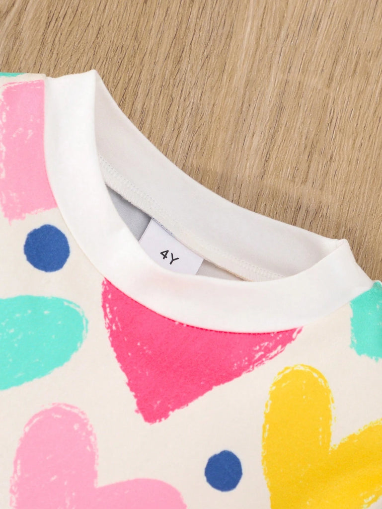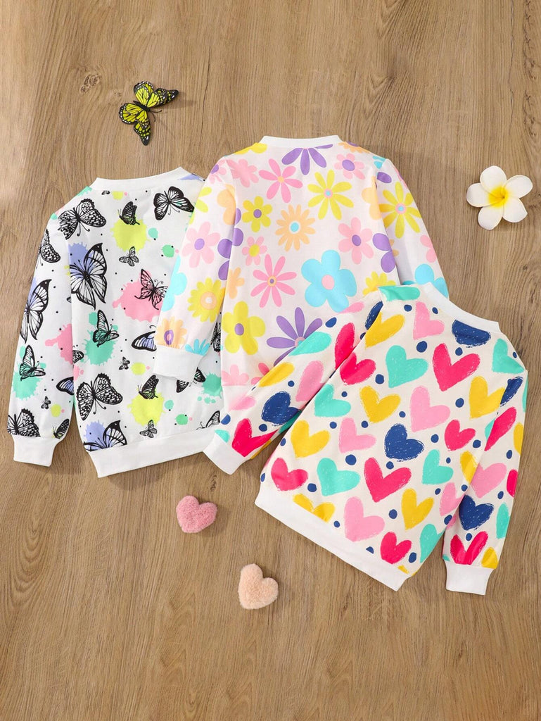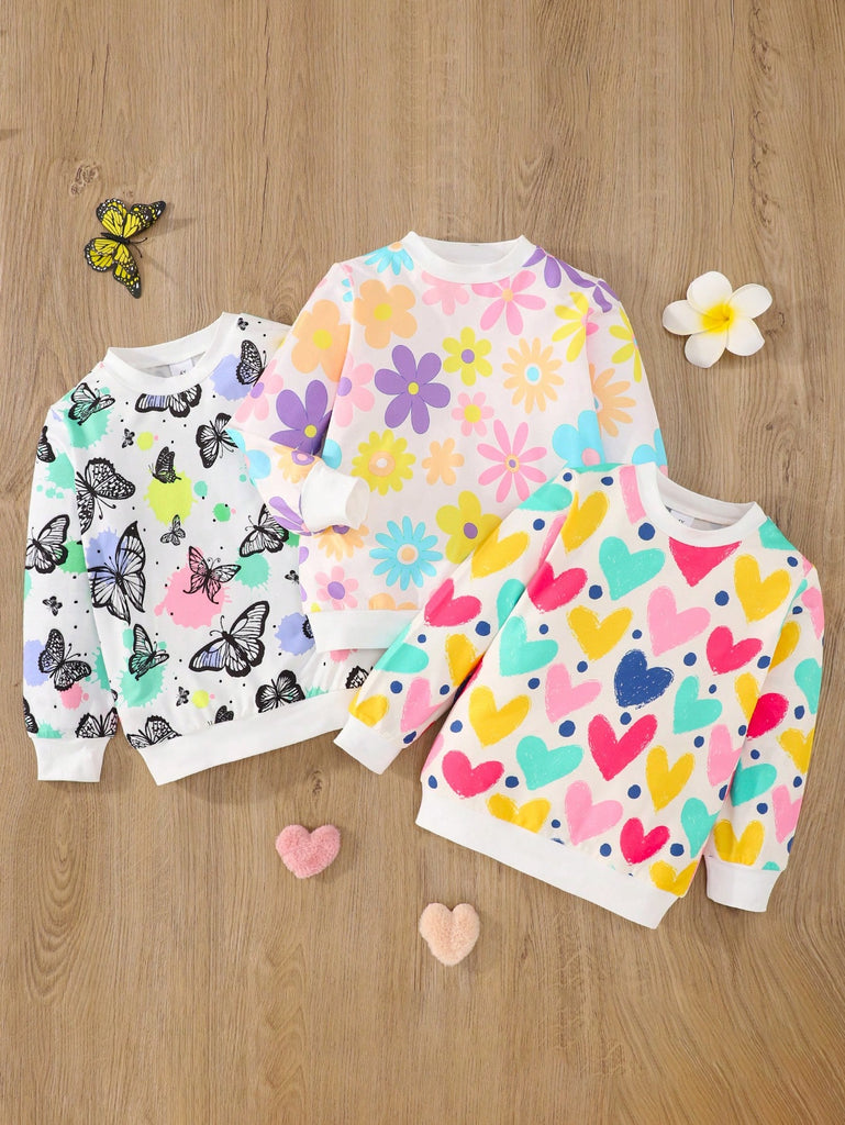 3pcs/Set Young Girl Heart & Ditsy Floral Long Sleeve Knitted Casual Tops, Autumn