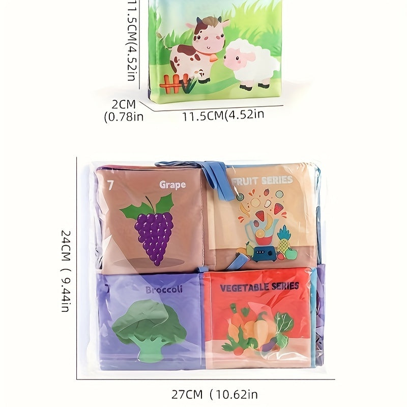A Set Of 8 Cloth Books For Babies, Including Books On Wild Animals, Ocean Animals, Fruits, Transportation, Food, Fruits, Poultry, And Vegetables Early Education Toy Halloween Christmas Gift