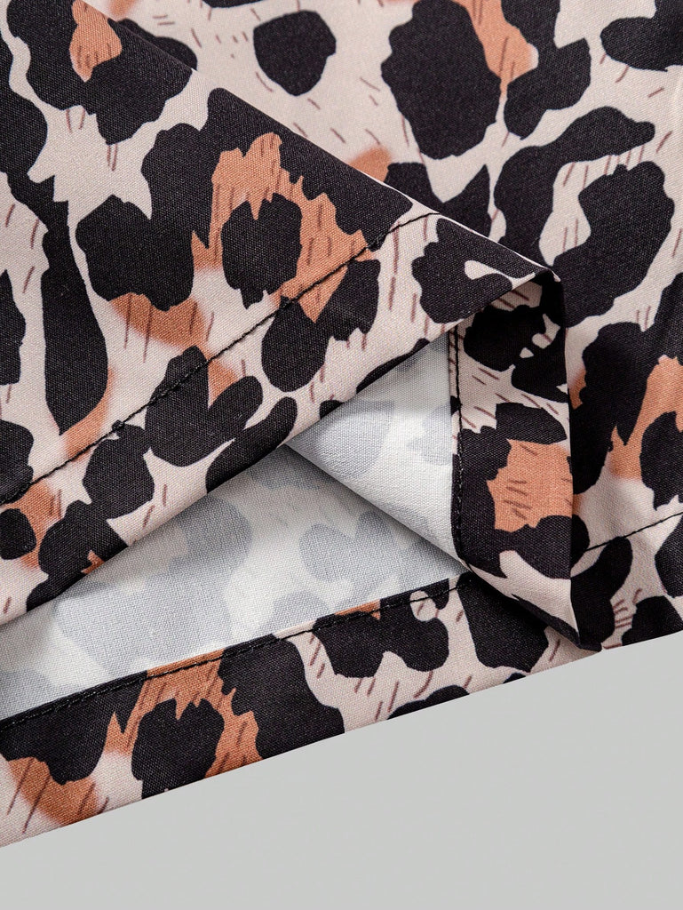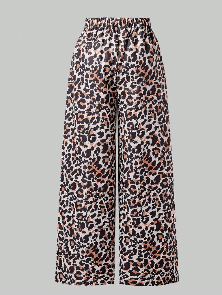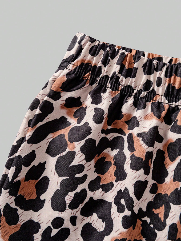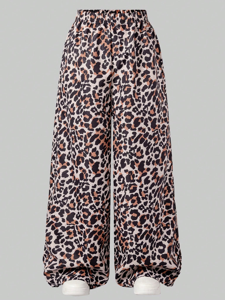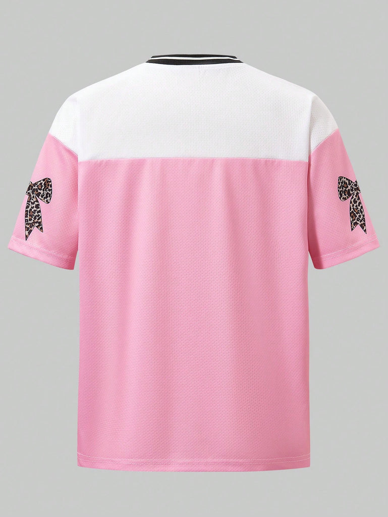 SHEIN 2 Pcs/Set Teen Girls Casual Sports Streetwear, Pink Sports Sweatshirt With Bow Decor, Loose Fit Leopard Print Straight Leg Pants, Versatile And Practical