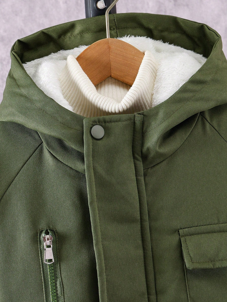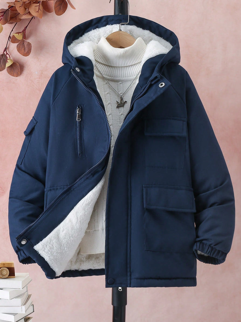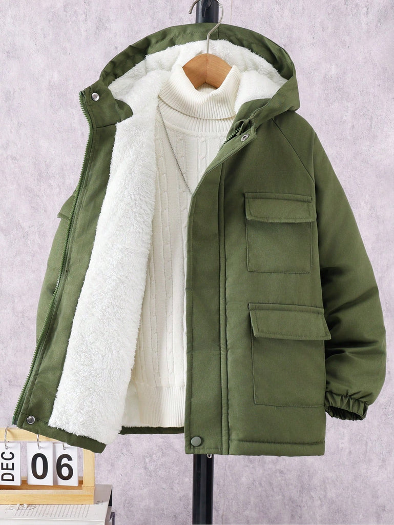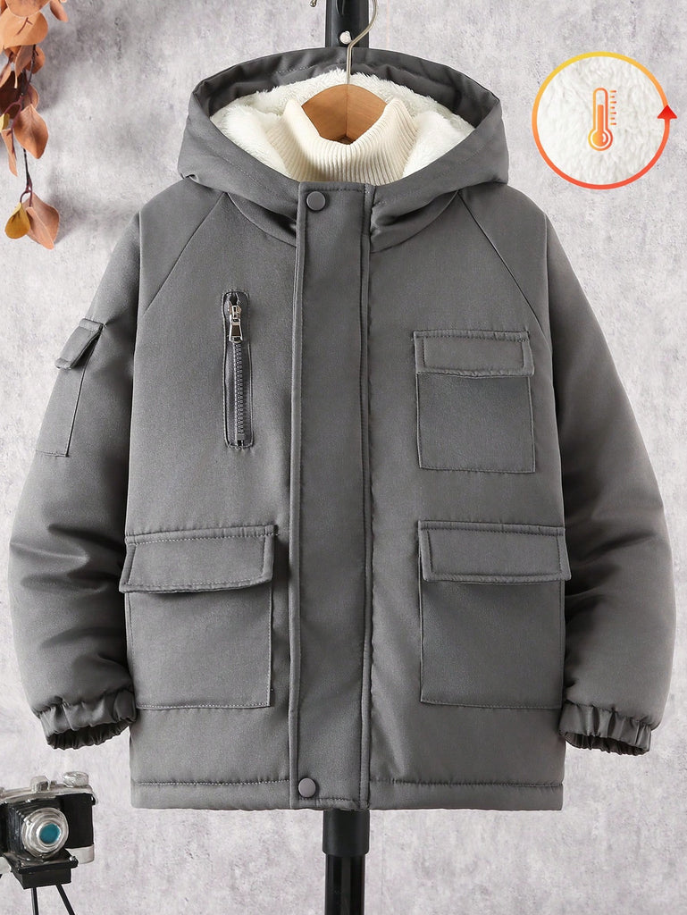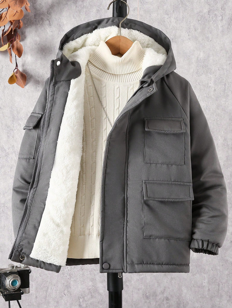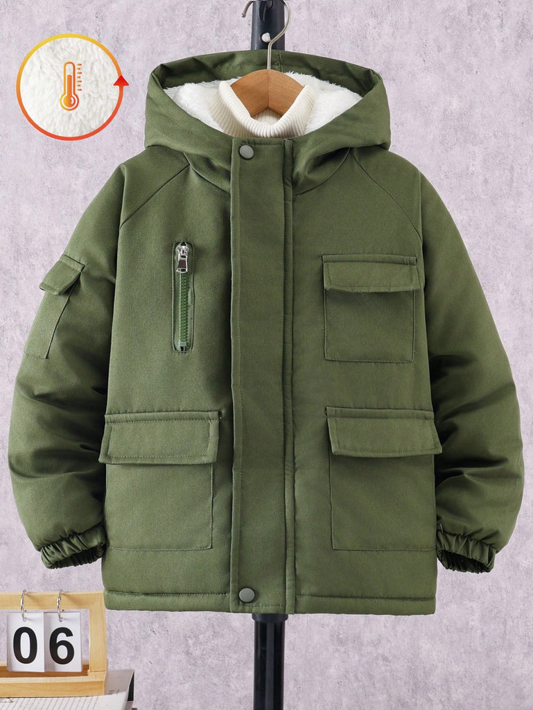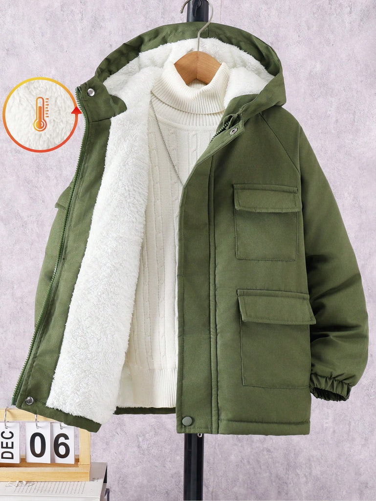SHEIN Tween Boy Hooded Flap Pocket Thermal Lined Coats