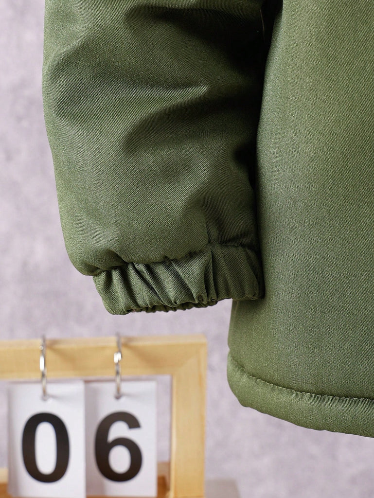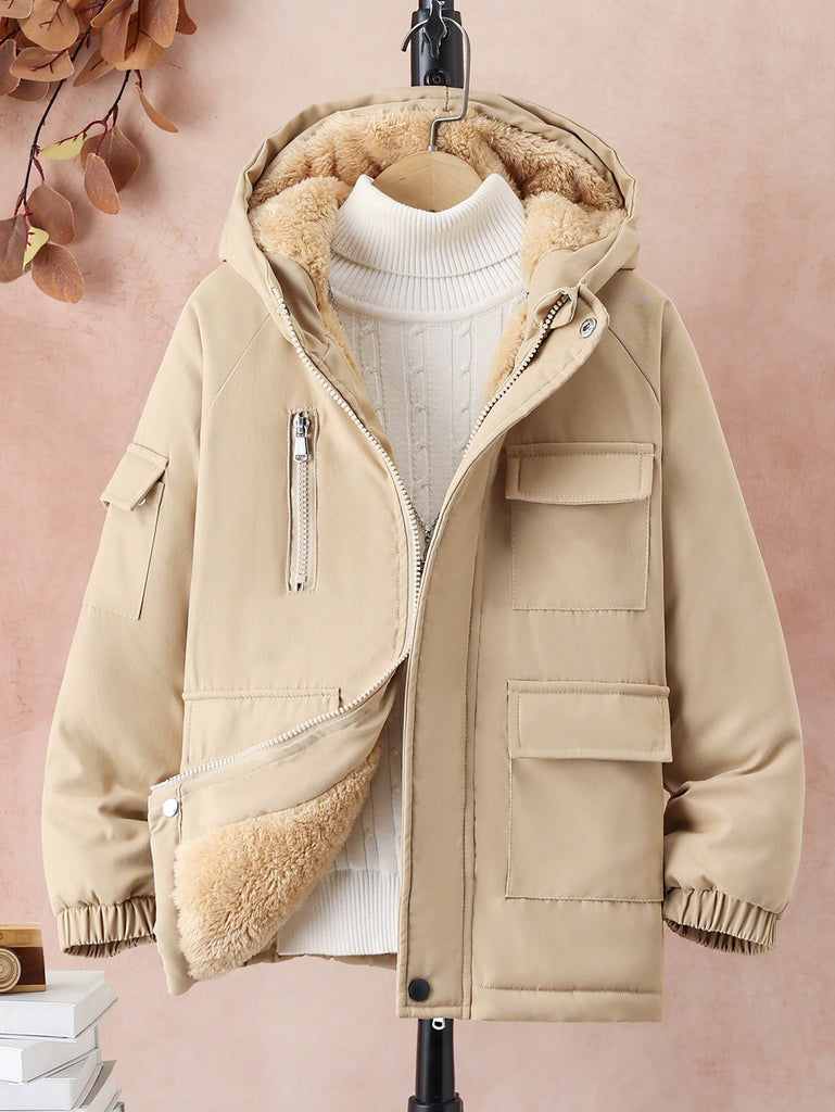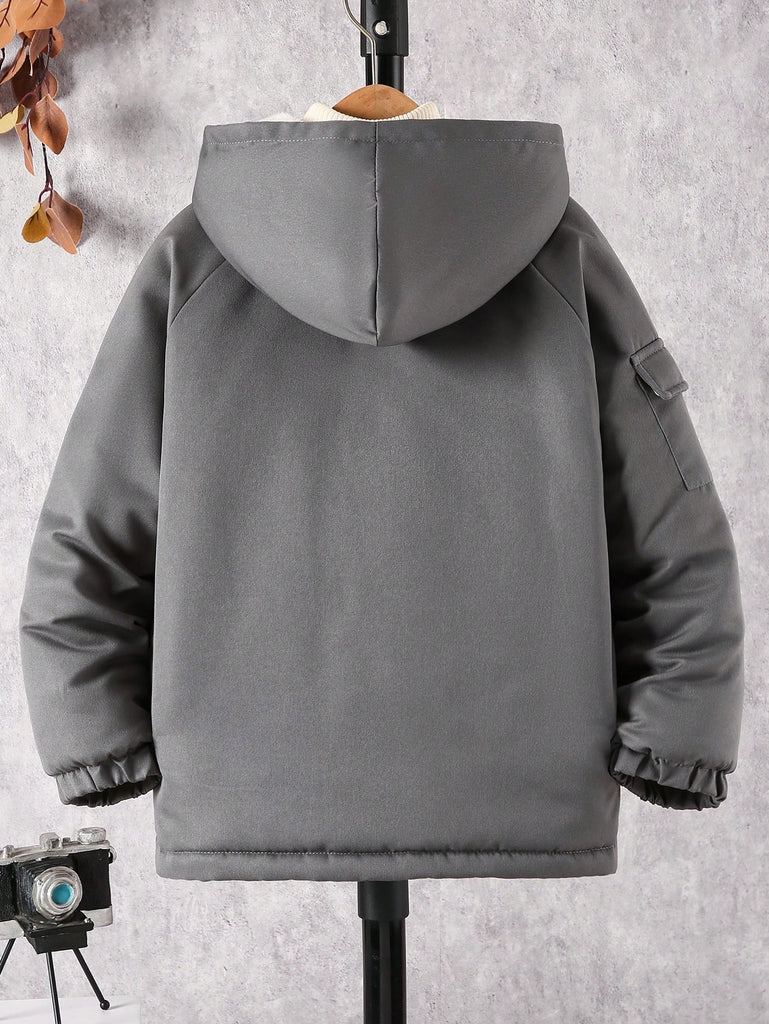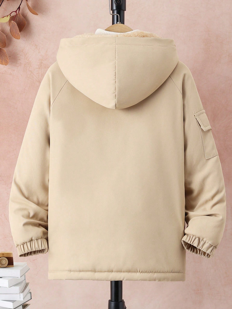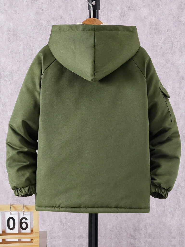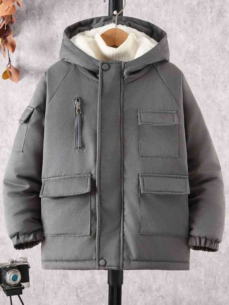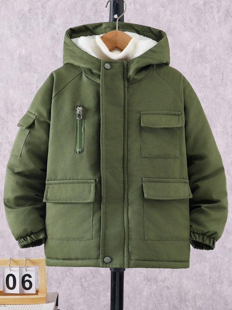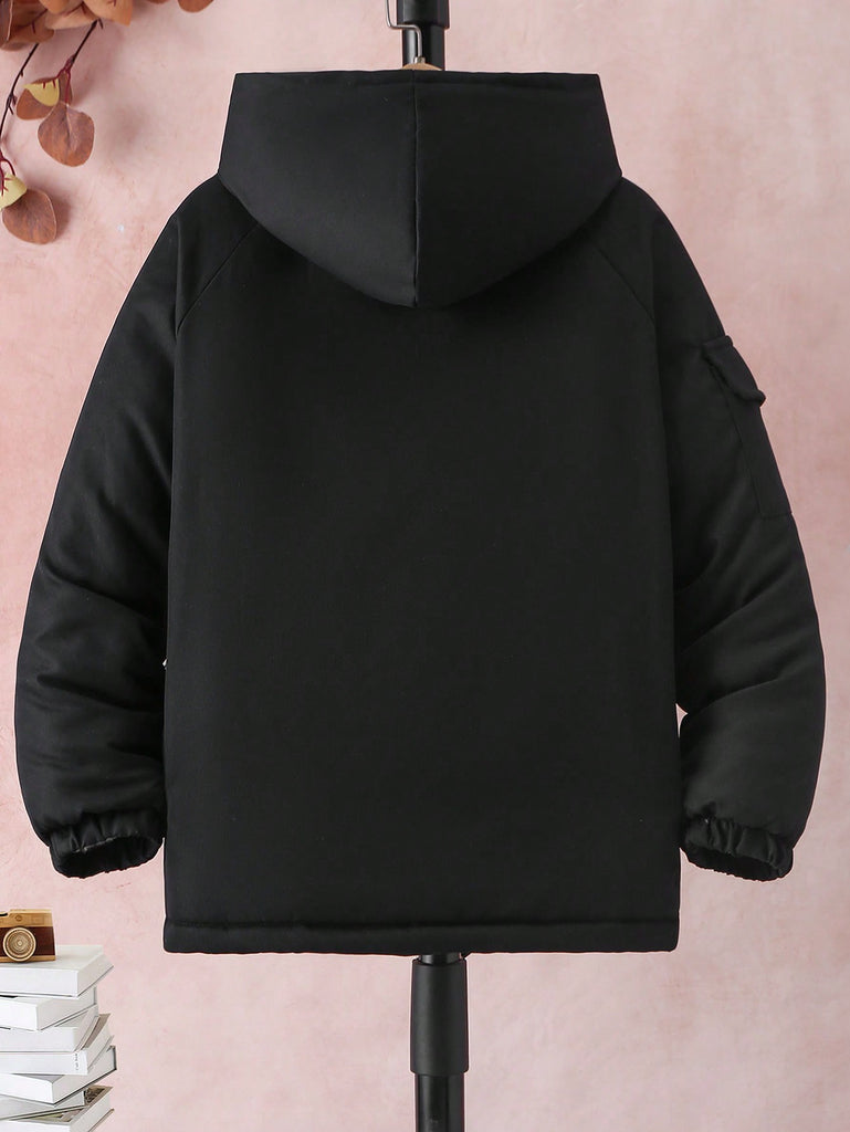 SHEIN Tween Boy Hooded Flap Pocket Thermal Lined Coats