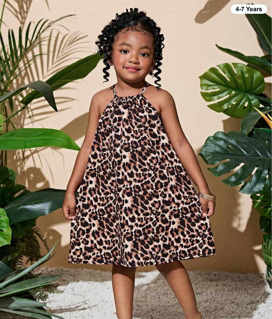 SHEIN Young Girl Woven Leopard Print Snug Fit Casual Sleeveless Dress