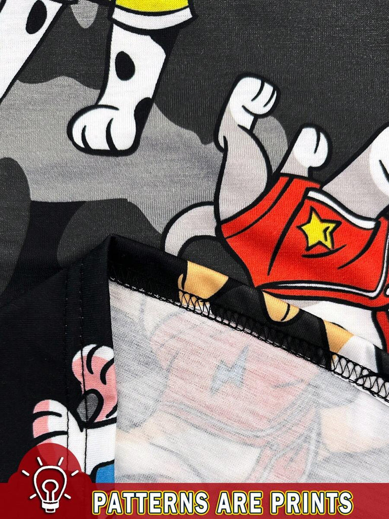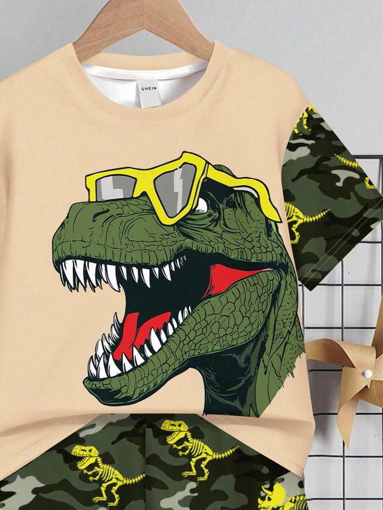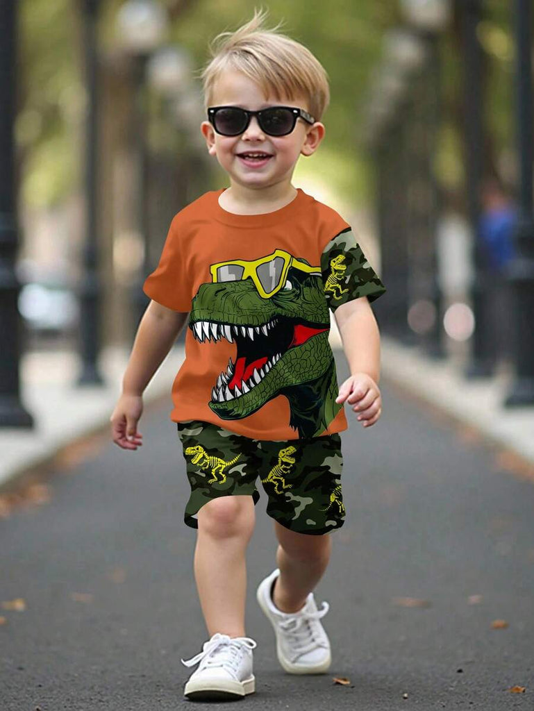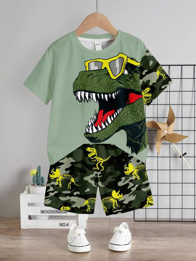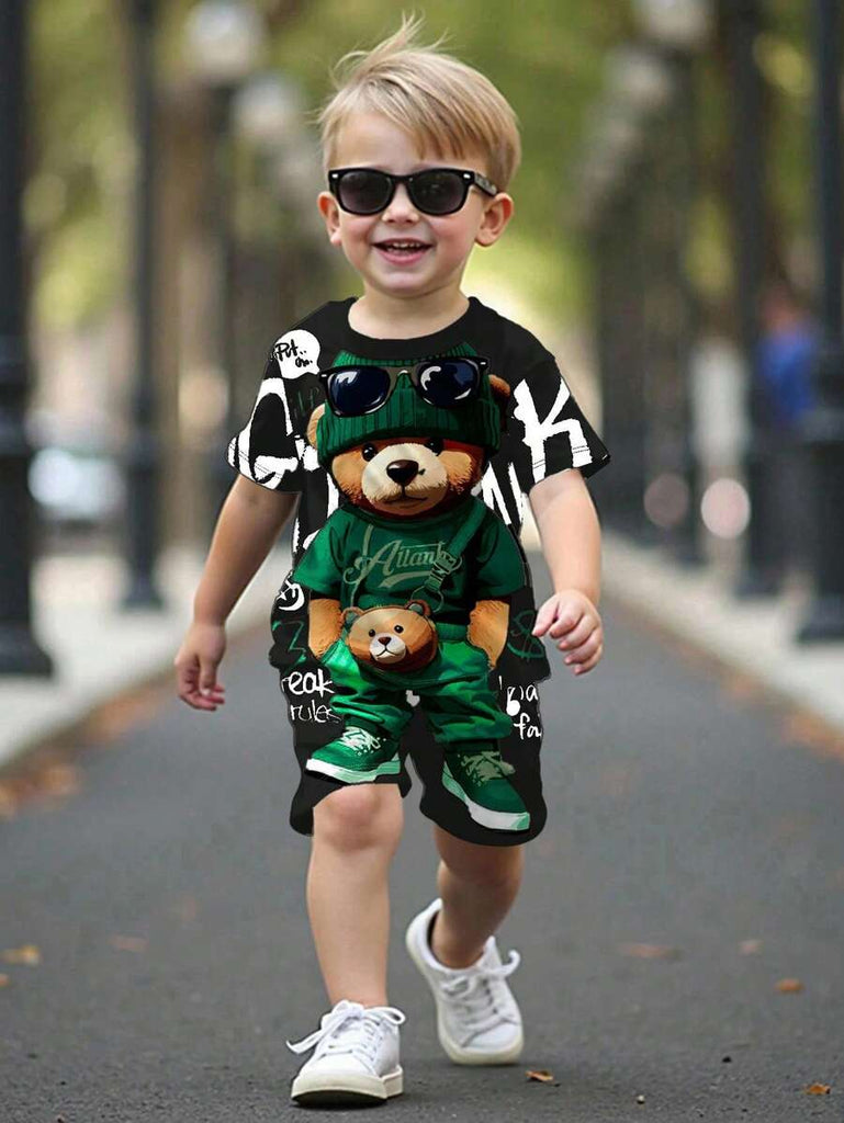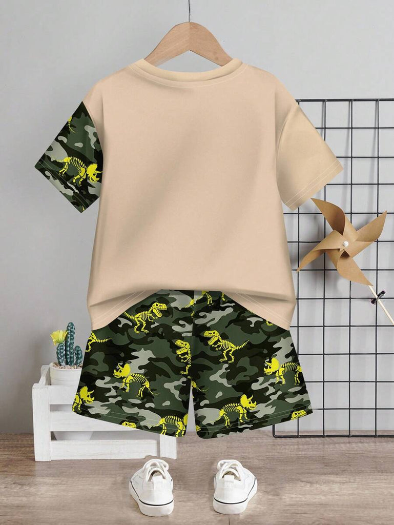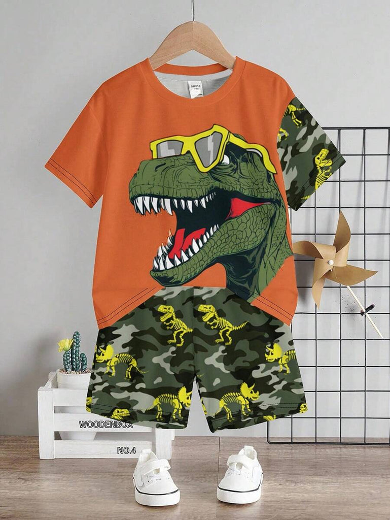 Young Boy 2pcs Casual Simple Cartoon Dog Graphic Loose Crew Neck Short Sleeve T-Shirt And Shorts Set, Suitable For Summer