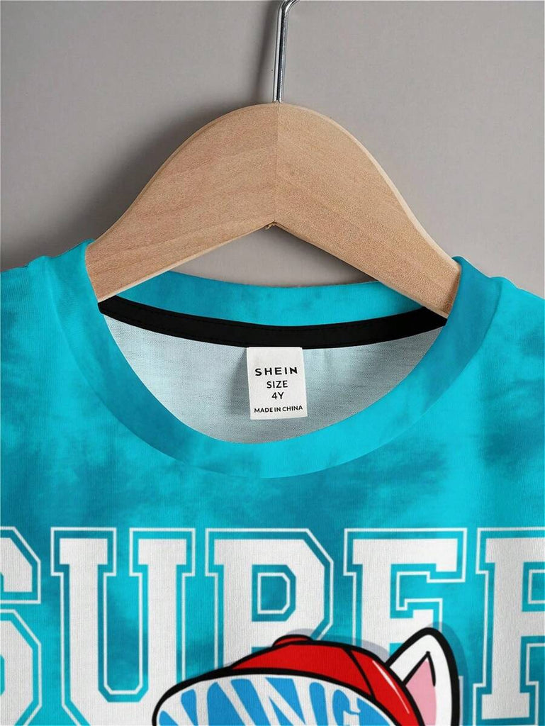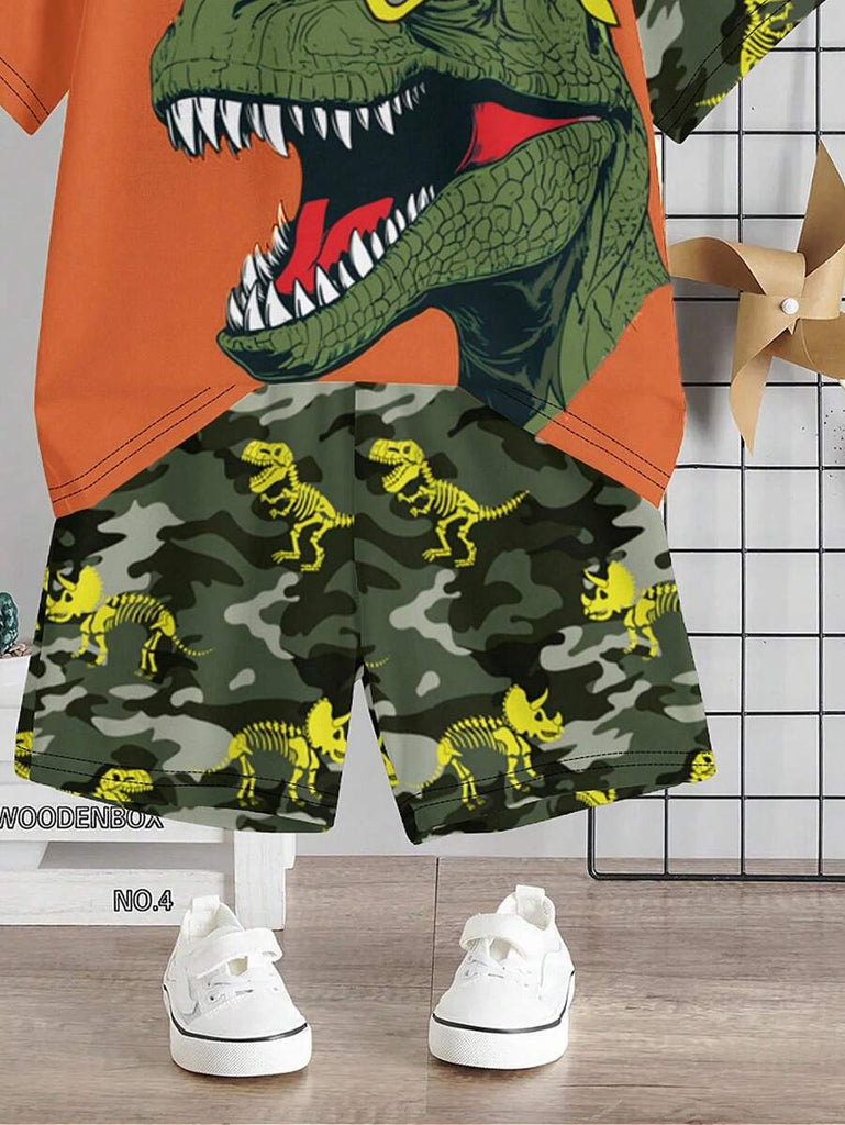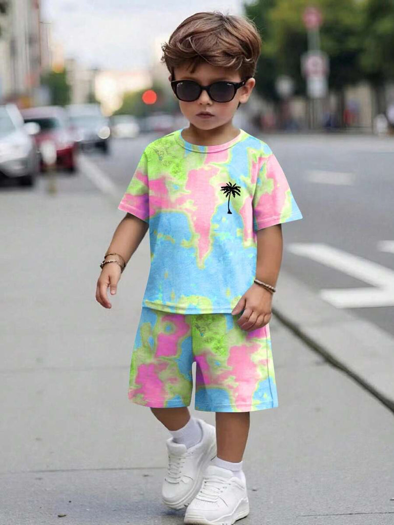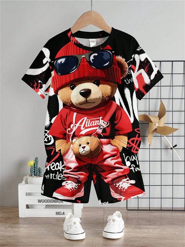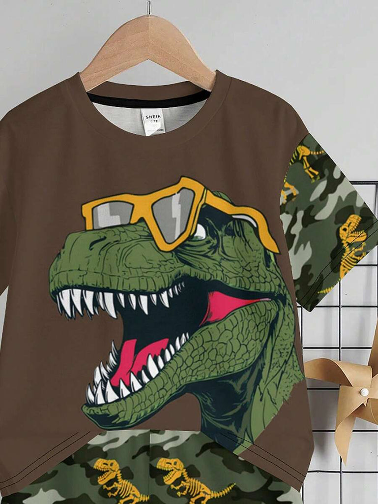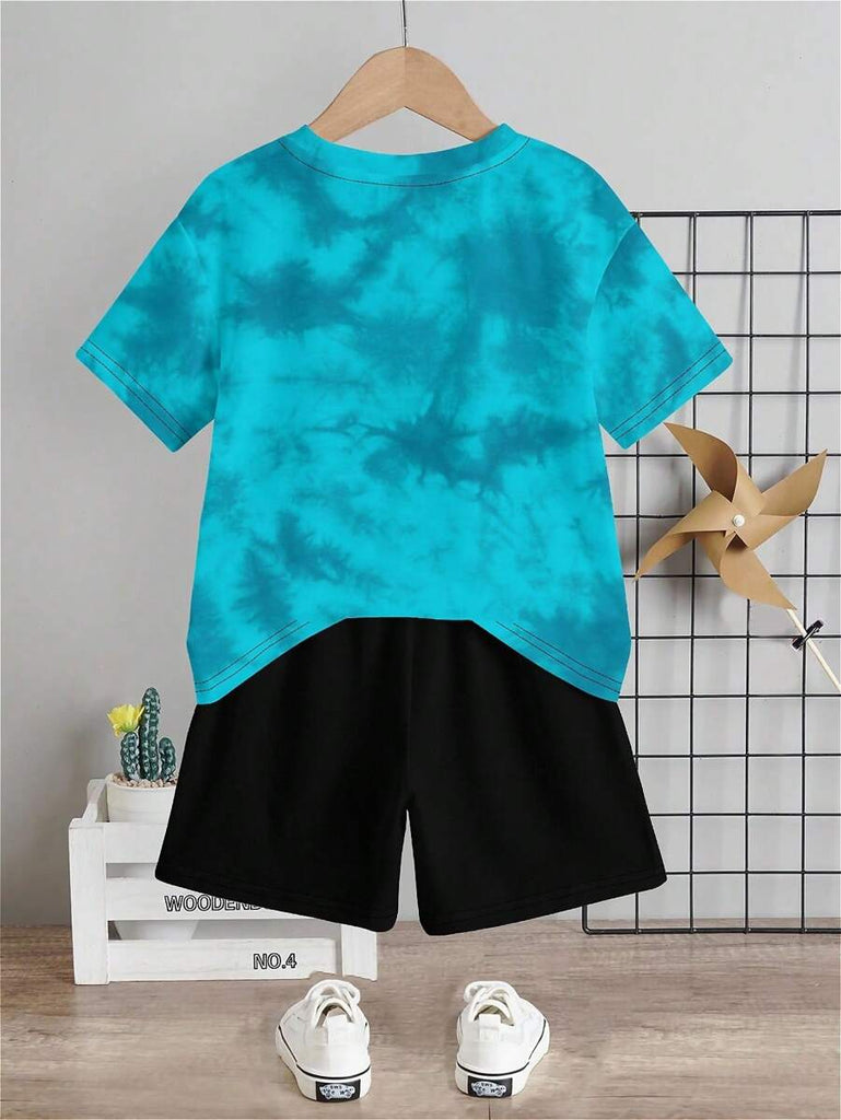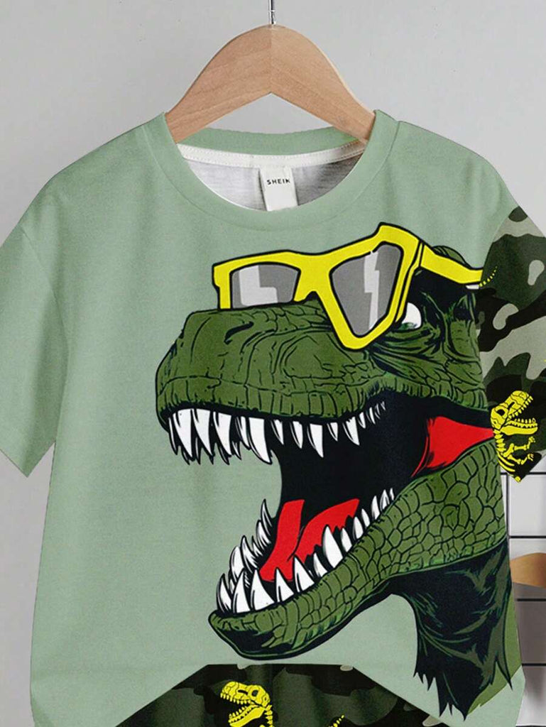Young Boy 2pcs Casual Simple Cartoon Dog Graphic Loose Crew Neck Short Sleeve T-Shirt And Shorts Set, Suitable For Summer