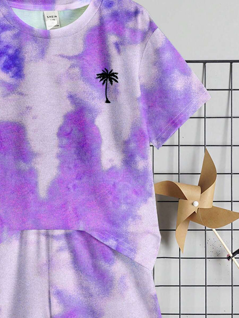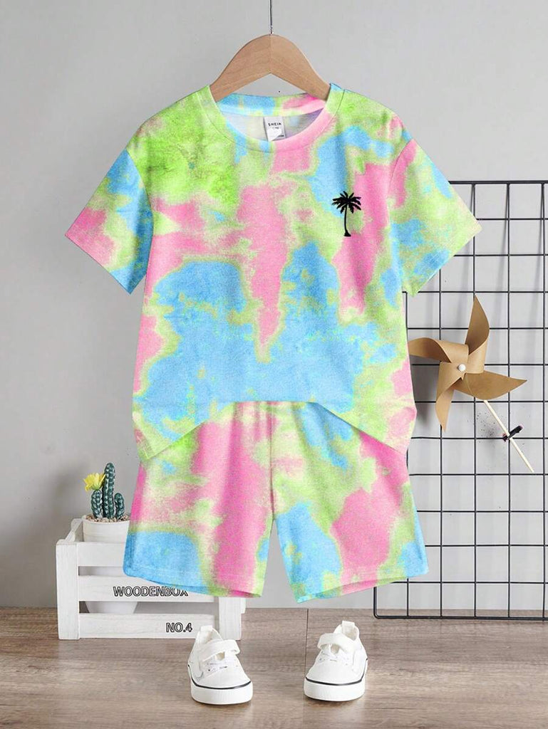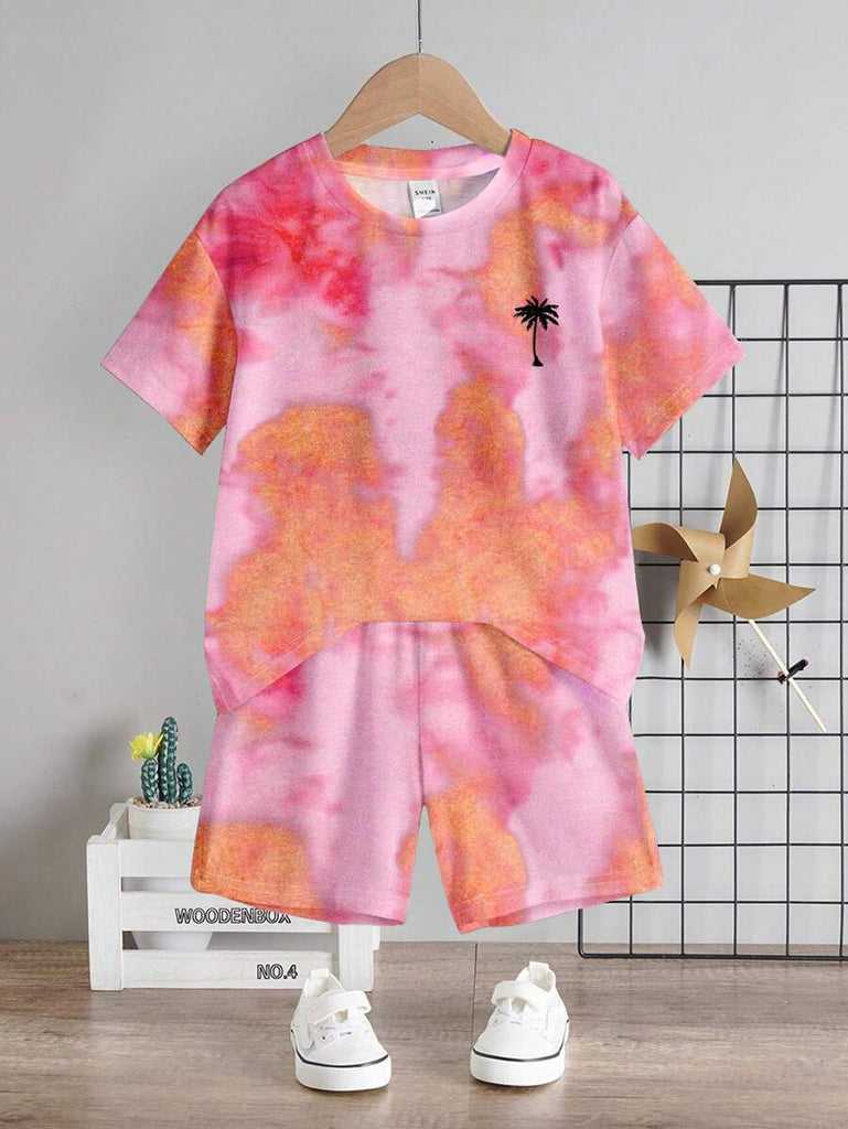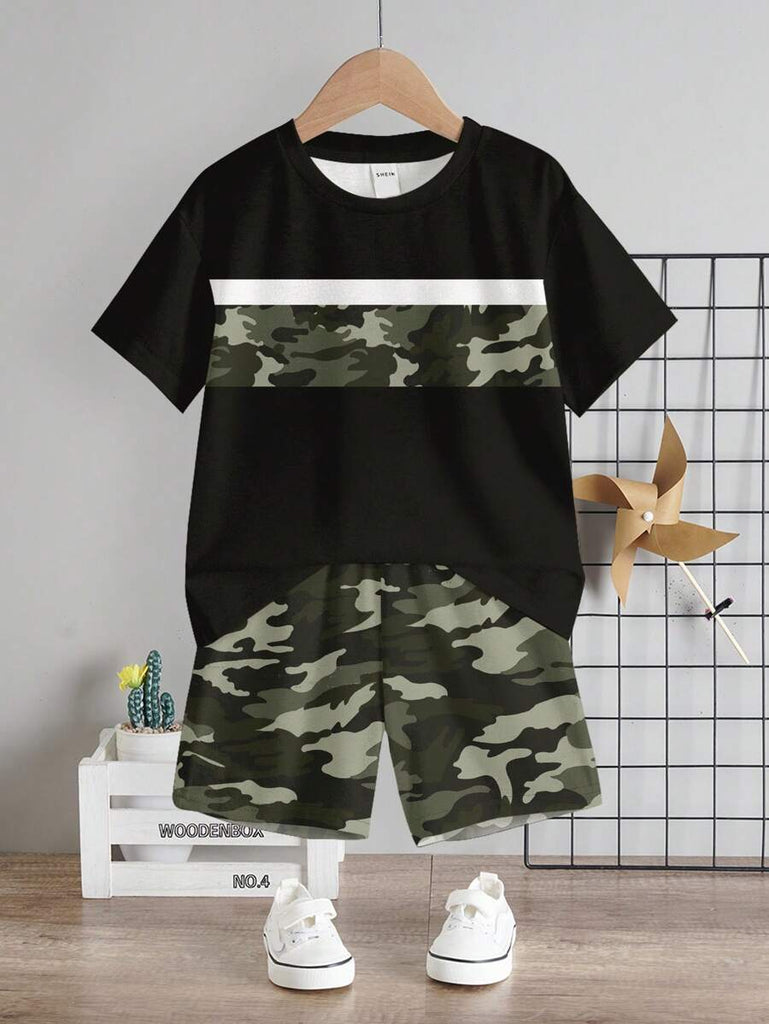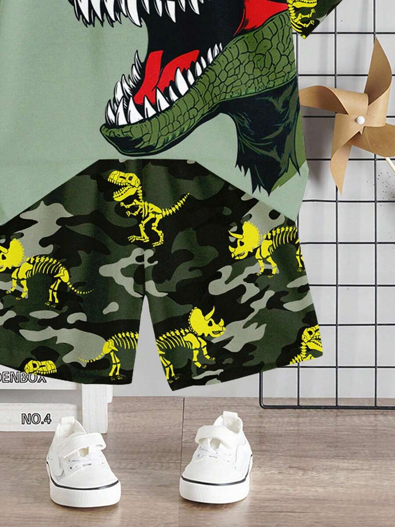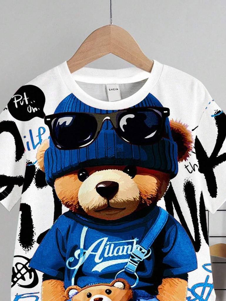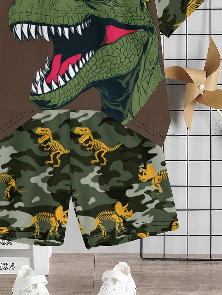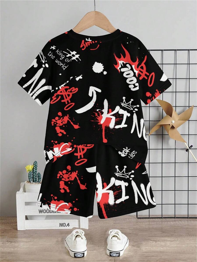Young Boy 2pcs Casual Simple Cartoon Dog Graphic Loose Crew Neck Short Sleeve T-Shirt And Shorts Set, Suitable For Summer
