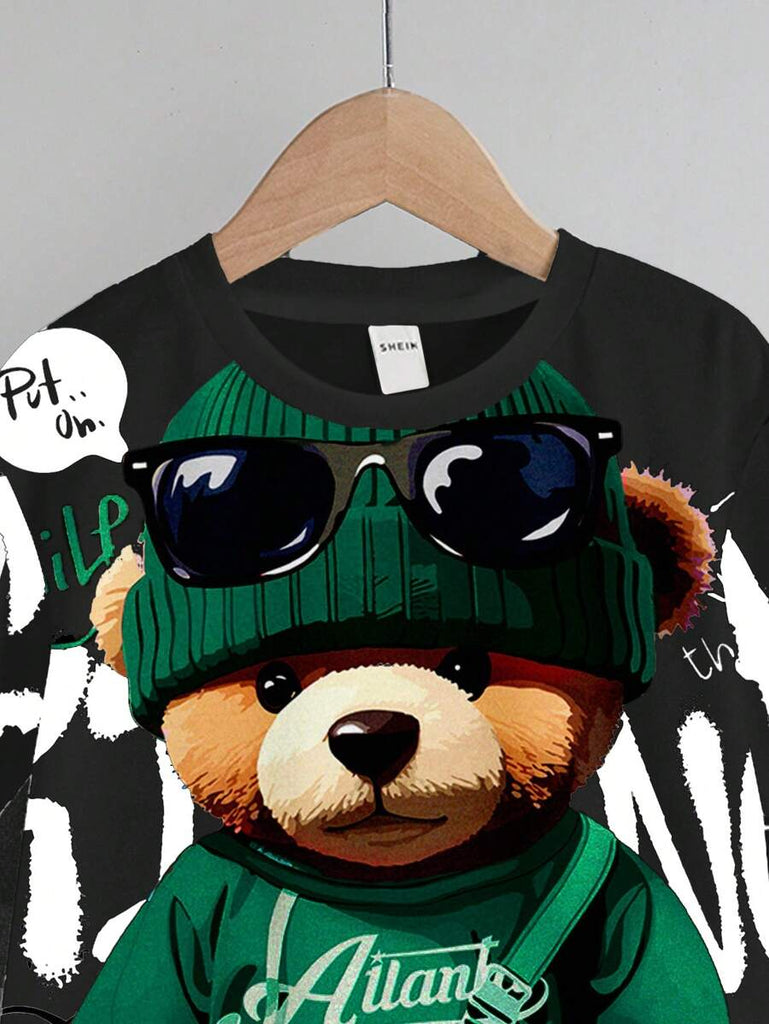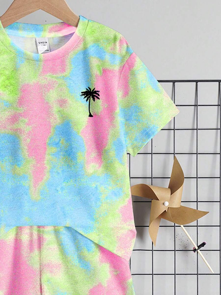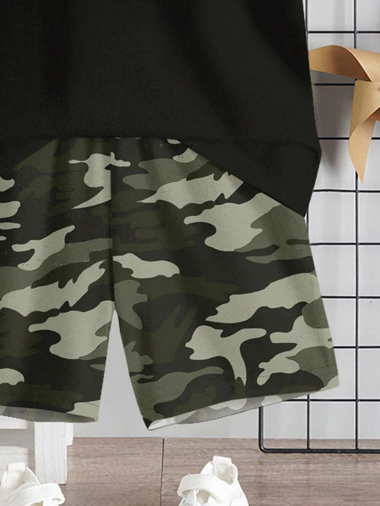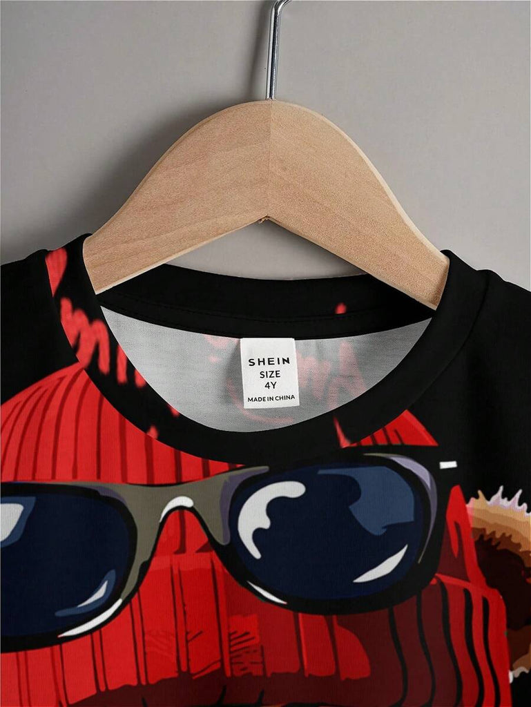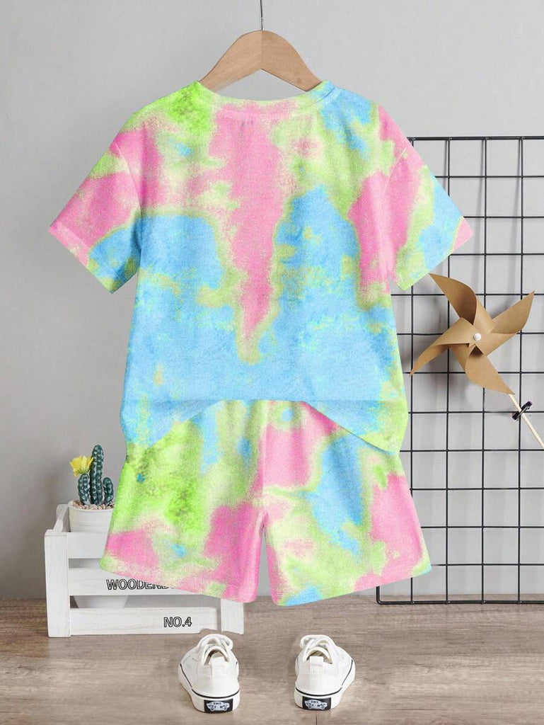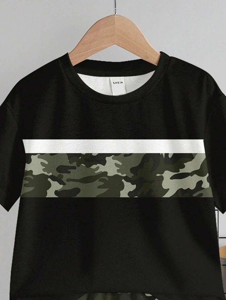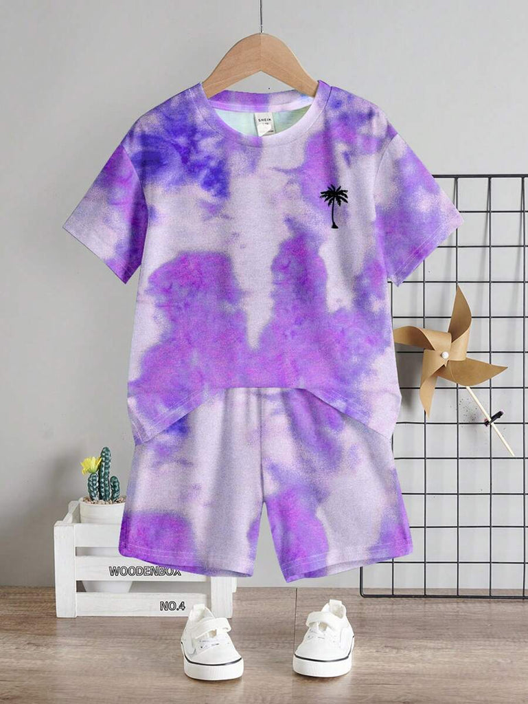 Young Boy 2pcs Casual Simple Cartoon Dog Graphic Loose Crew Neck Short Sleeve T-Shirt And Shorts Set, Suitable For Summer