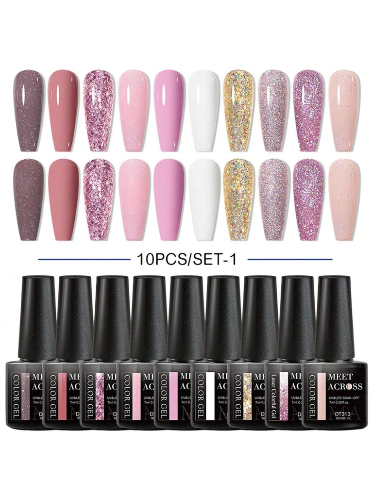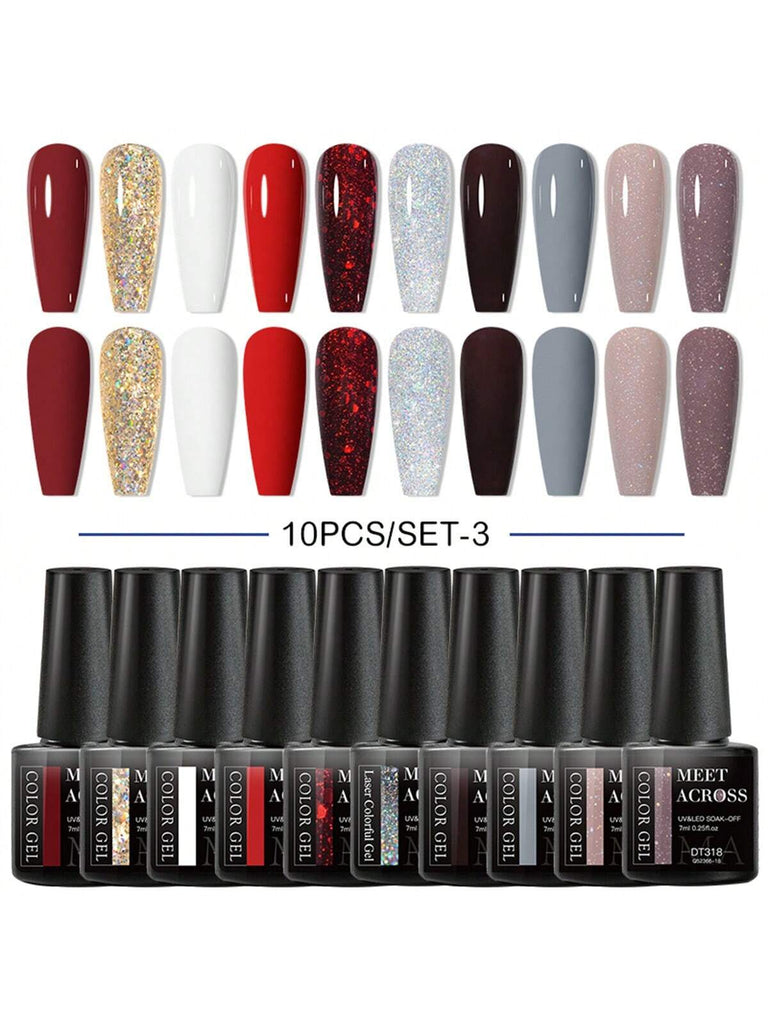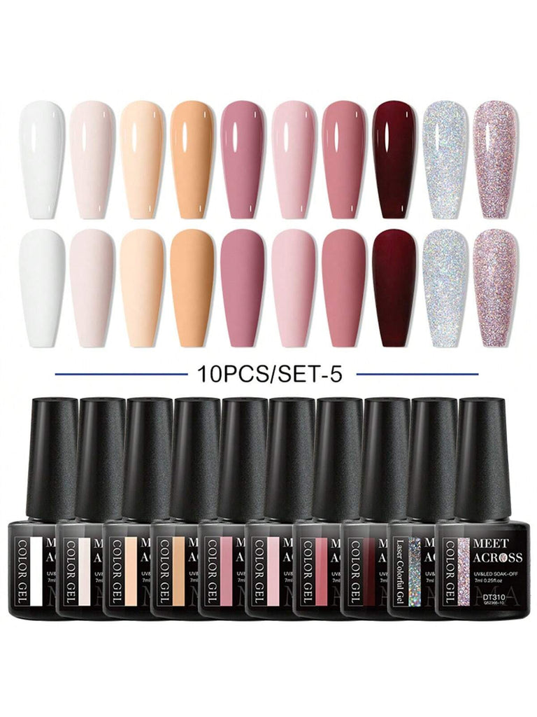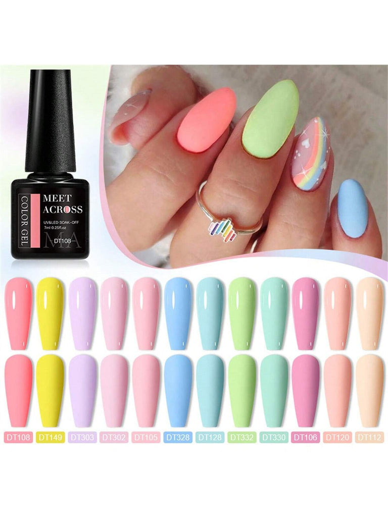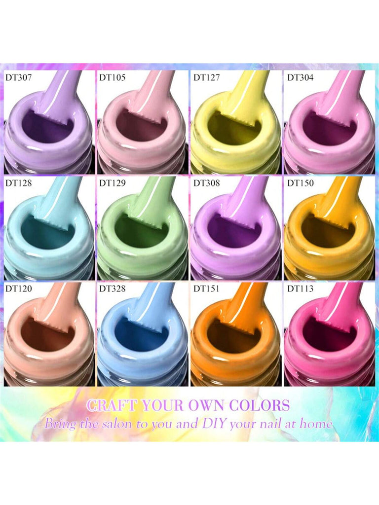 12PCS/Set 7ML Gel Nail Polish Set Summer Macaron Color Nude Pink Purple Red Glitter Nail Gel Semi Permanent UV LED Varnish Nail Art Design Soak Off Nail Gel Set