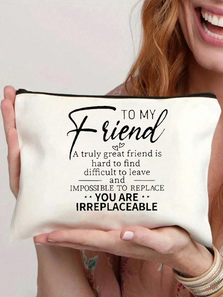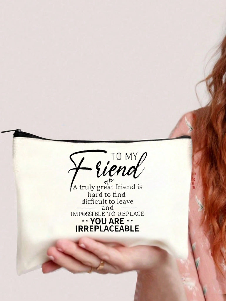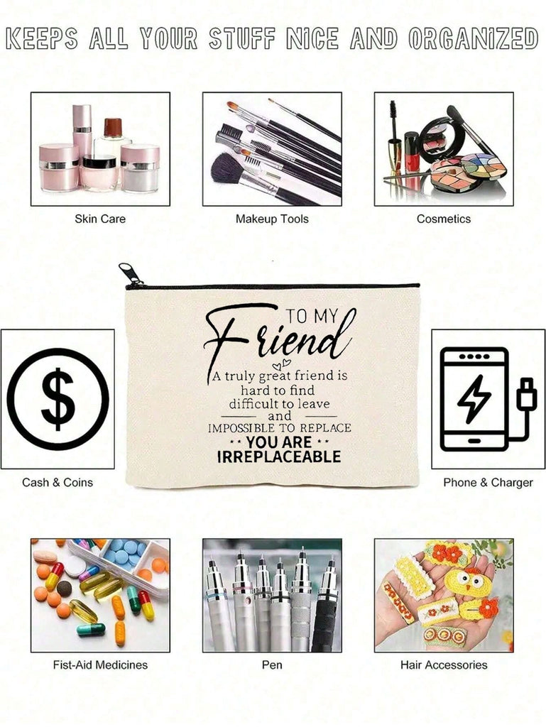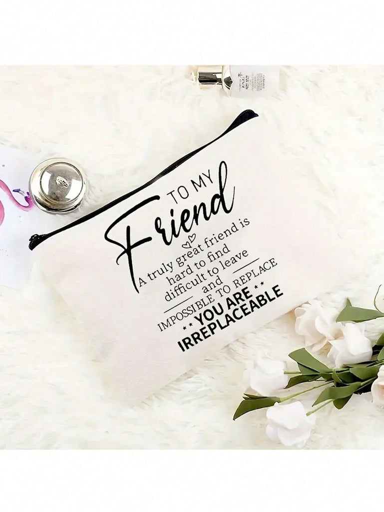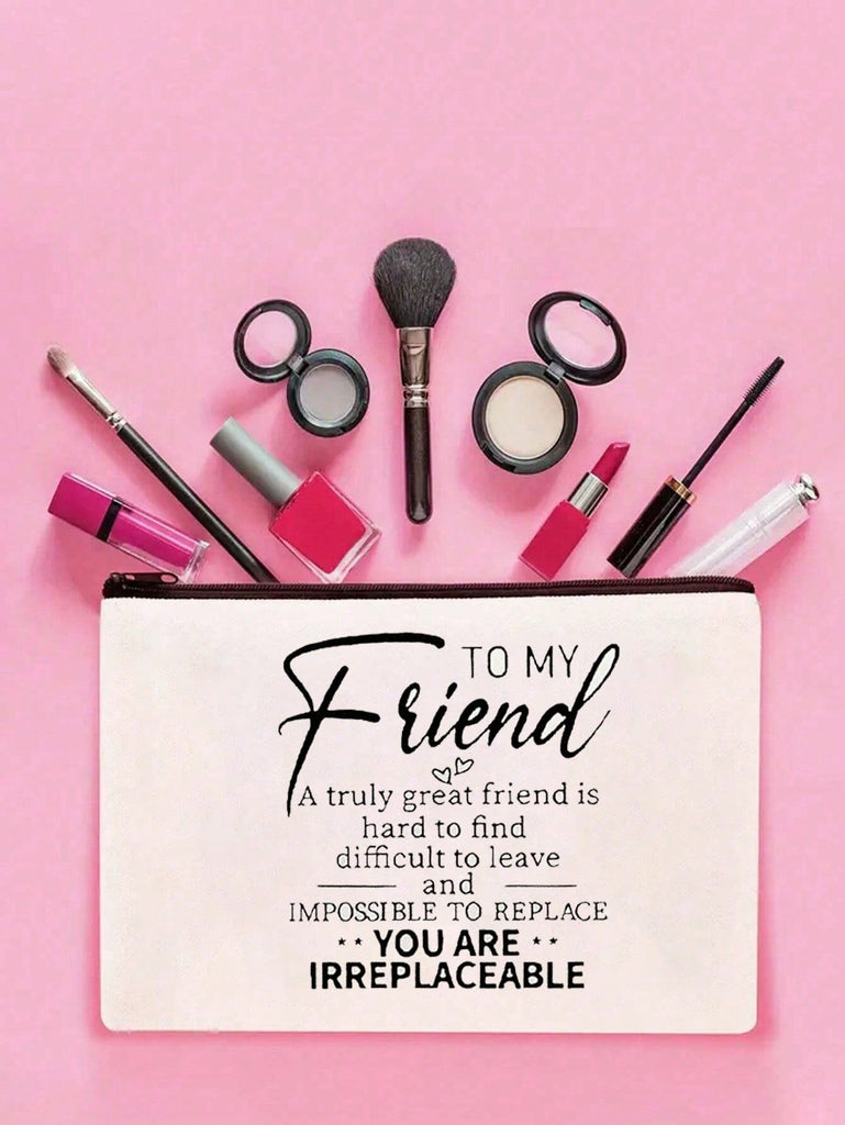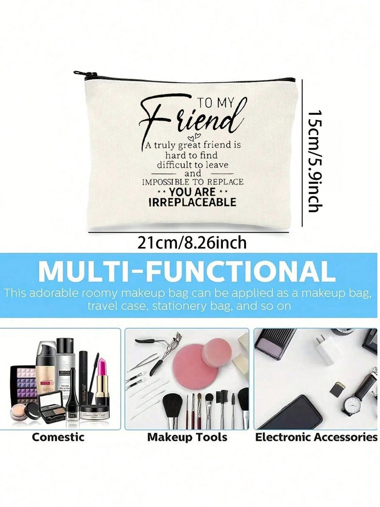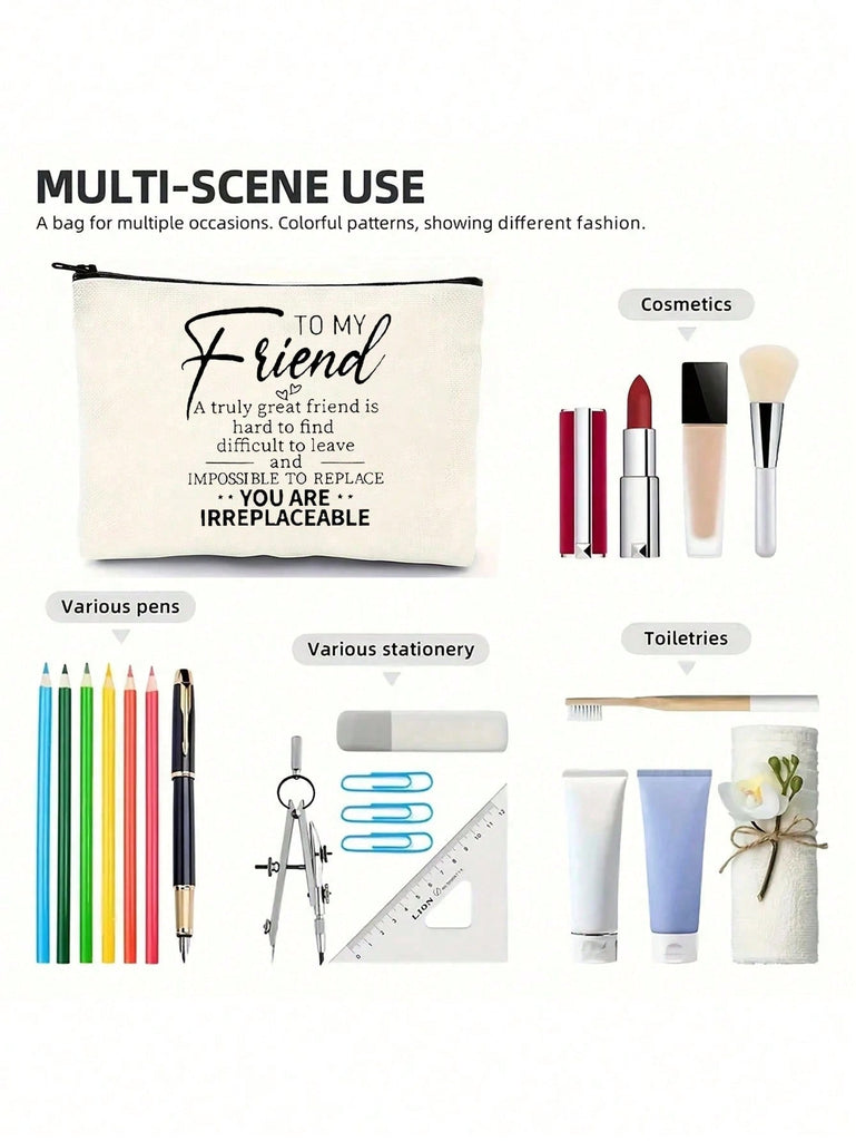 1pc , Chic Double-Sided Print Canvas Makeup Bag - Perfect Birthday Gift For Best Friends & Sisters, Portable Cosmetic Pouch With Zipper, Lightweight Travel Organizer