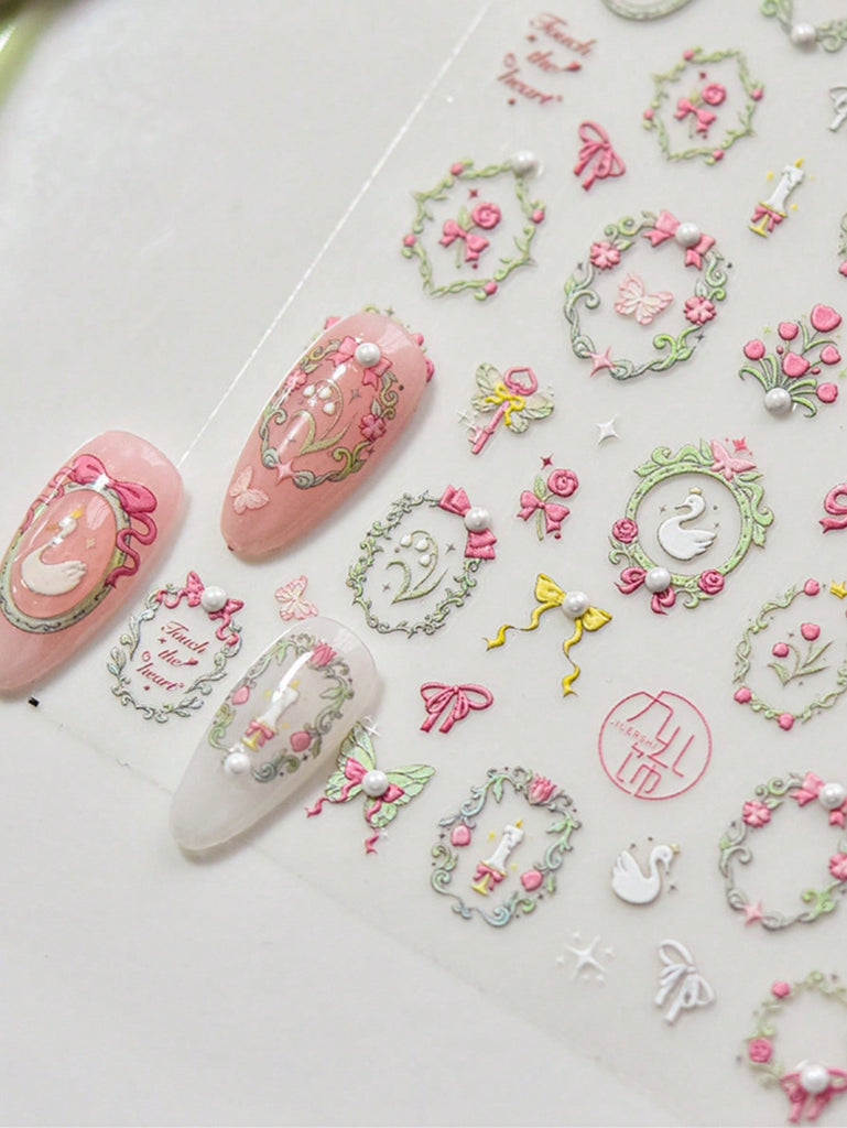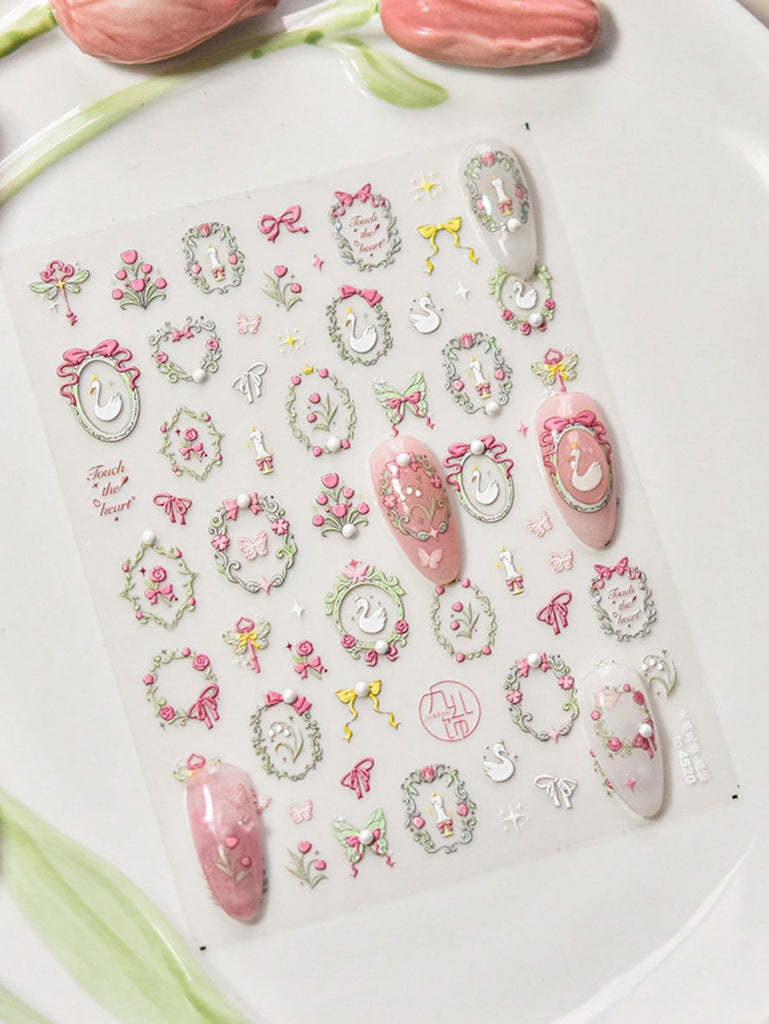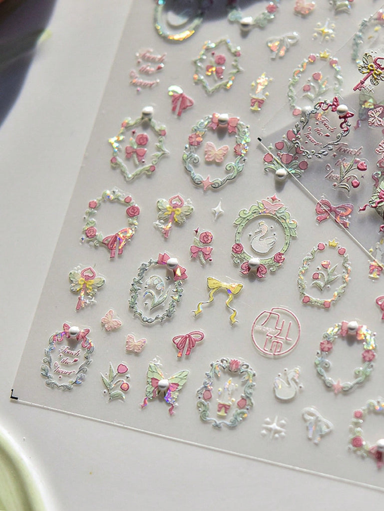 1pc Crystal Diamond Nail Stickers Sticker Mix Pink Swan Flower Frame Butterfly Self Adhesive Nail Art Stickers DIY Cute Nail Stickers