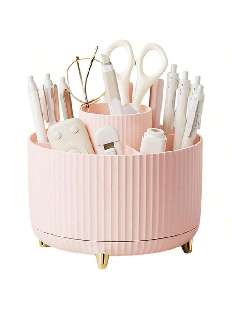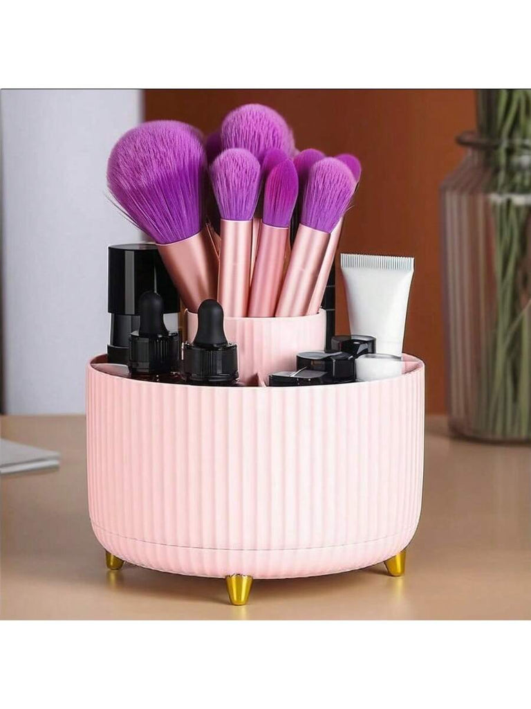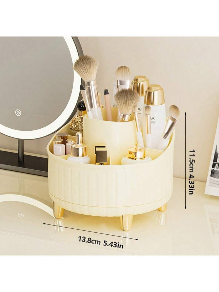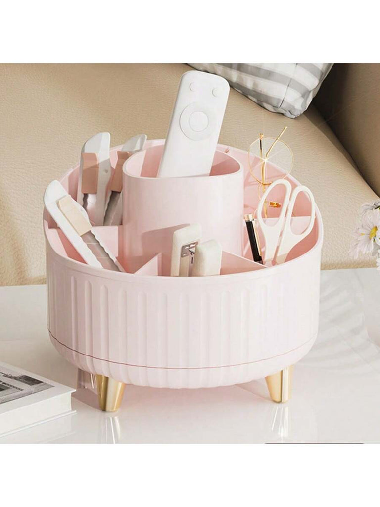 1pc Desktop Rotating Makeup Storage Box, Stationery Storage Box, Pen Holder, Cosmetics Display Rack, Multifunctional Makeup Brush Storage Bucket, Skincare Product Storage Box, Plastic Makeup Brush Storage Box