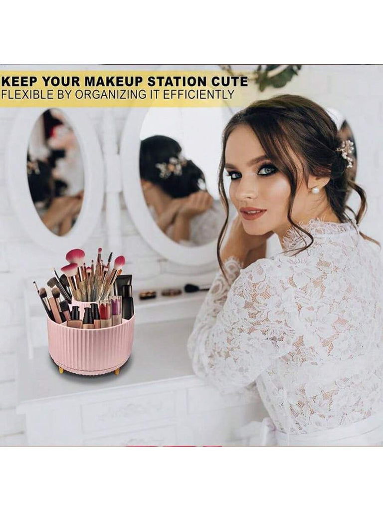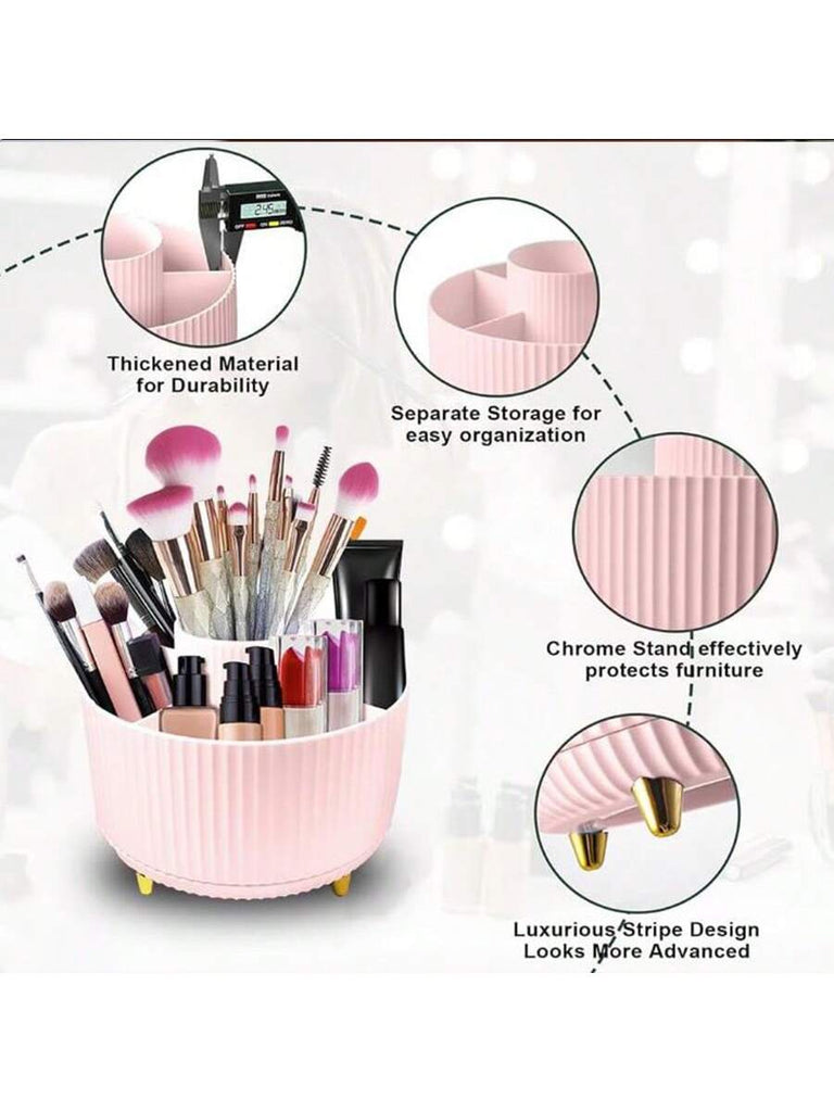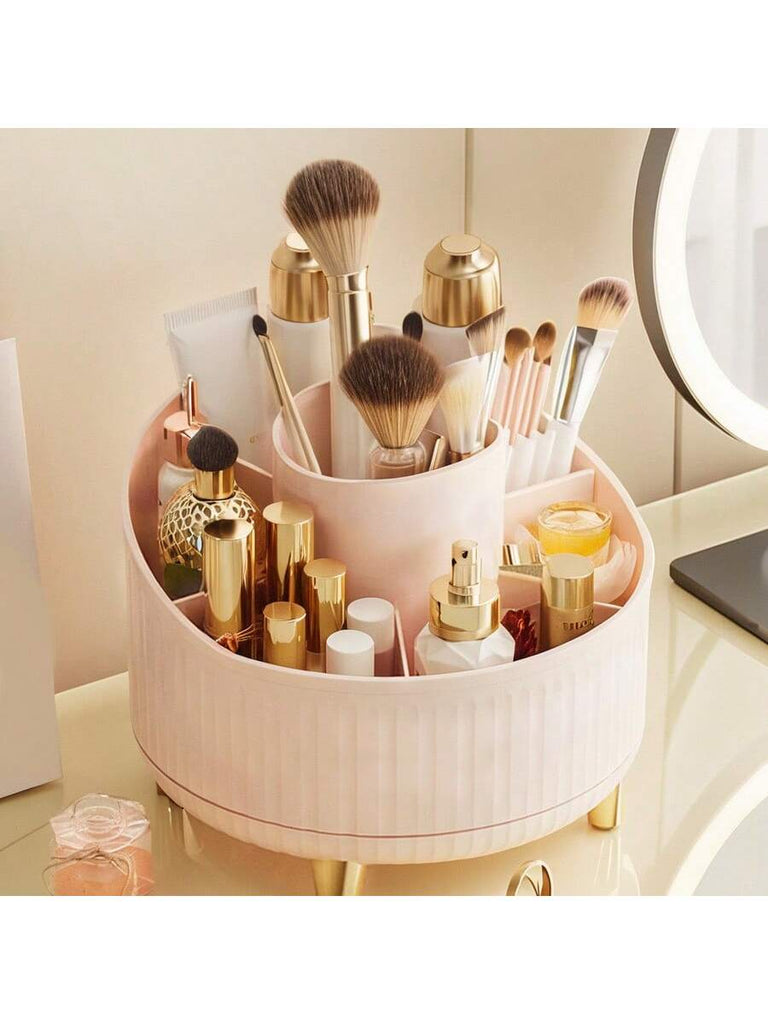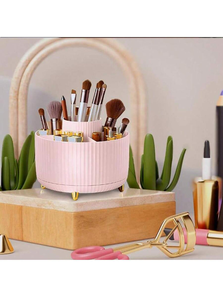 1pc Desktop Rotating Makeup Storage Box, Stationery Storage Box, Pen Holder, Cosmetics Display Rack, Multifunctional Makeup Brush Storage Bucket, Skincare Product Storage Box, Plastic Makeup Brush Storage Box