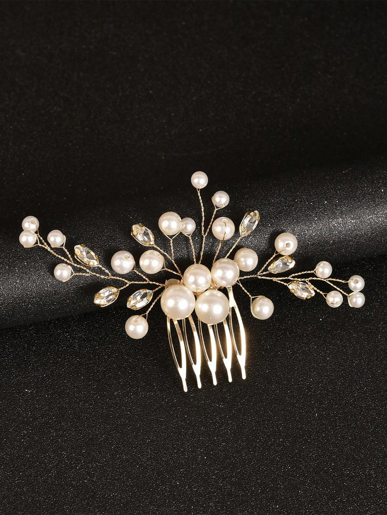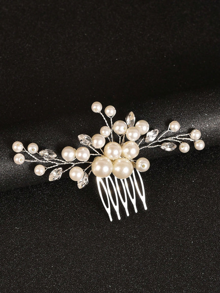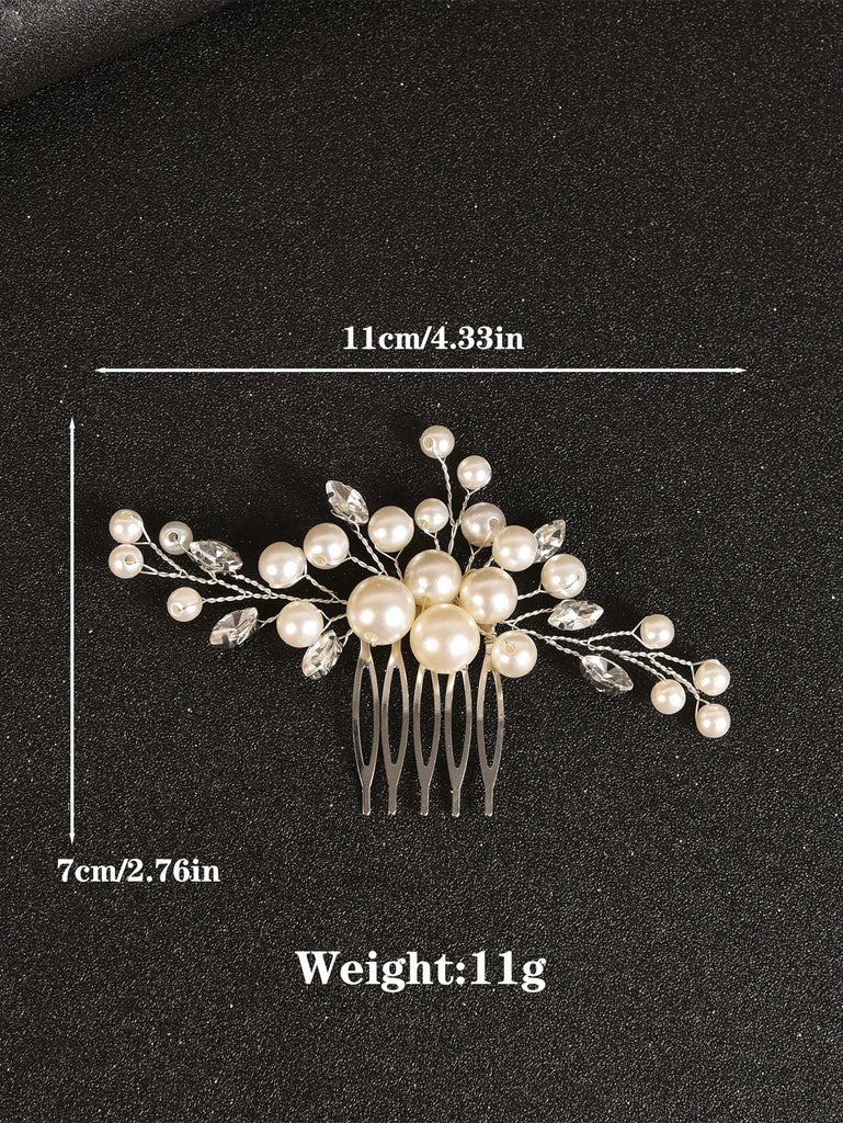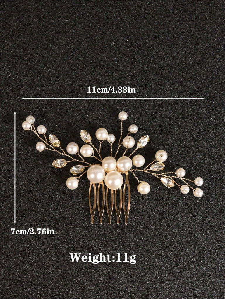 1pc Elegant Handmade Pearl & Rhinestone Hair Comb, Women Bridal Wedding Party Accessory