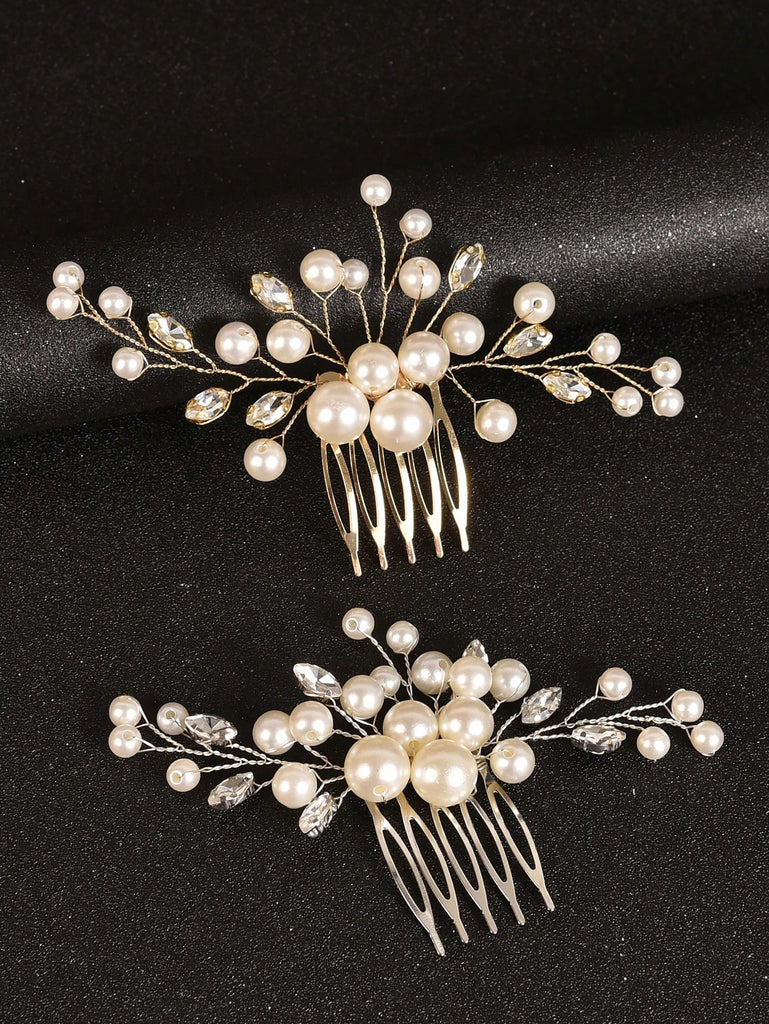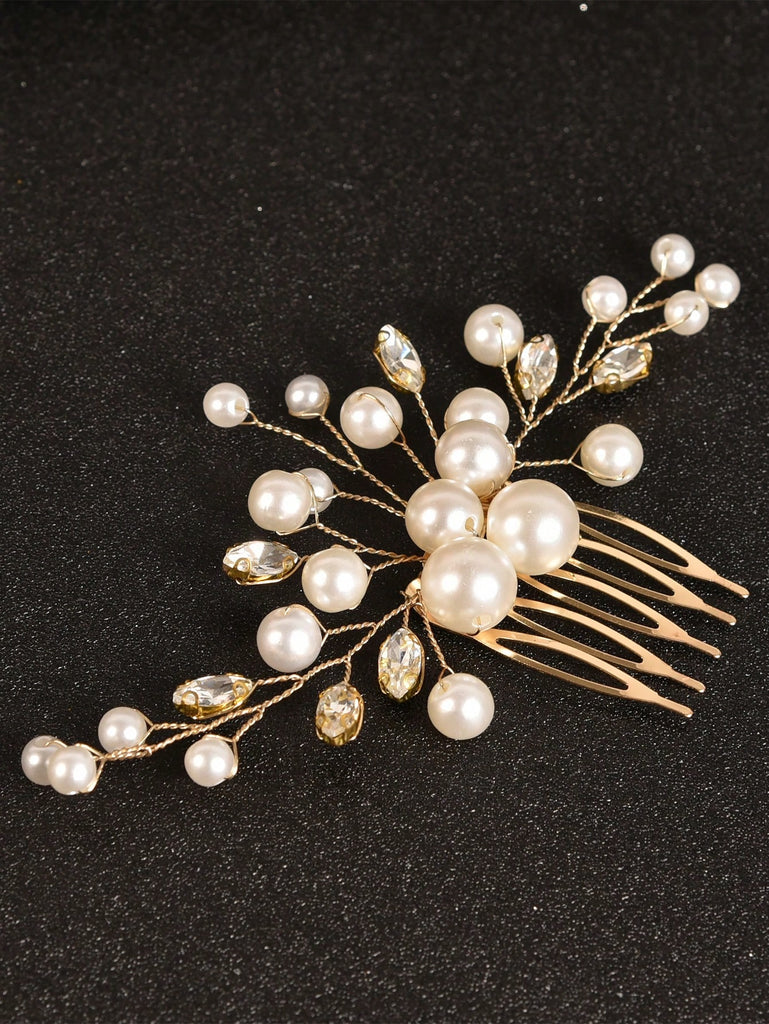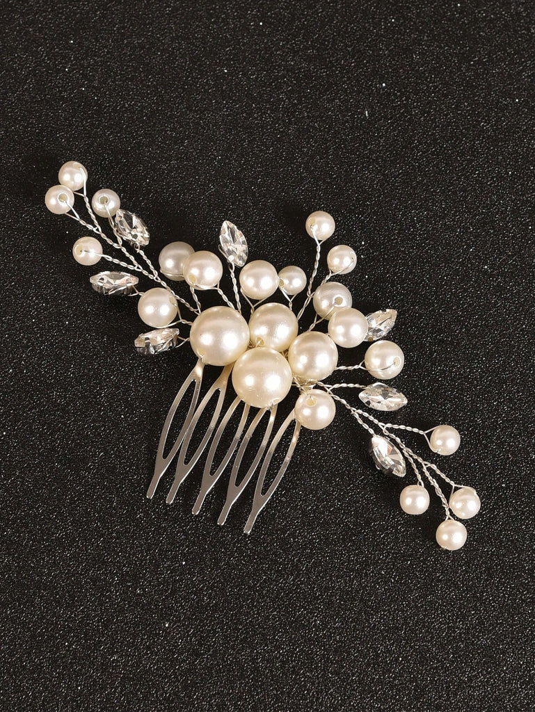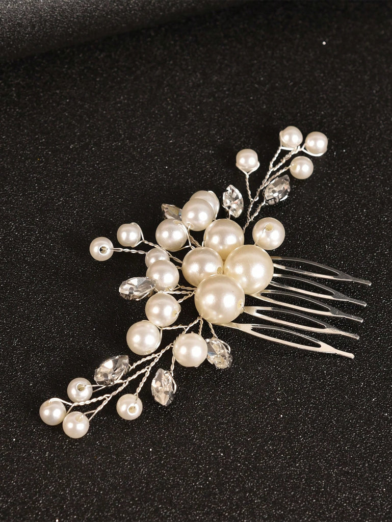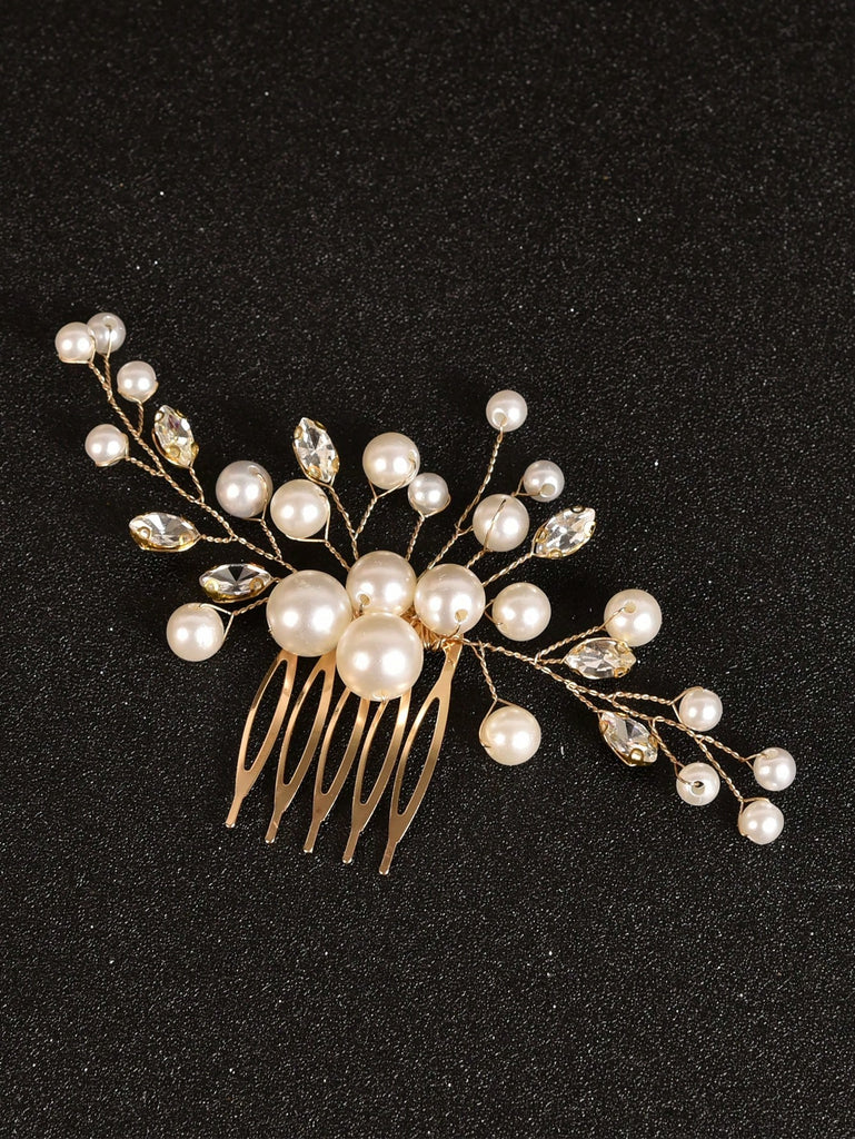 1pc Elegant Handmade Pearl & Rhinestone Hair Comb, Women Bridal Wedding Party Accessory
