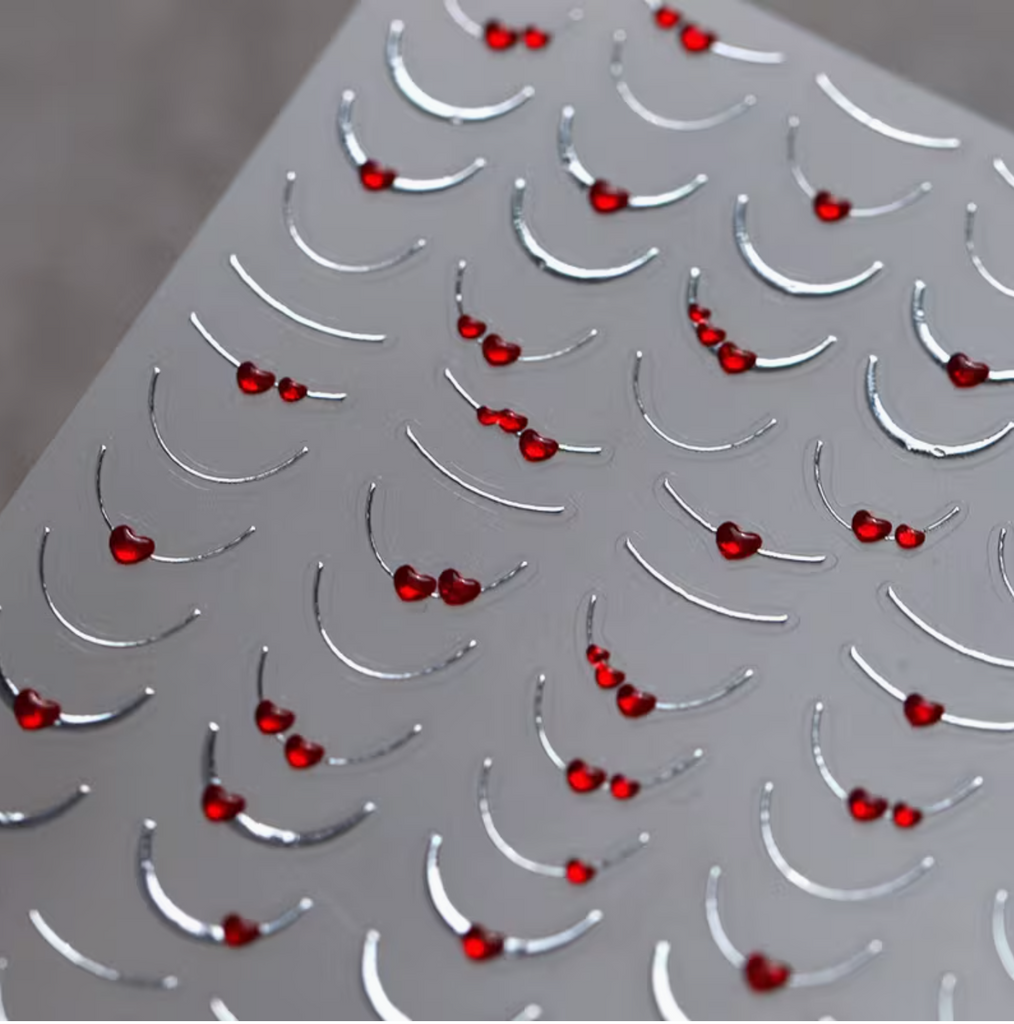 1pc Simple Silvery French Line Nail Stickers Jelly Red Heart Hot Silvery French Line Nail Decals DIY