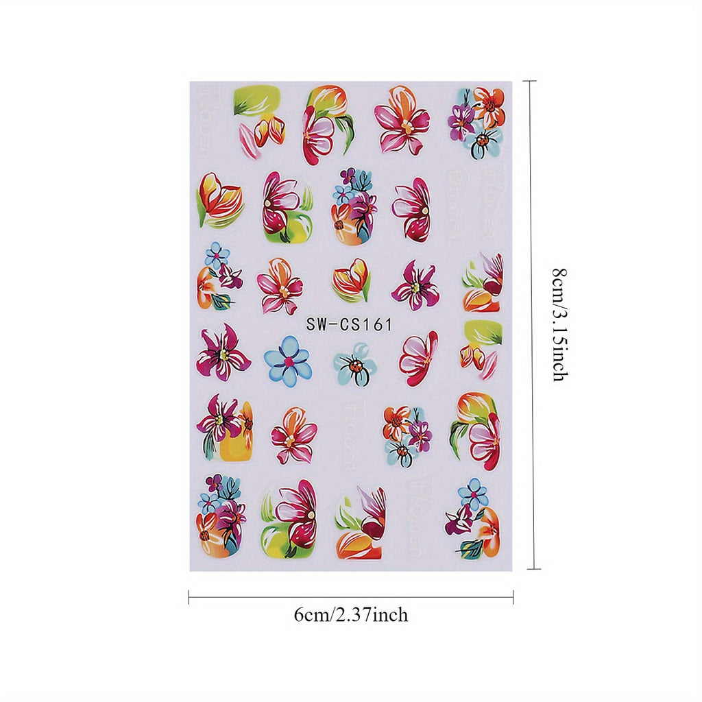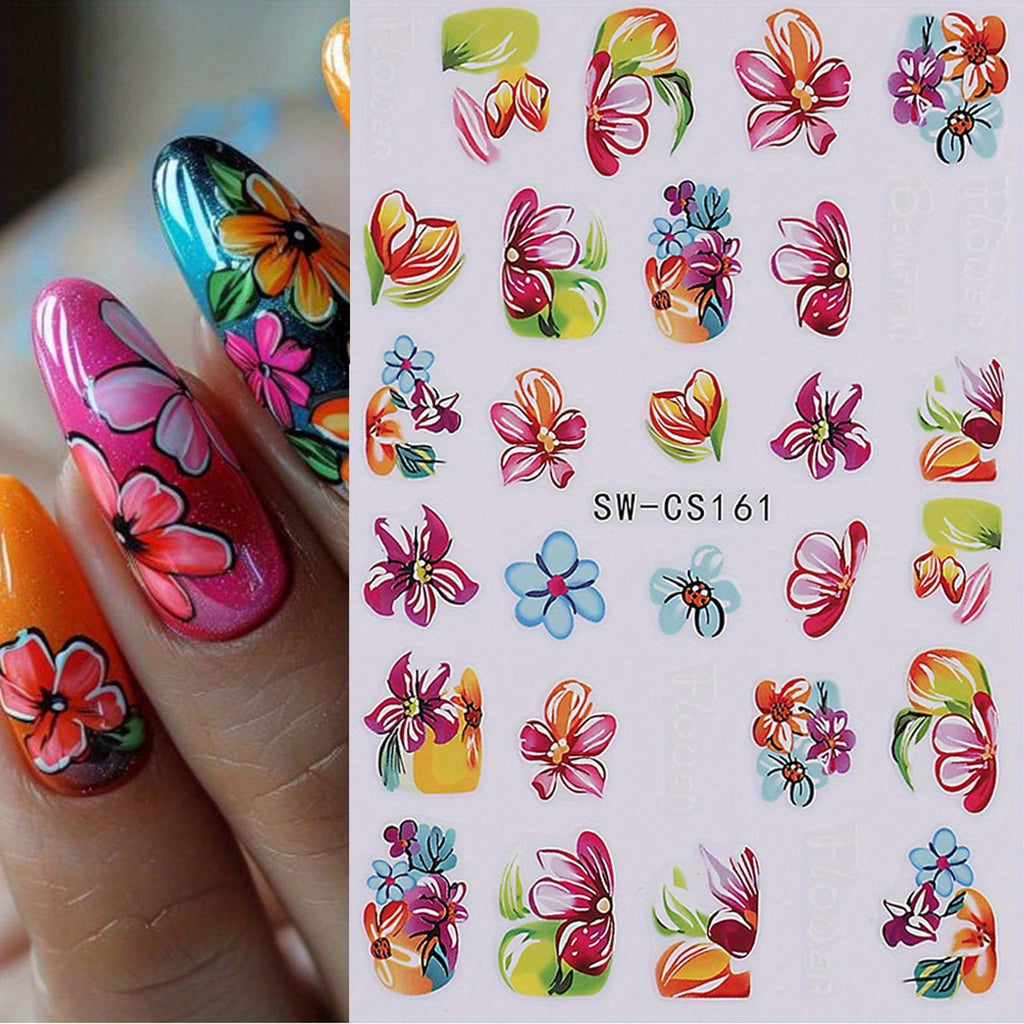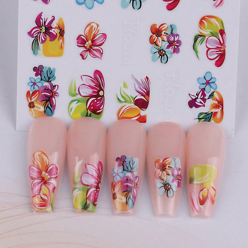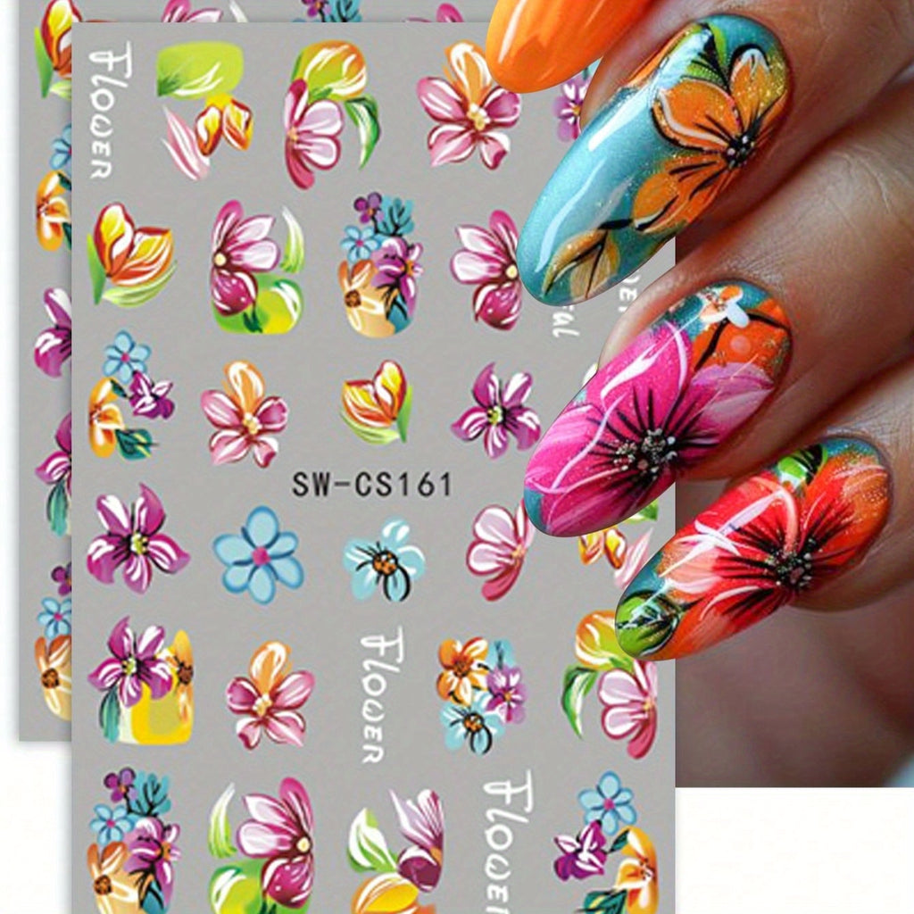 2pcs Vibrant Floral Nail Art Stickers 3D Blooming Flowers & Leaves