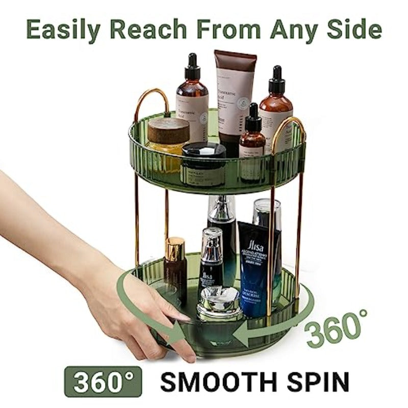 360 Rotating Makeup Organizer for Vanity2 Tier Large Capacity Cosmetics Skincare Organizers Bathroom Countertop Organizer Spinning Perfume Organizer Dresser Vanity Organizer Green-2 Tier