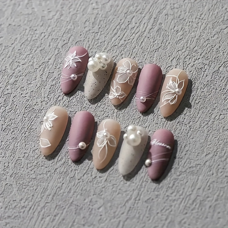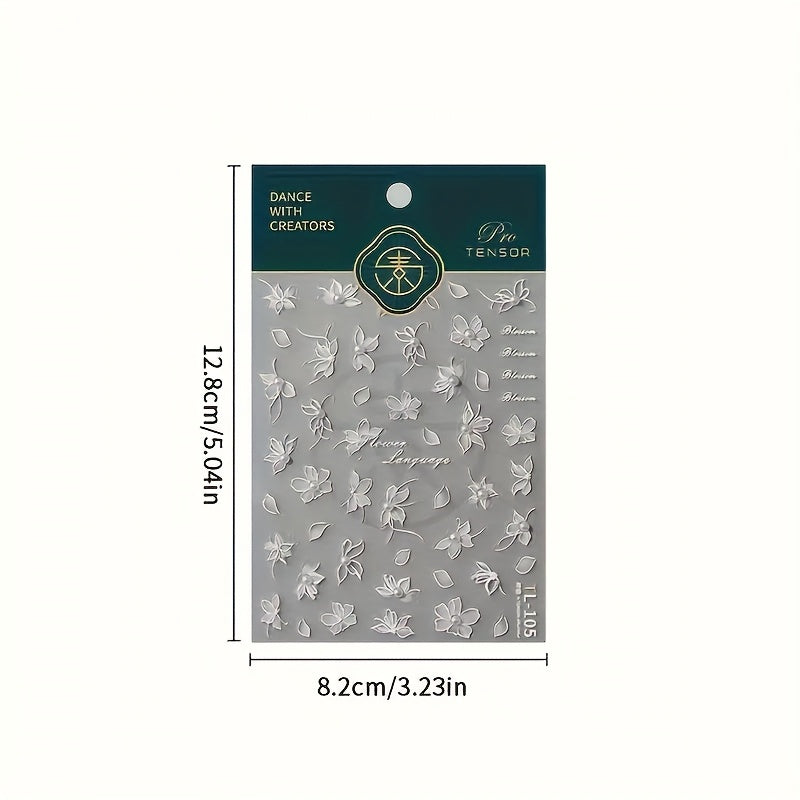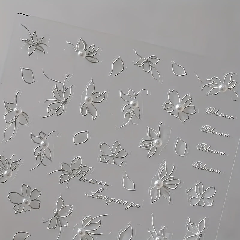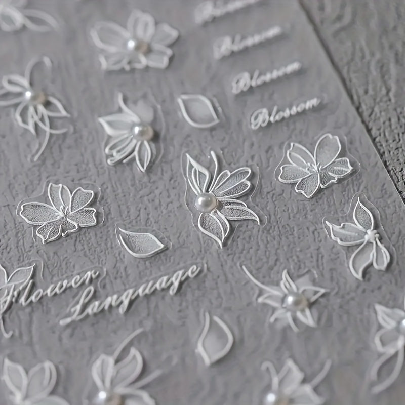 5D Flower Nail Stickers - Self-Adhesive White Floral Design with Decoration, Matte Finish, Disposable DIY Women's Nail Art