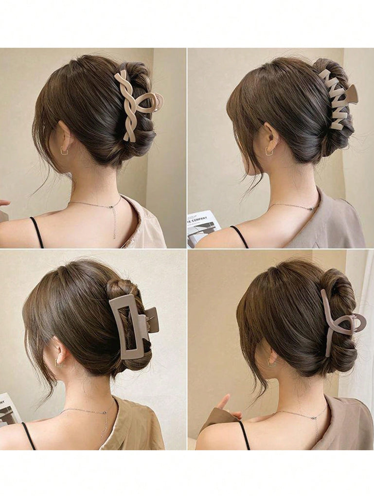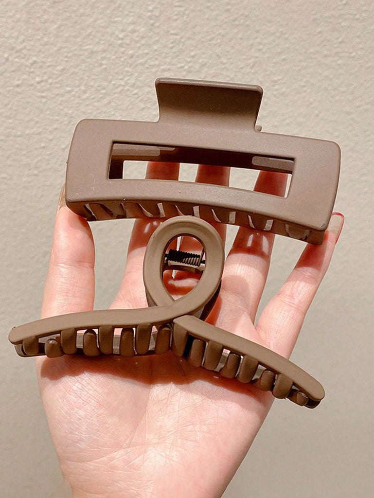 5pcs 11cm/4.33in Oversized Square Plastic Hair Clips, White & Brown - Elegant, Minimalist Design, Suitable For Daily, Casual, Party, Commute, Vacation - Hair Styling, Washing, Makeup, Outfit Accessory