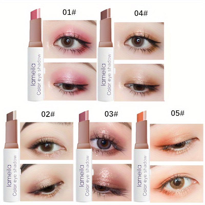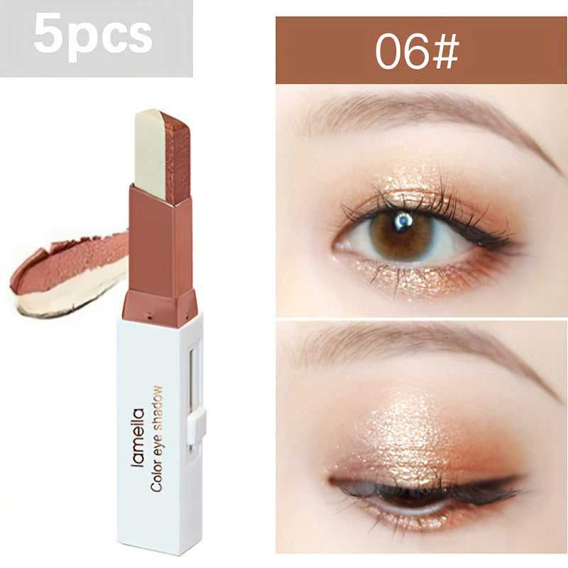 6pcs Dual-Shade Pearlescent Eyeshadow Sticks - Waterproof, Sweatproof & Smudge-Proof, Long-Lasting Coral & Rose Shades for Stunning Metallic Eye Makeup Looks, Waterproof Eyeshadow | Metallic Finish | Quality Cosmetics