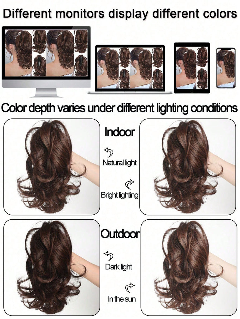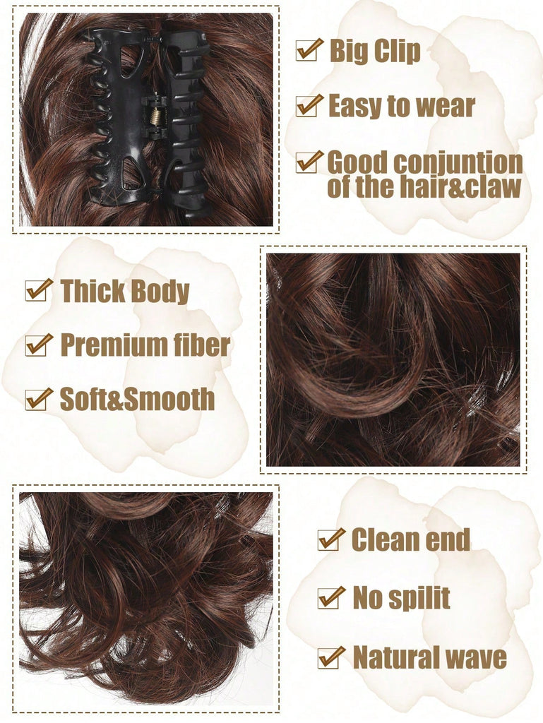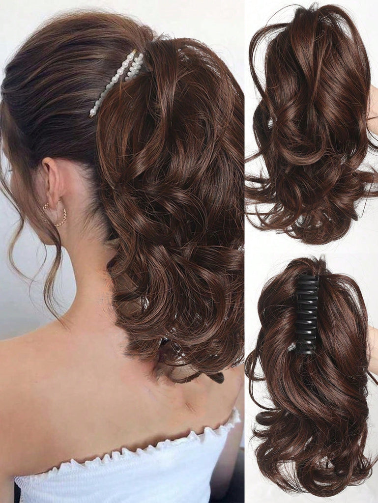 Elegant Claw Clip Ponytail - Short Curly Wavy Look, Synthetic Hair Extensions For Daily Chic, Easy-To Attach Hair Accessory For AlI Occasions