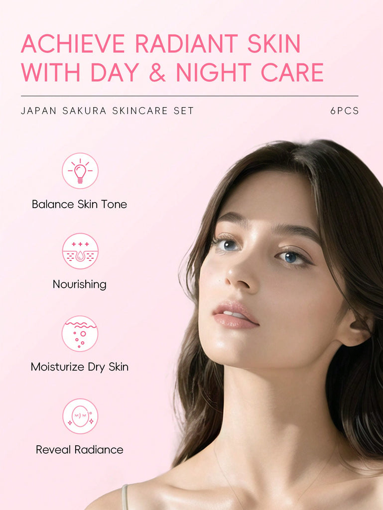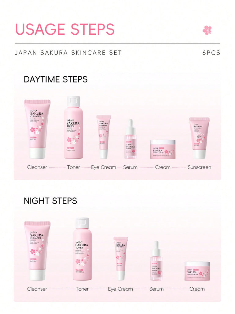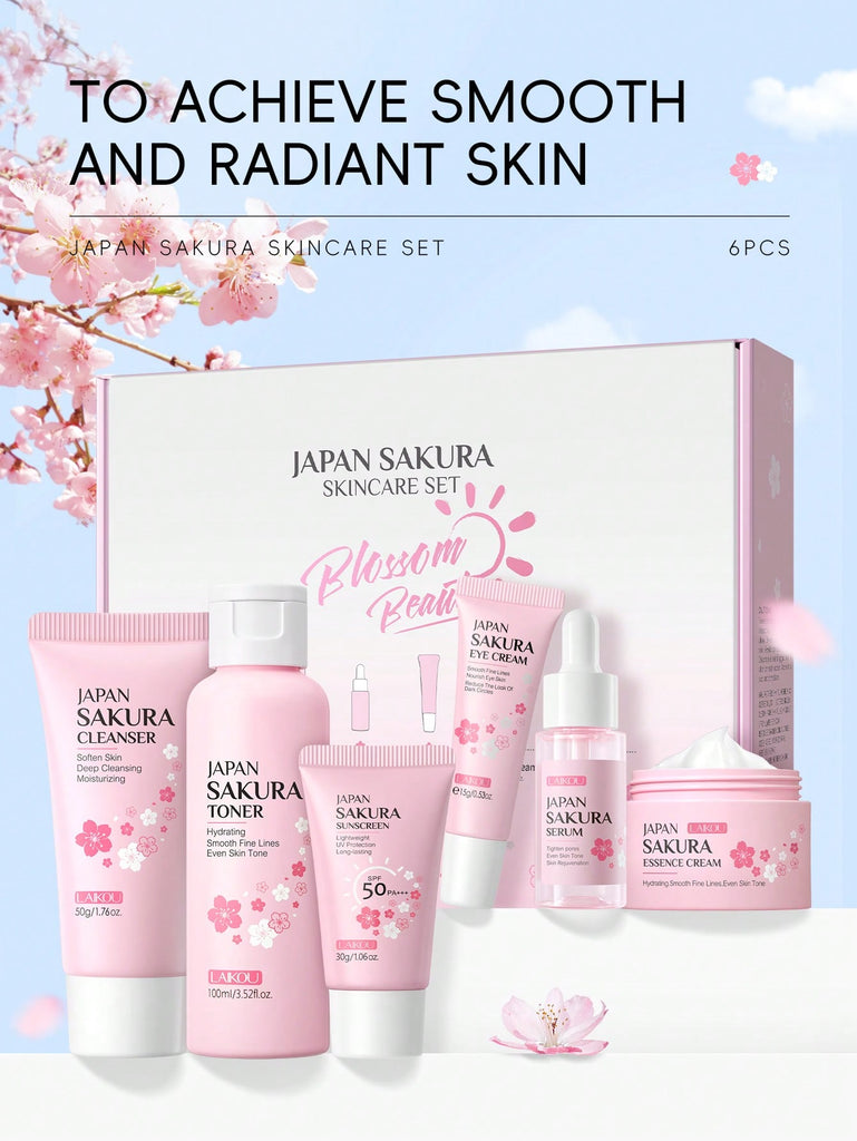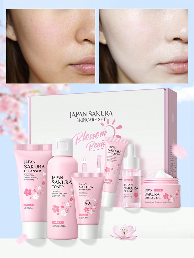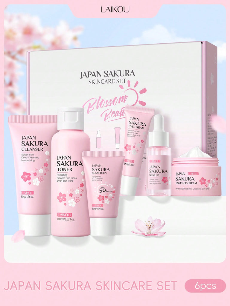 LAIKOU 1Set 6Pcs Deep Nourishing LAIKOU JAPAN SAKURA SKINCARE SET, Anti-Aging (UV-Protective Sunscreen Lotion 30g SPF50 & Cleanser 50g & Toner 100ml & Serum 17ml & Eye Cream 15g & Face Cream 25g) Firming Skin Care Gift Boxes