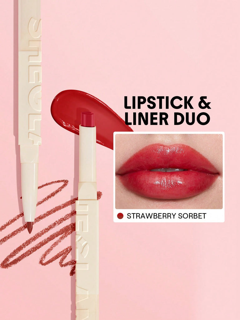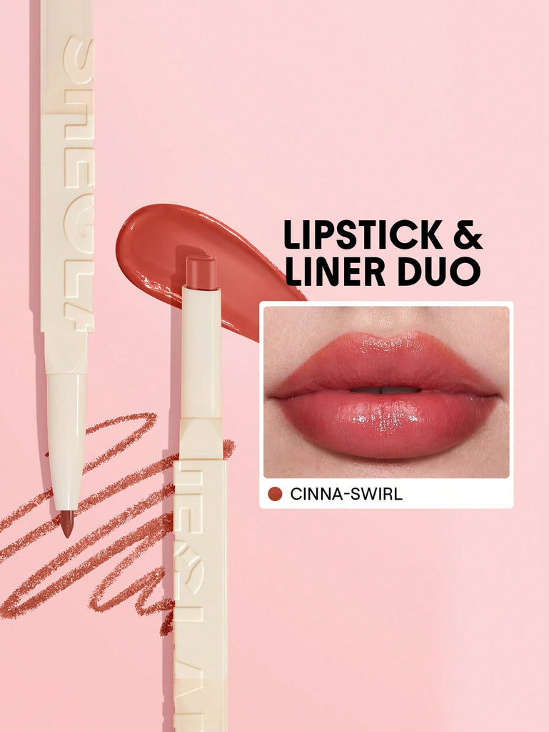 SHEGLAM Glam 101 Sheer Tinted Lipstick & Liner Duo-Cinna-Swirl 2-In-1 Moisturizing Glossy Lip Combo Double-Ended Easy To Use High Pigment Lip Liner Portable Silky Smooth Lip Makeup Valentine's Day Decor Love Gift Winter Y2K Makeup Party Beach Travel Holi