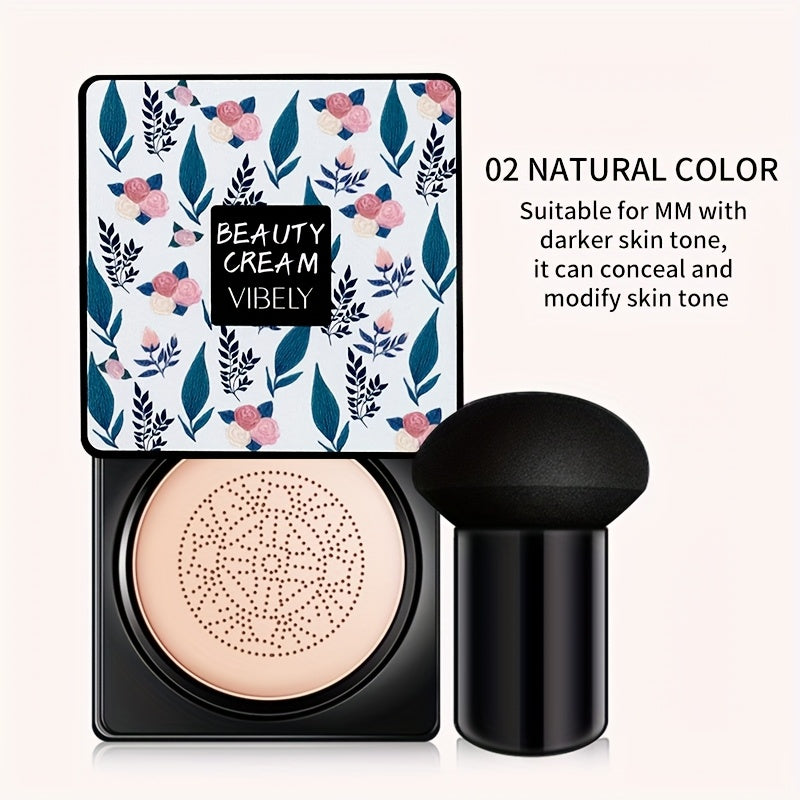 VIBELYR Mushroom Air Cushion CC Cream Foundation - Concealing, Moisturizing, One-Click Application, Elastic, Fine Texture, Non-Caking, Waterproof, Oil-Control, Long-Lasting Makeup, Ideal for Valentine'S Day, Christmas, Mother'S Day Gif